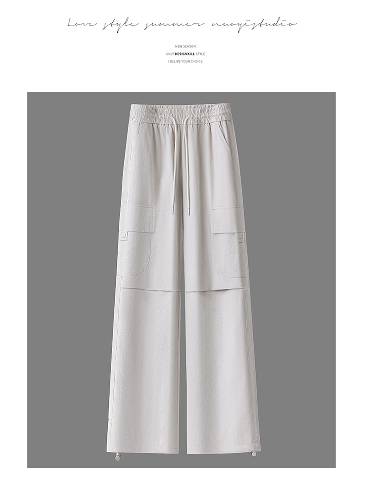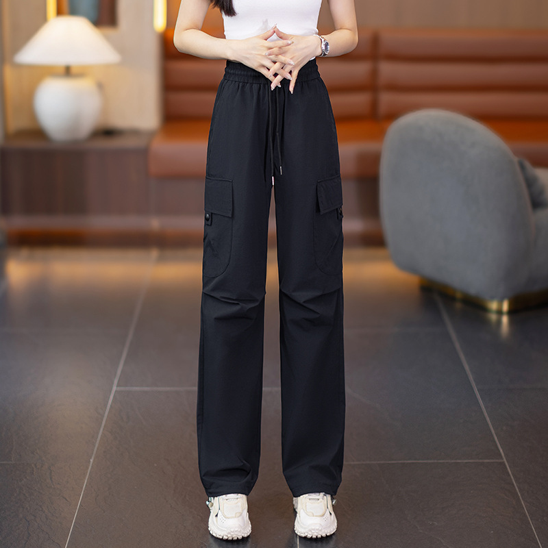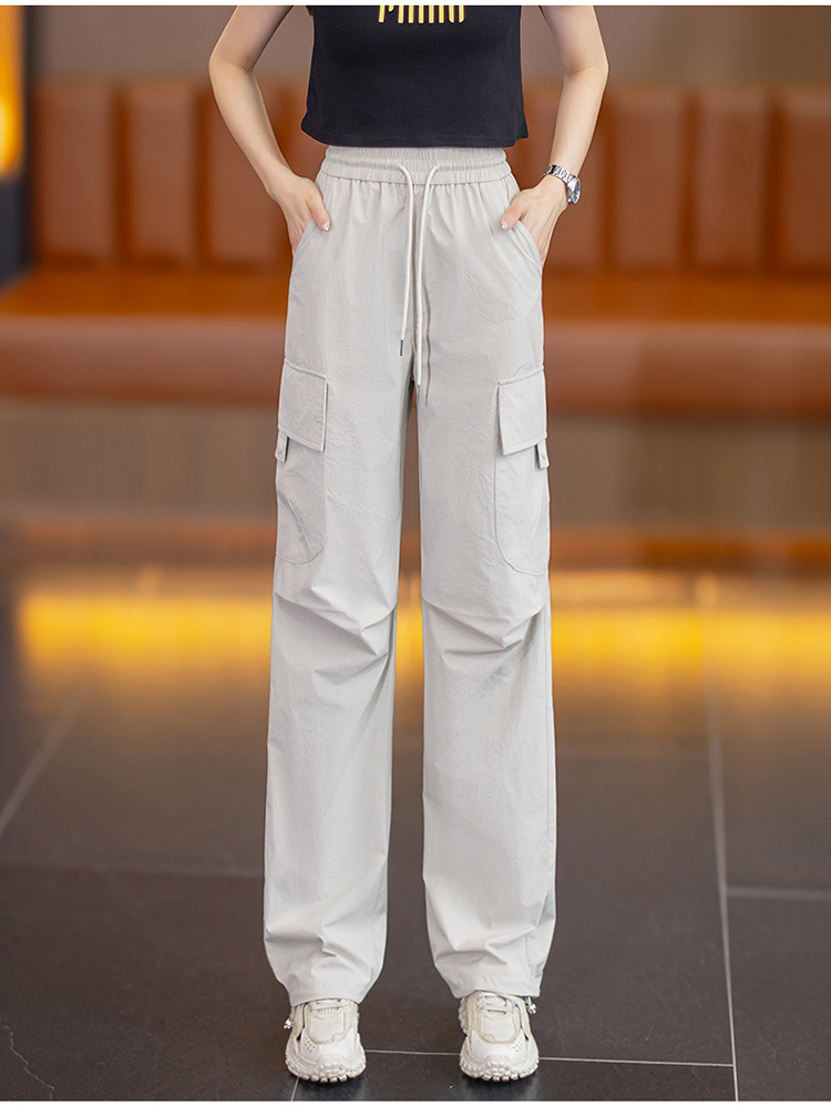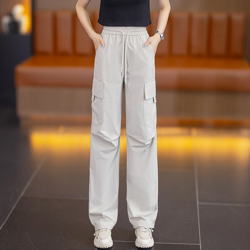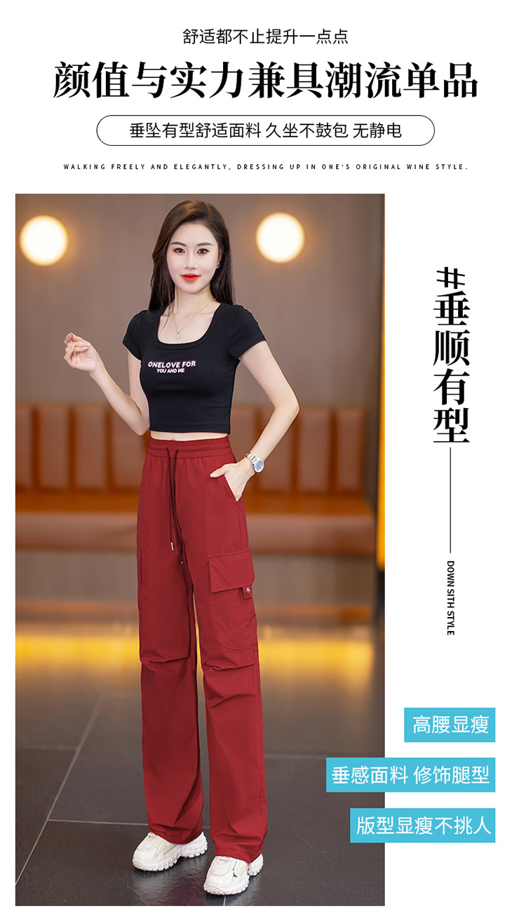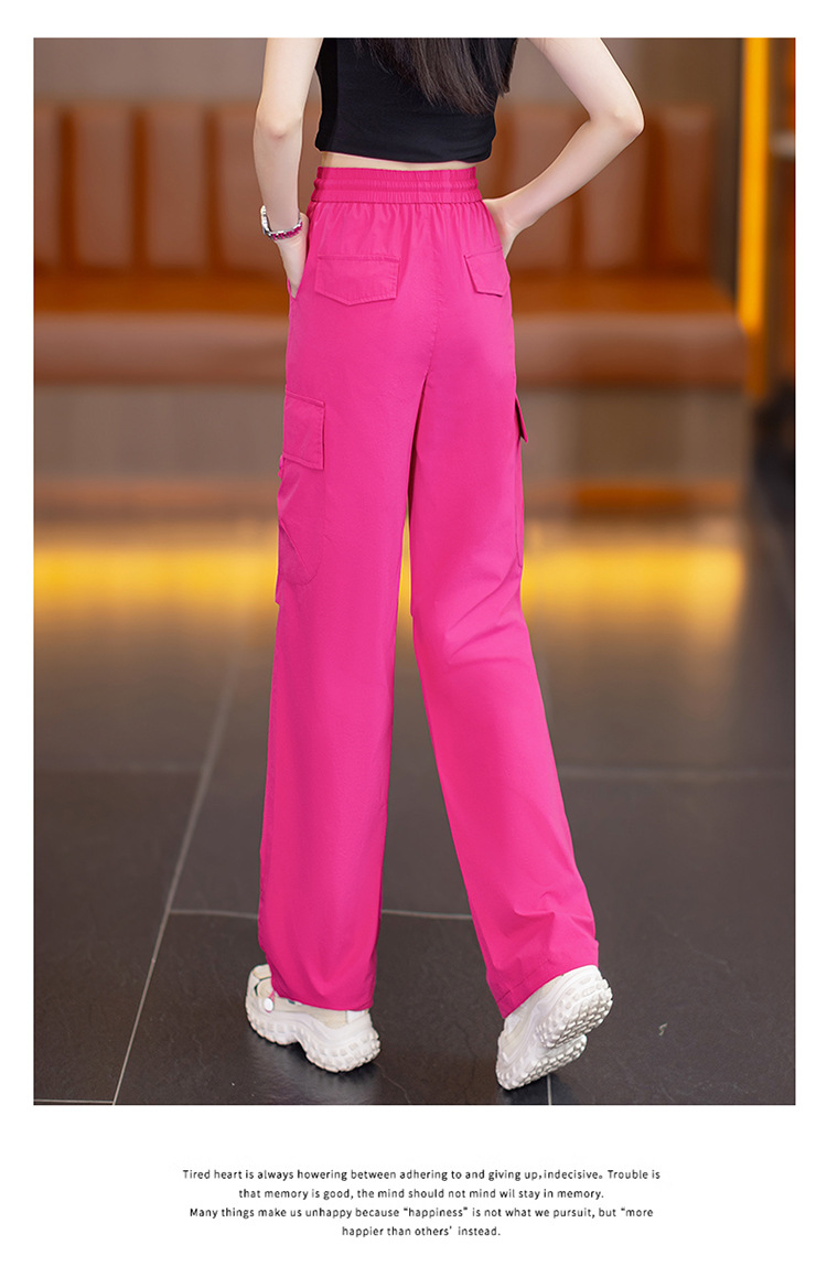 로즈 레드 오버올 여성 여름 얇은 2025 새로운 공수 군인 미국식 속건성 아이스 실크 등산 와이드 레그 스포츠 바지