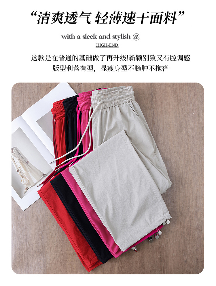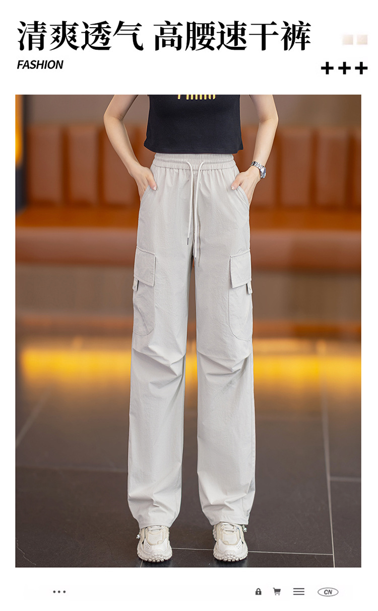 로즈 레드 오버올 여성 여름 얇은 2025 새로운 공수 군인 미국식 속건성 아이스 실크 등산 와이드 레그 스포츠 바지스토어 가기