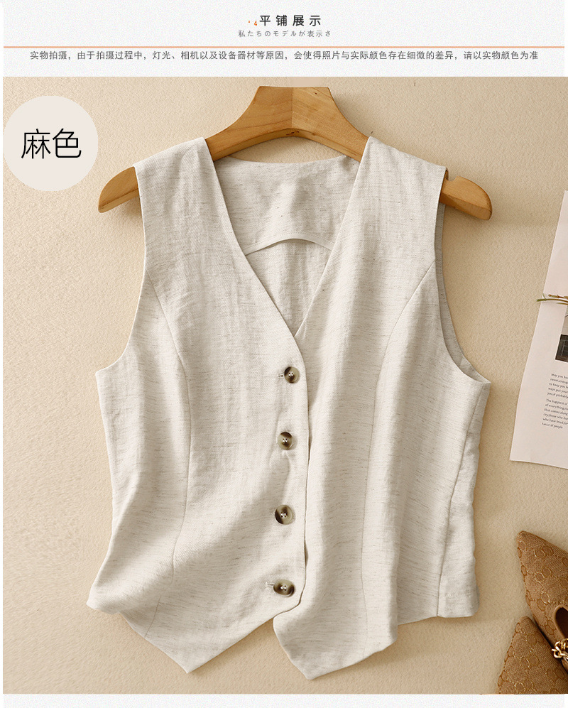 여름 아우터 슈트 브이넥 린넨 조끼 여성용 솔리드 컬러 슬리밍 민소매 조끼 코튼 린넨 양복 조끼 얇은스토어 가기