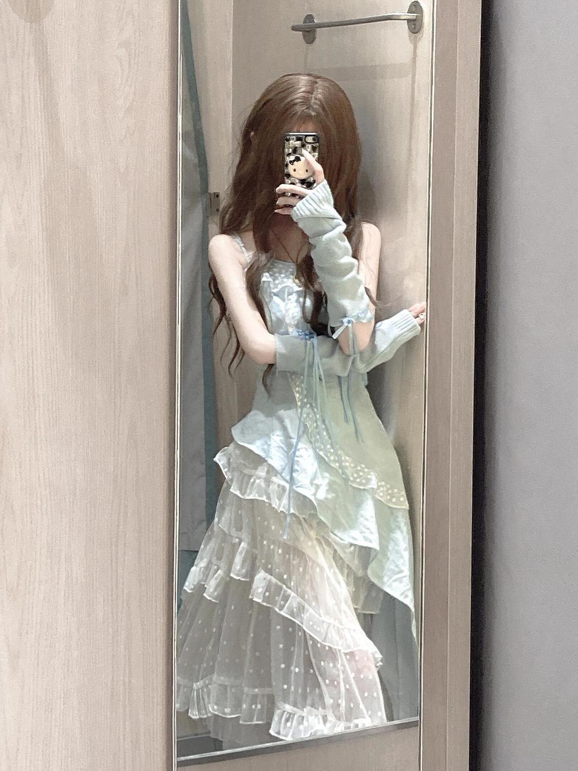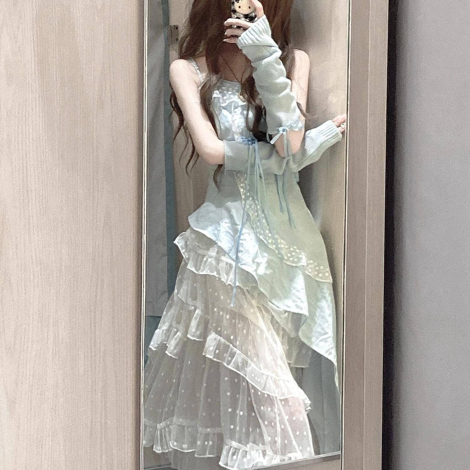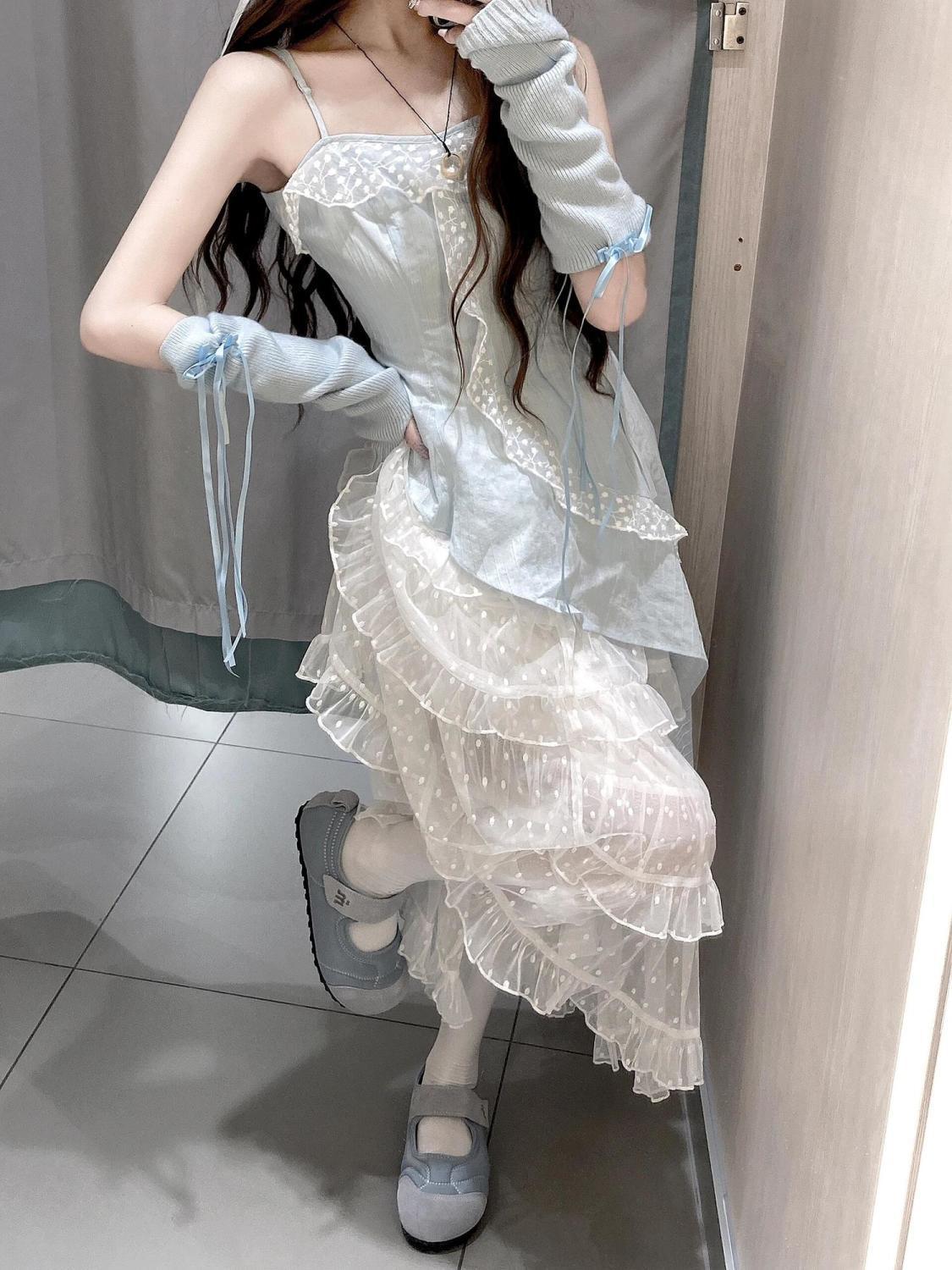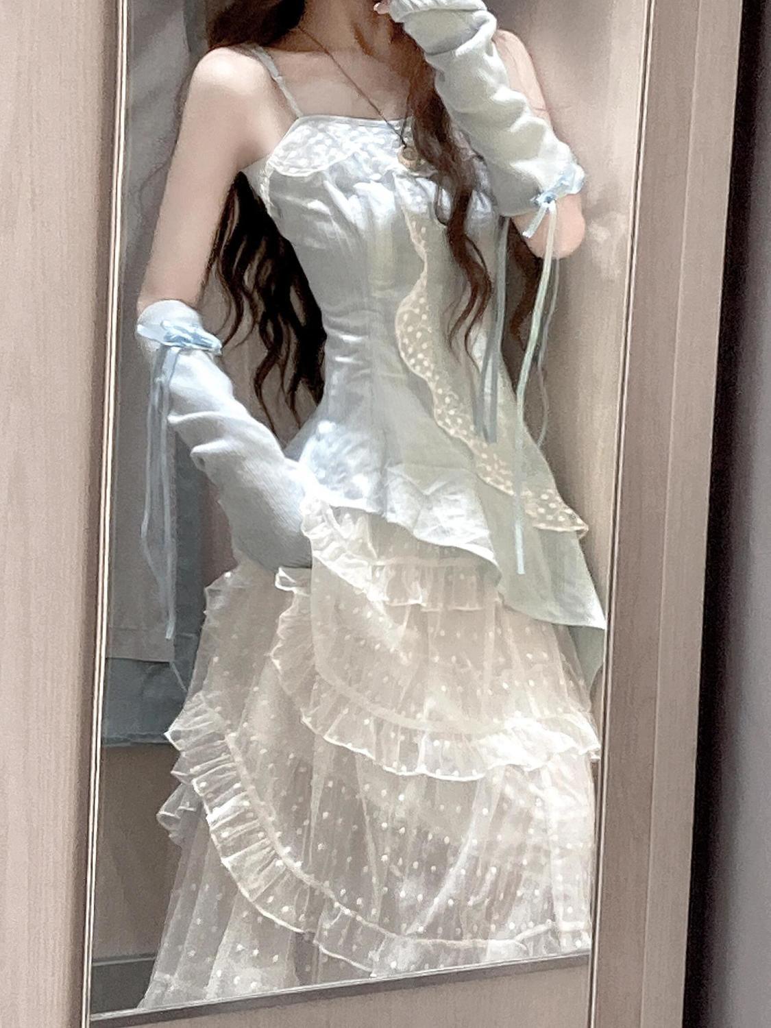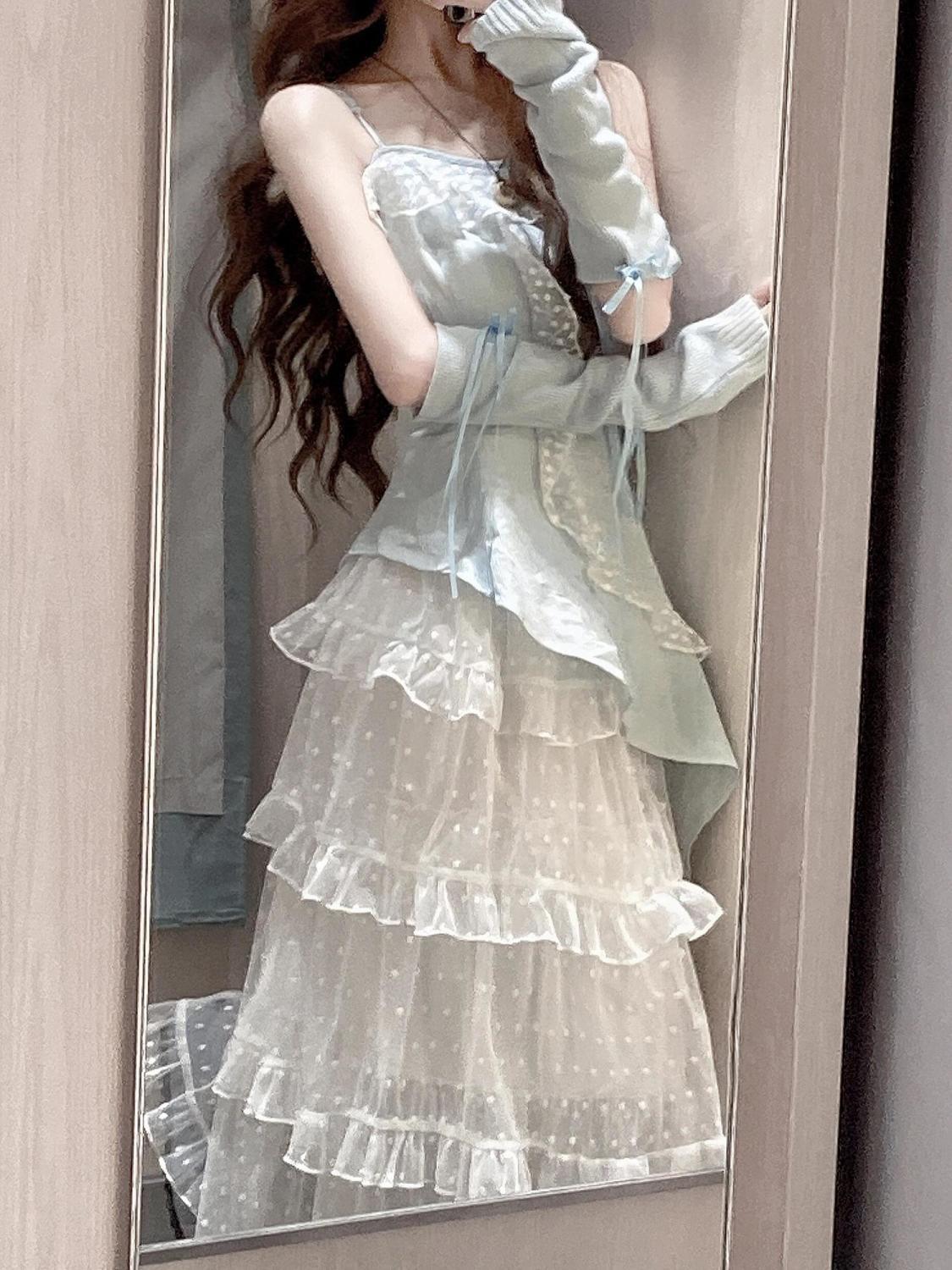 스커트 투피스 슈트 러플 서스펜더 탑 드레스 여성스러운 스위트 케이크 쉬폰 스커트 섹시