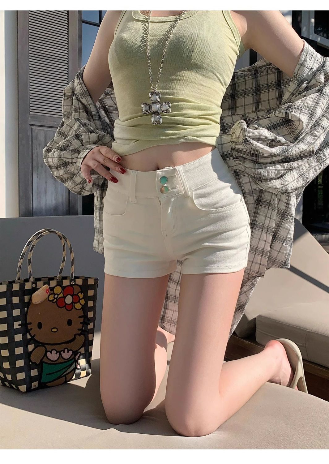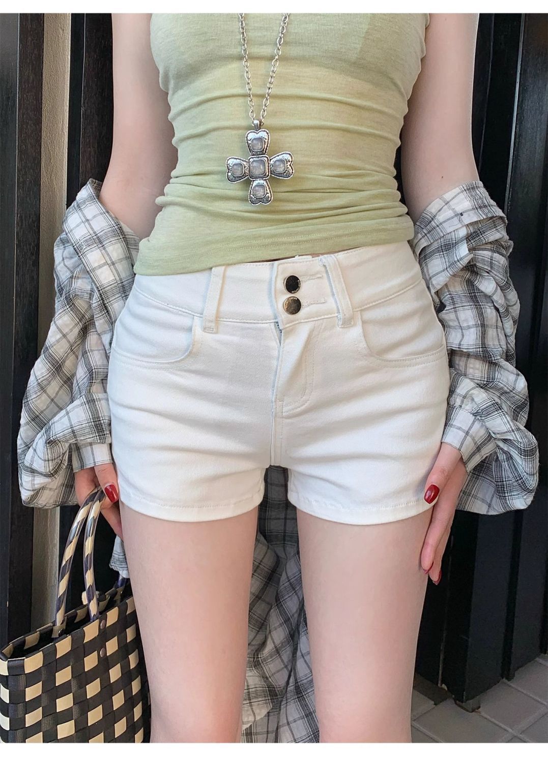 블랙 스트레치 데님 반바지 캐주얼 바지 여성 여름 하이 웨이스트 핫 소녀 슬림 스트레이트 바지 화이트 힙 핫 팬츠