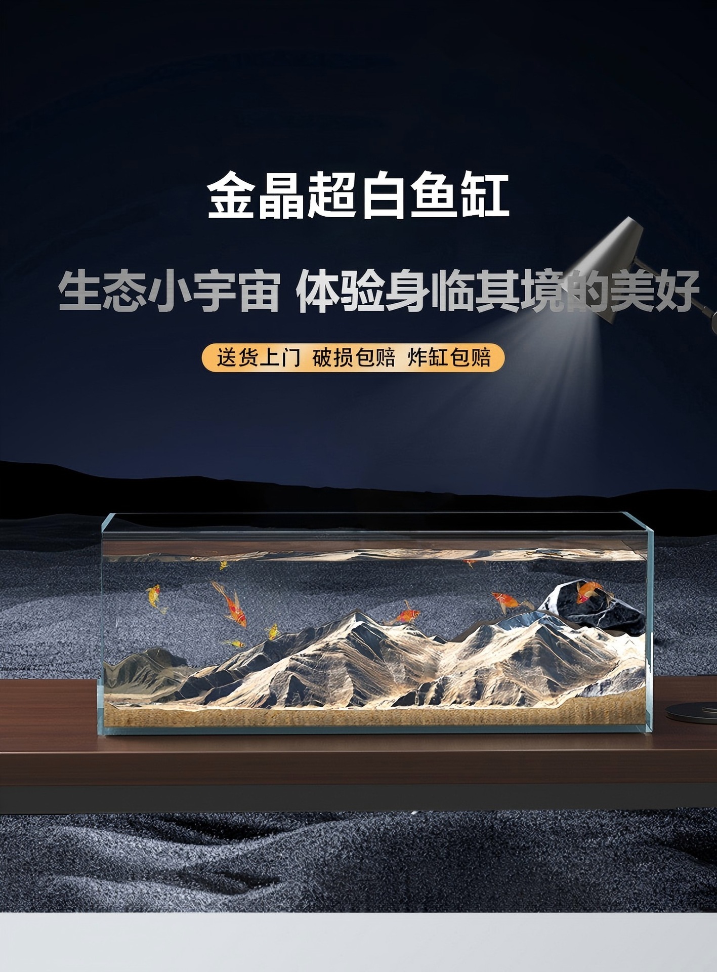 가정용 거실용 골드 크리스탈 초백색 유리 수조, 전문 조경 대형 스트림 탱크, 베어 탱크, 소형 생태 거북이 탱크스토어 가기