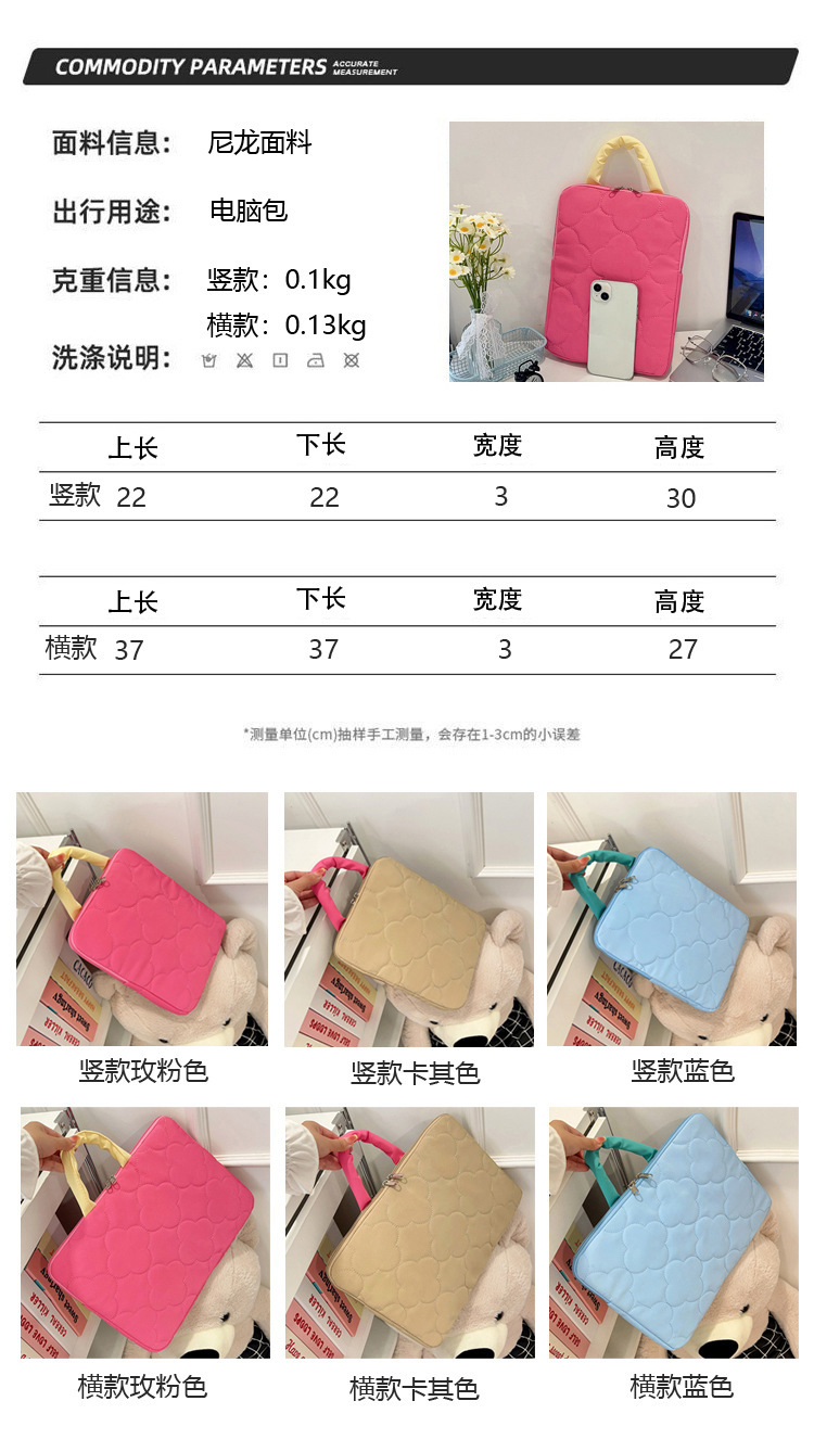 한국어 버전 ins 휴대용 자수 천 라이너 가방 마카롱 컬러 태블릿 보호 커버 낙하 방지 노트북 가방
