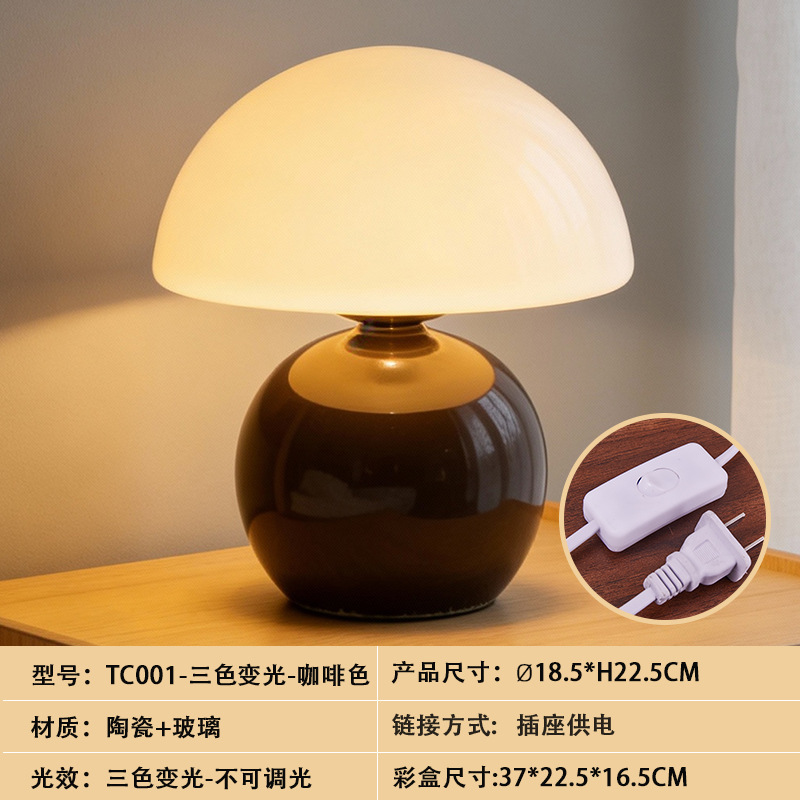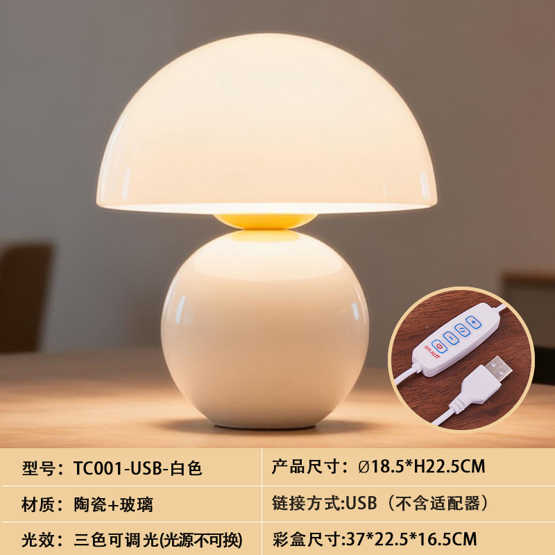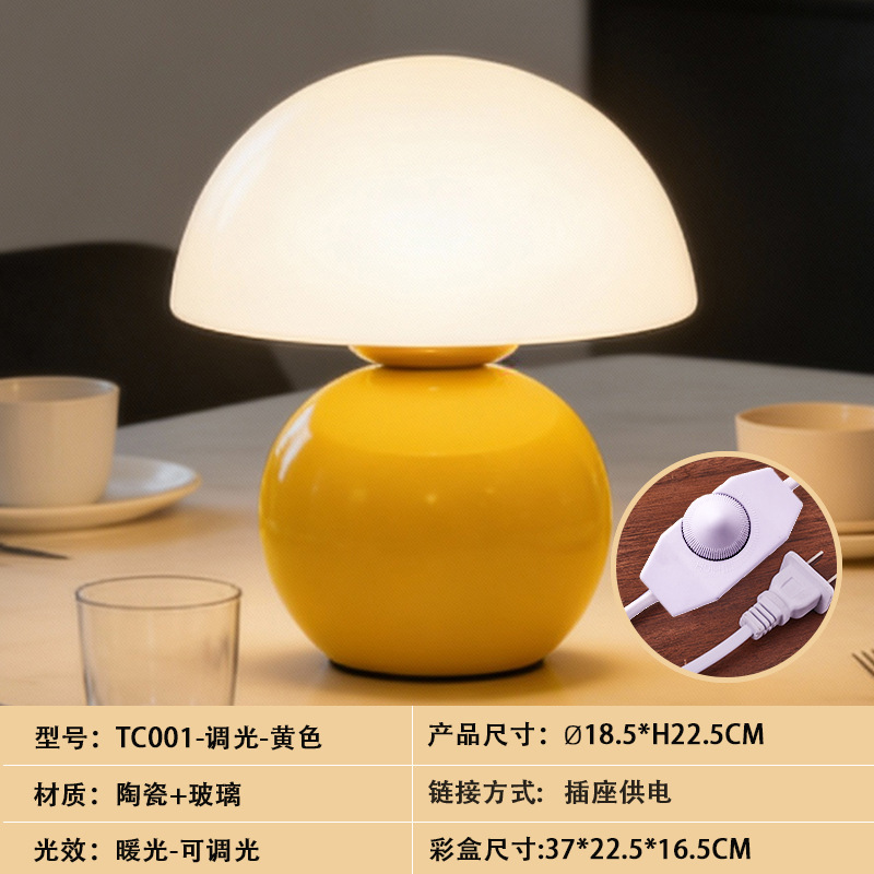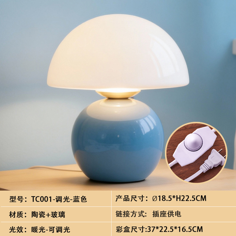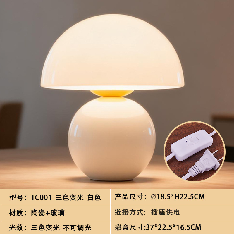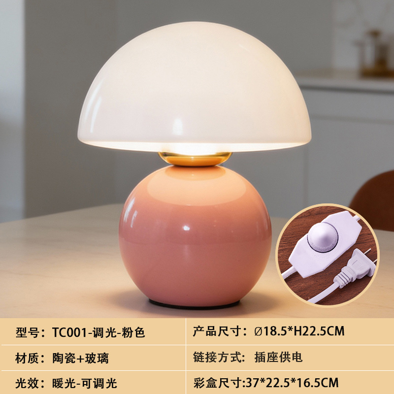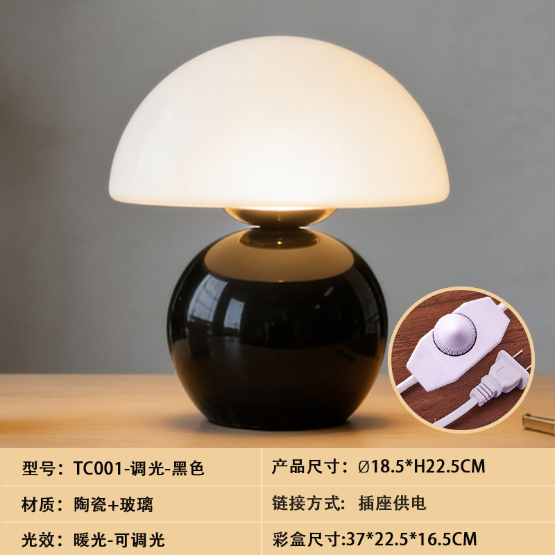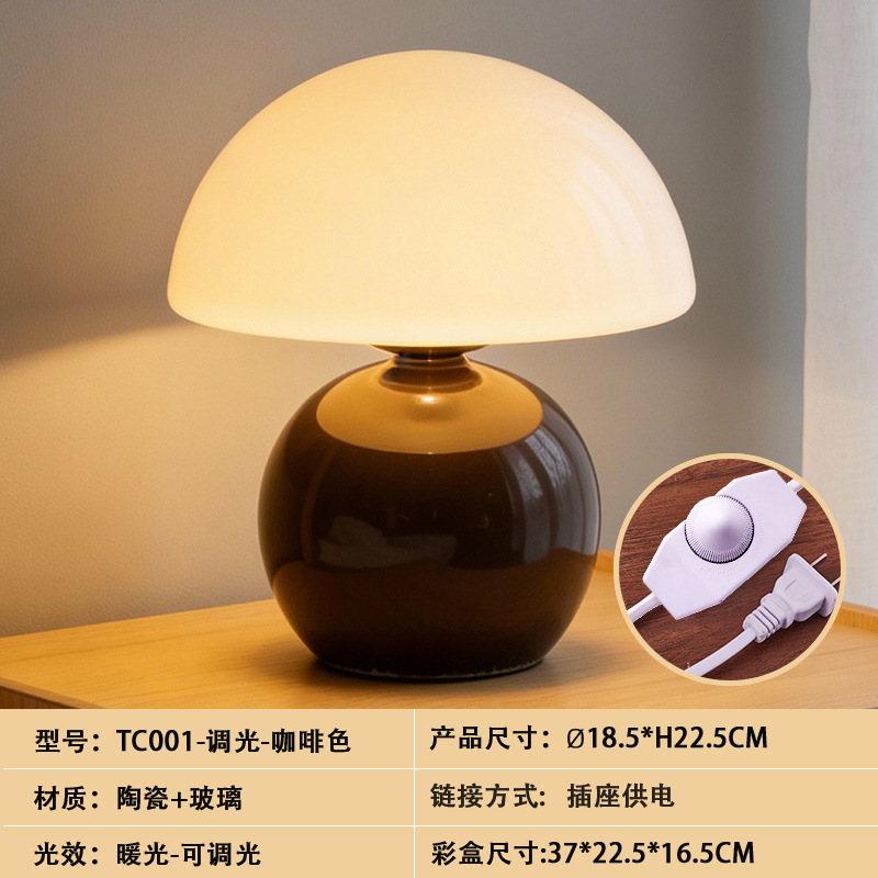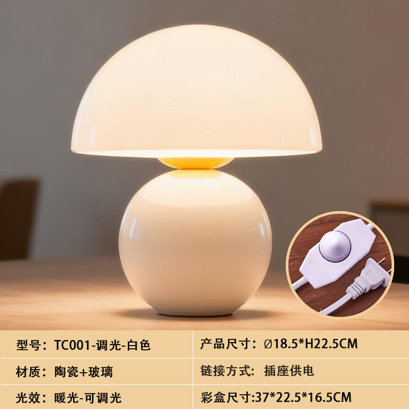 크리에이티브 세라믹 버섯 모양 테이블 램프, 크림 스타일 침실 침대 옆 고급스러운 분위기의 데스크탑 장식 램프