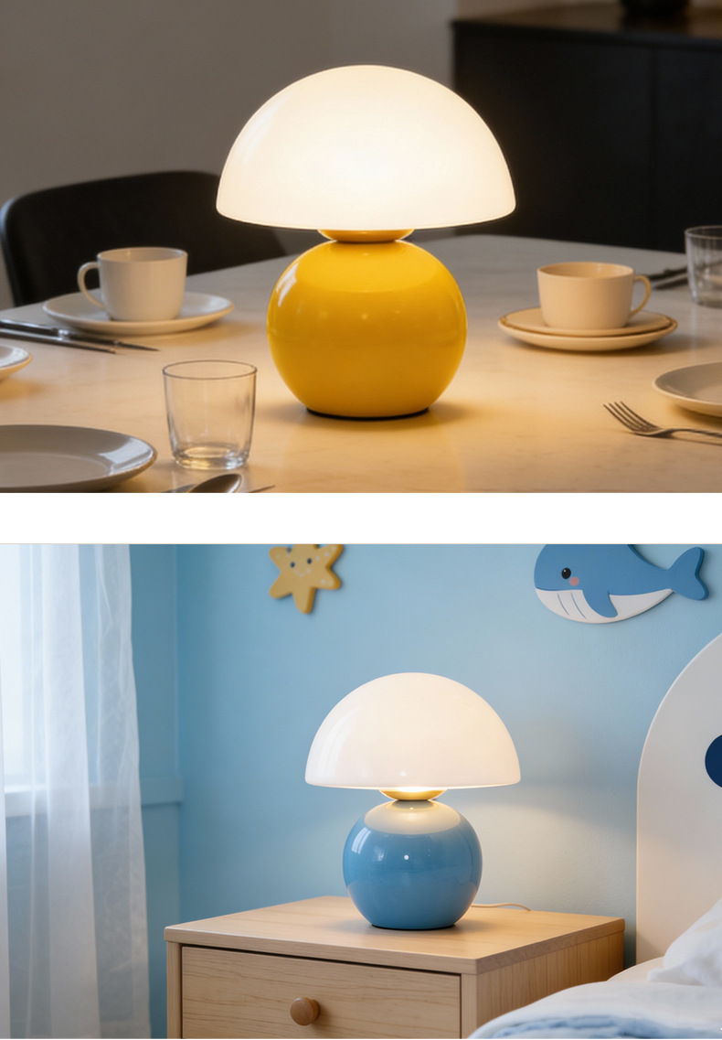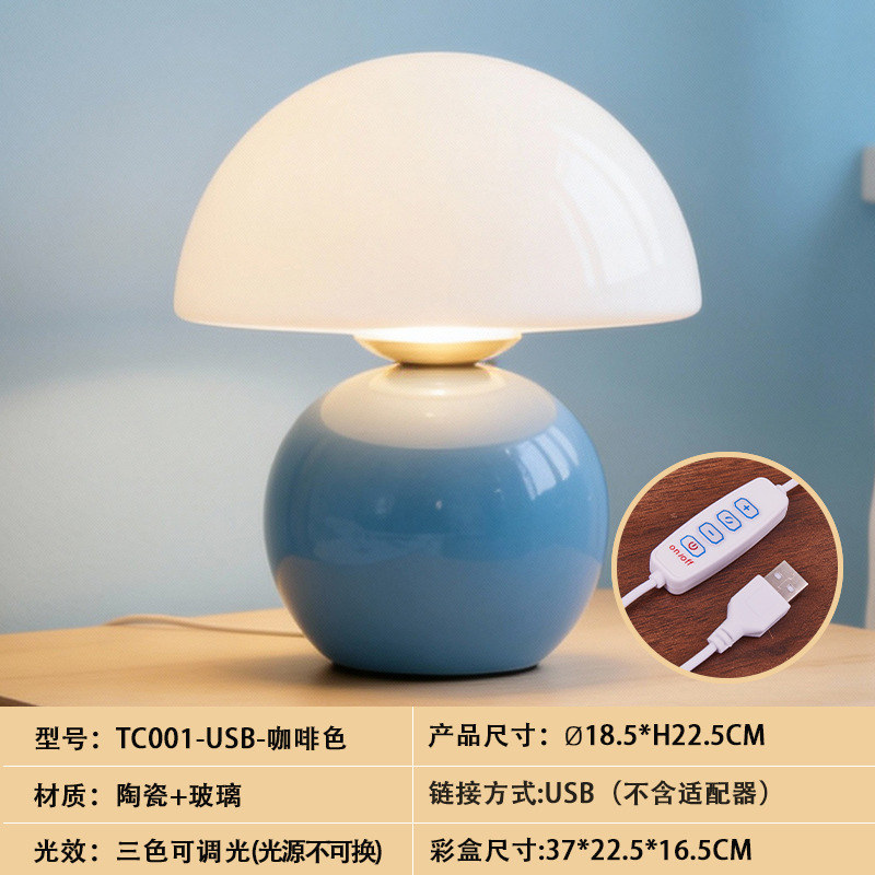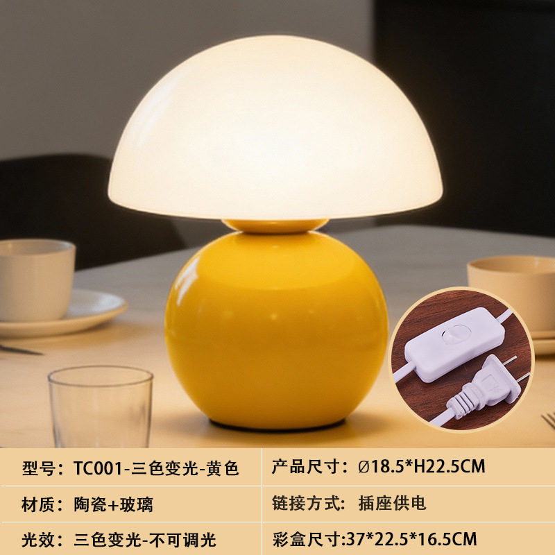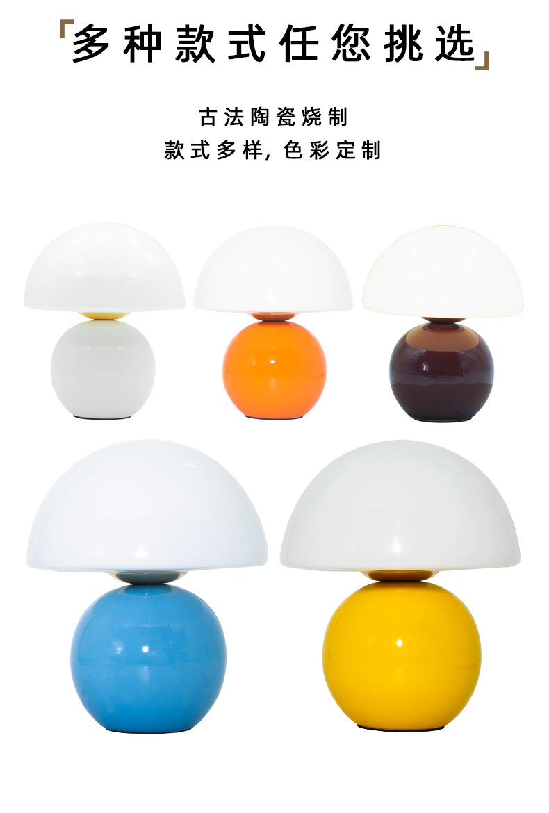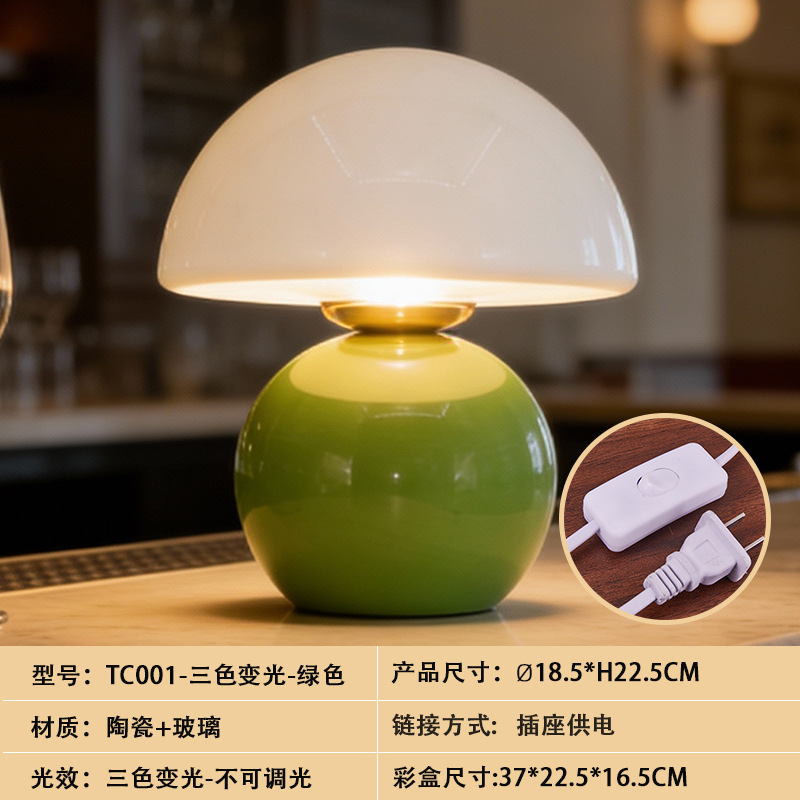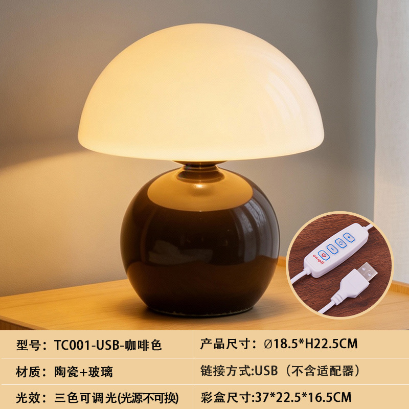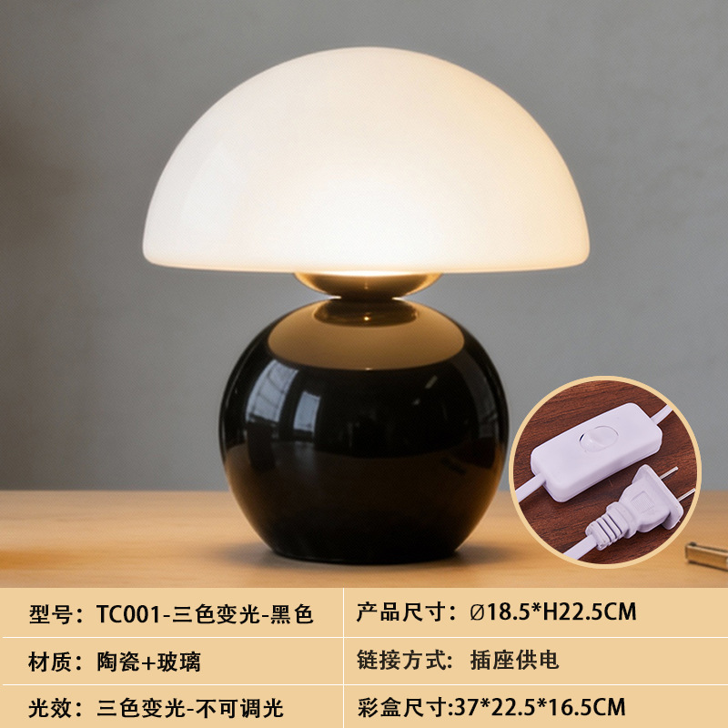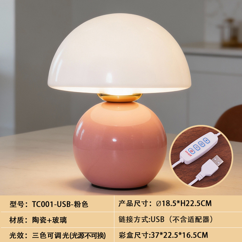 크리에이티브 세라믹 버섯 모양 테이블 램프, 크림 스타일 침실 침대 옆 고급스러운 분위기의 데스크탑 장식 램프