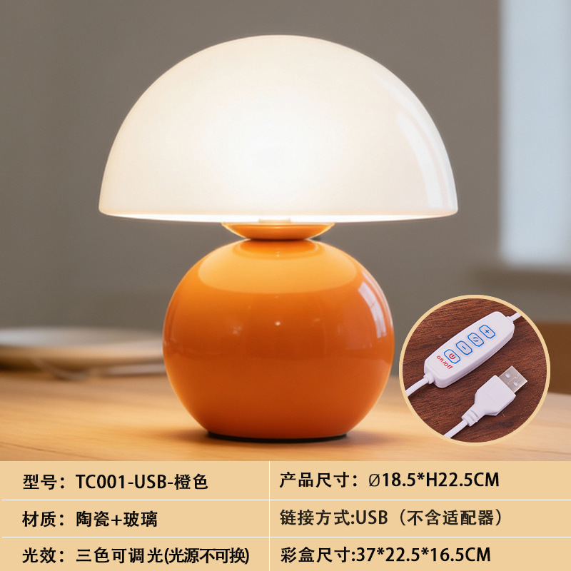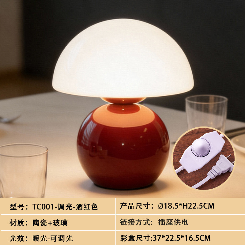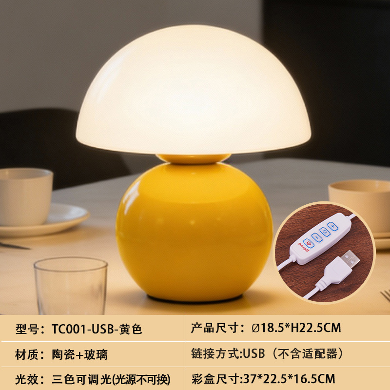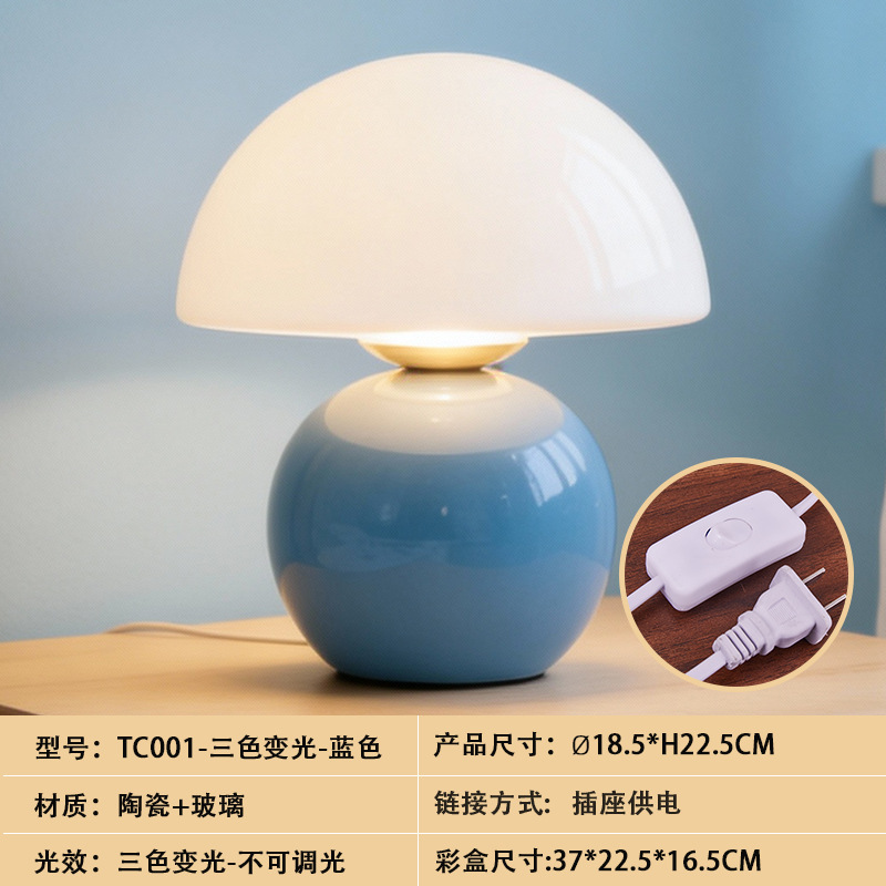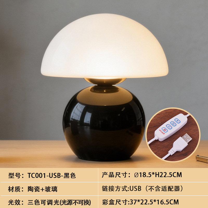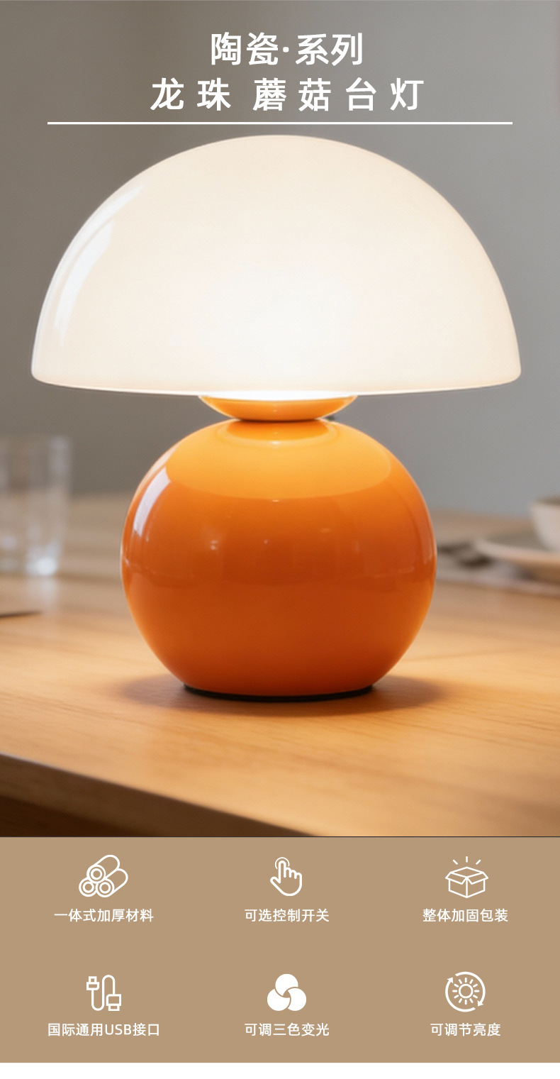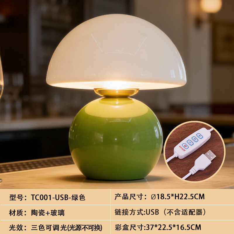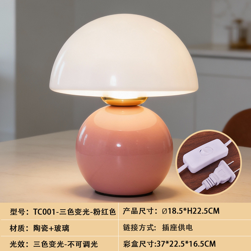 크리에이티브 세라믹 버섯 모양 테이블 램프, 크림 스타일 침실 침대 옆 고급스러운 분위기의 데스크탑 장식 램프