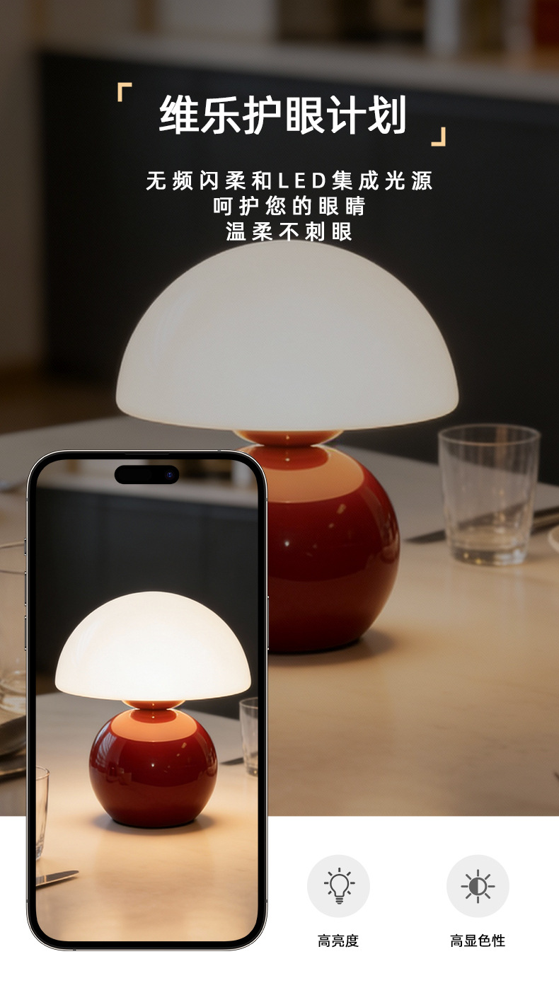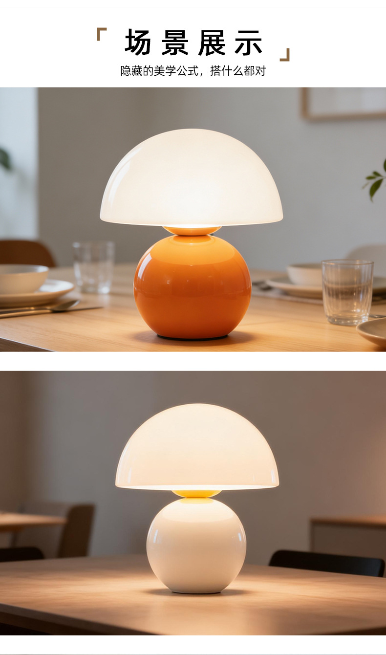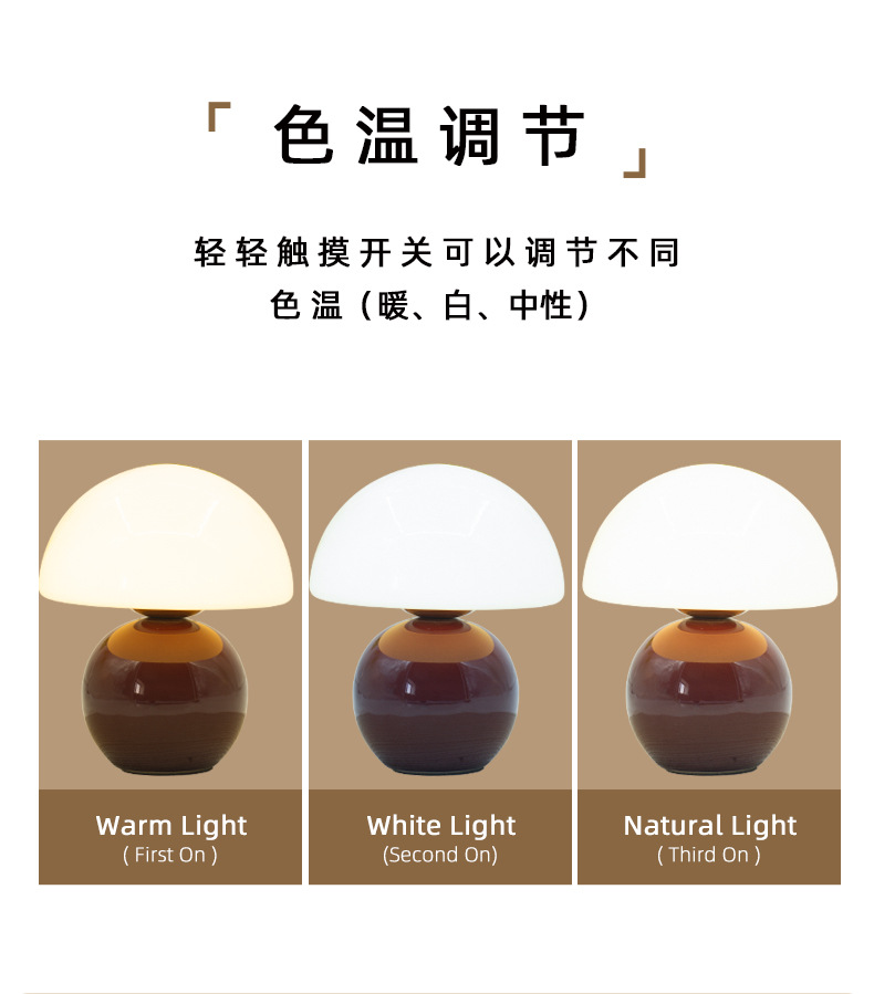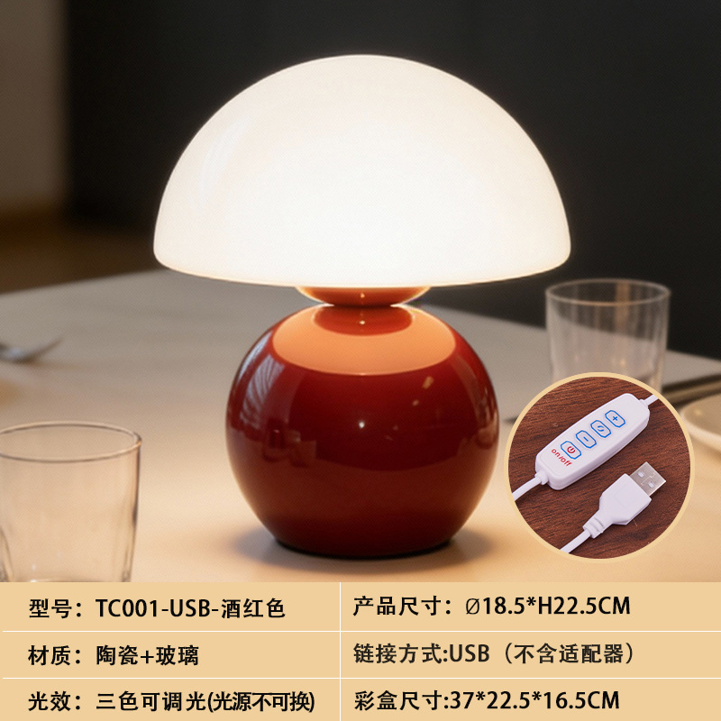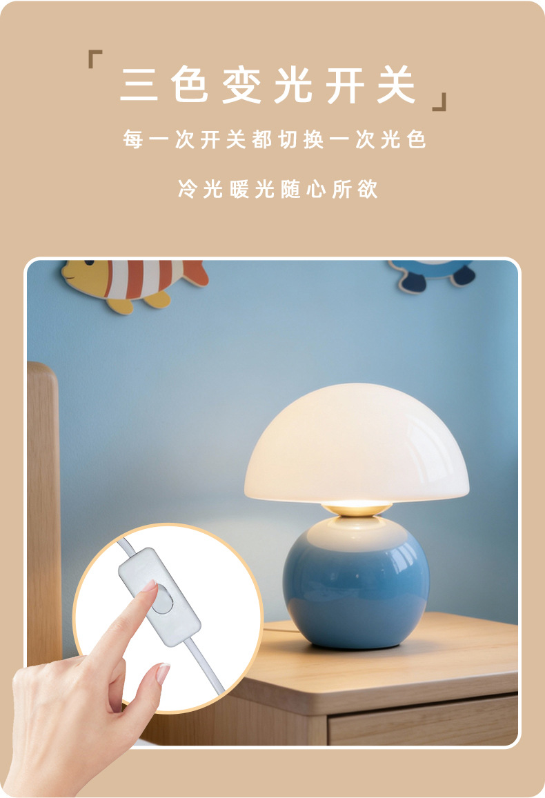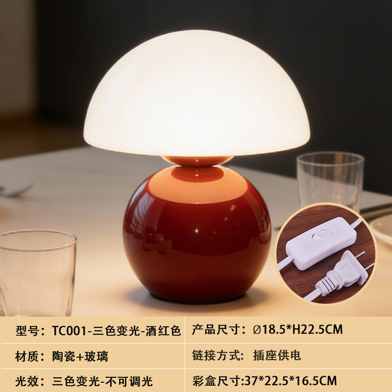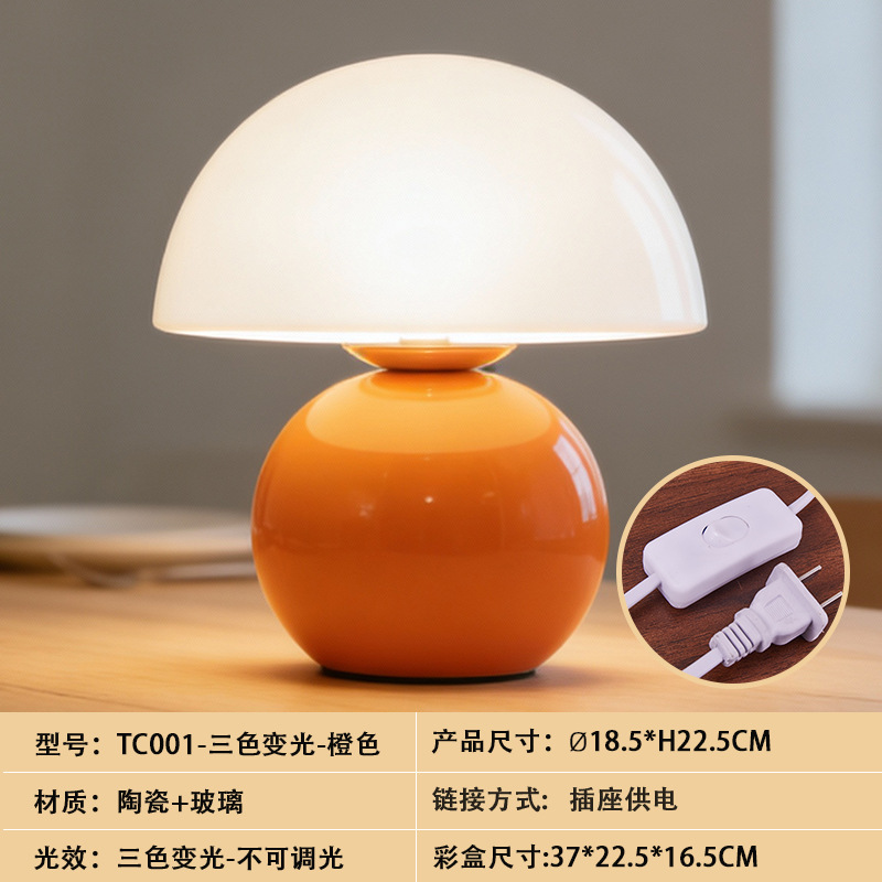 크리에이티브 세라믹 버섯 모양 테이블 램프, 크림 스타일 침실 침대 옆 고급스러운 분위기의 데스크탑 장식 램프