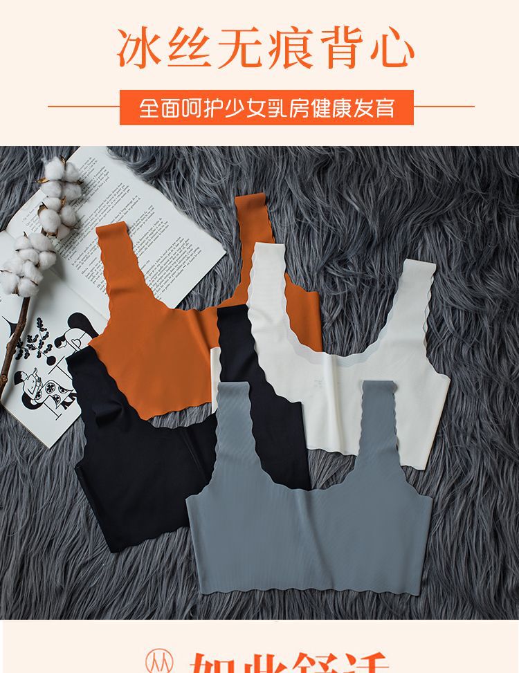7-14세 여아 속옷, 아이스 실크 무봉제 아동 조끼, 여아 발달 초기, 초등학생, 중학생, 대형 아동용 광대역스토어 가기