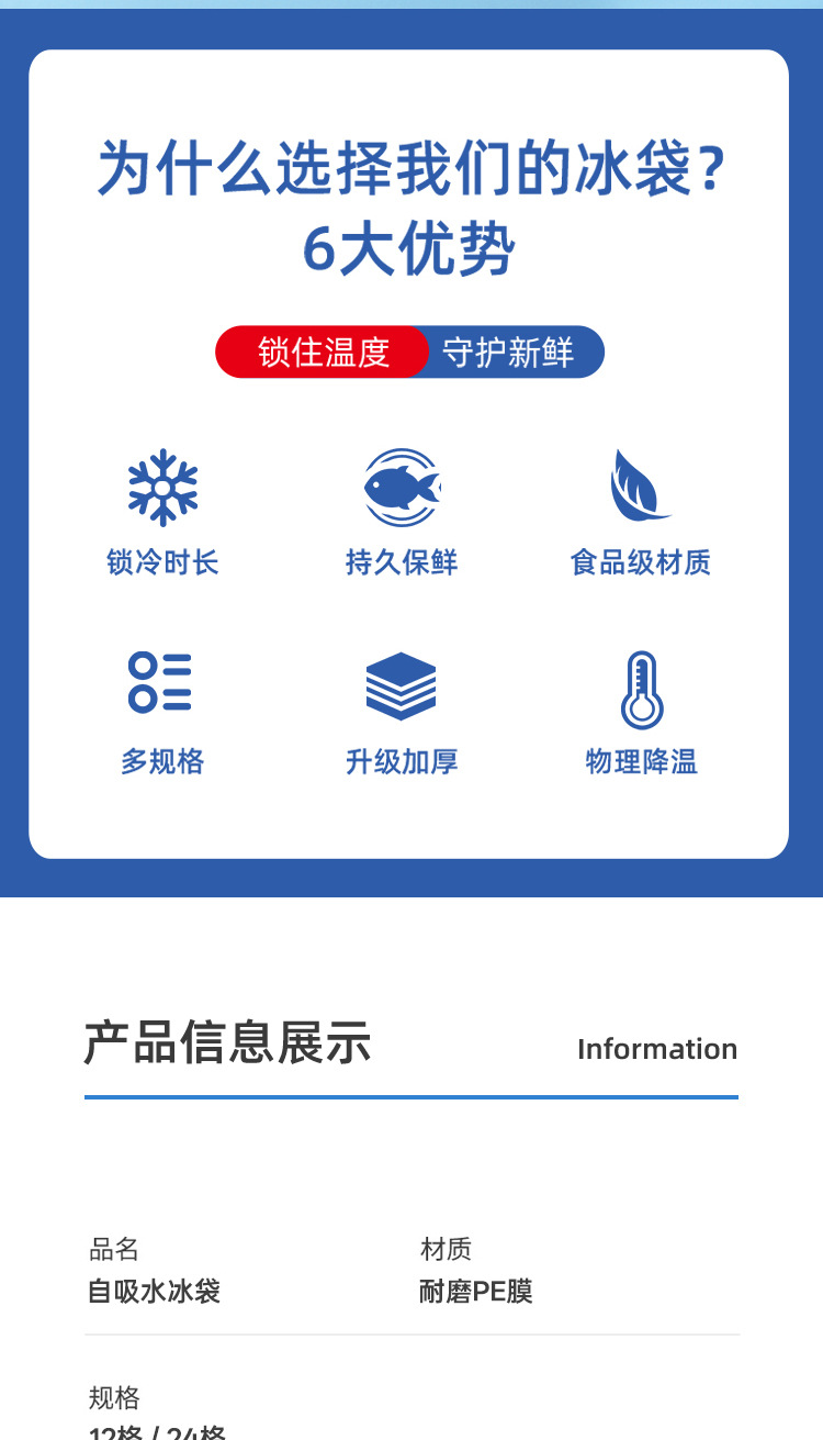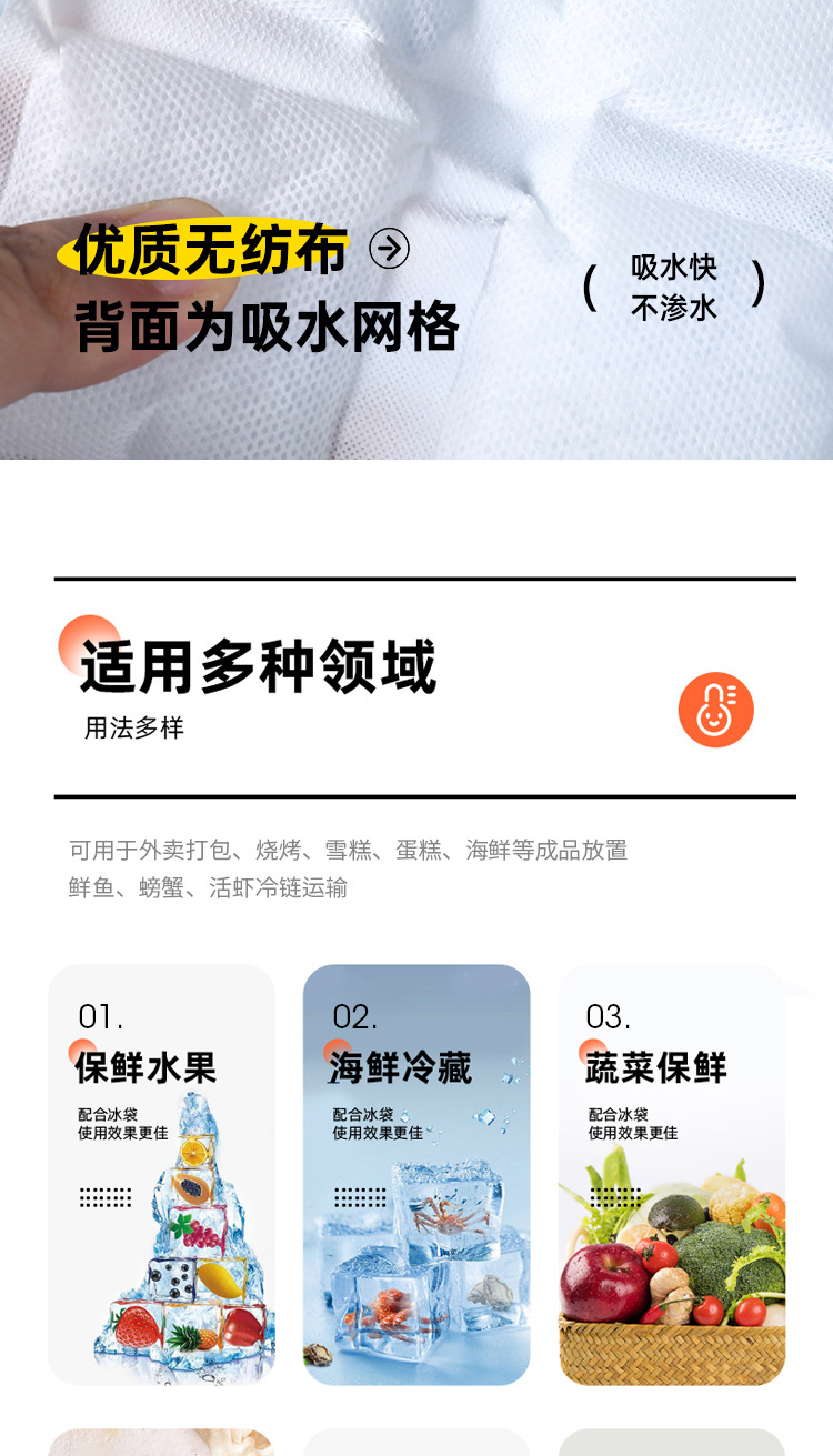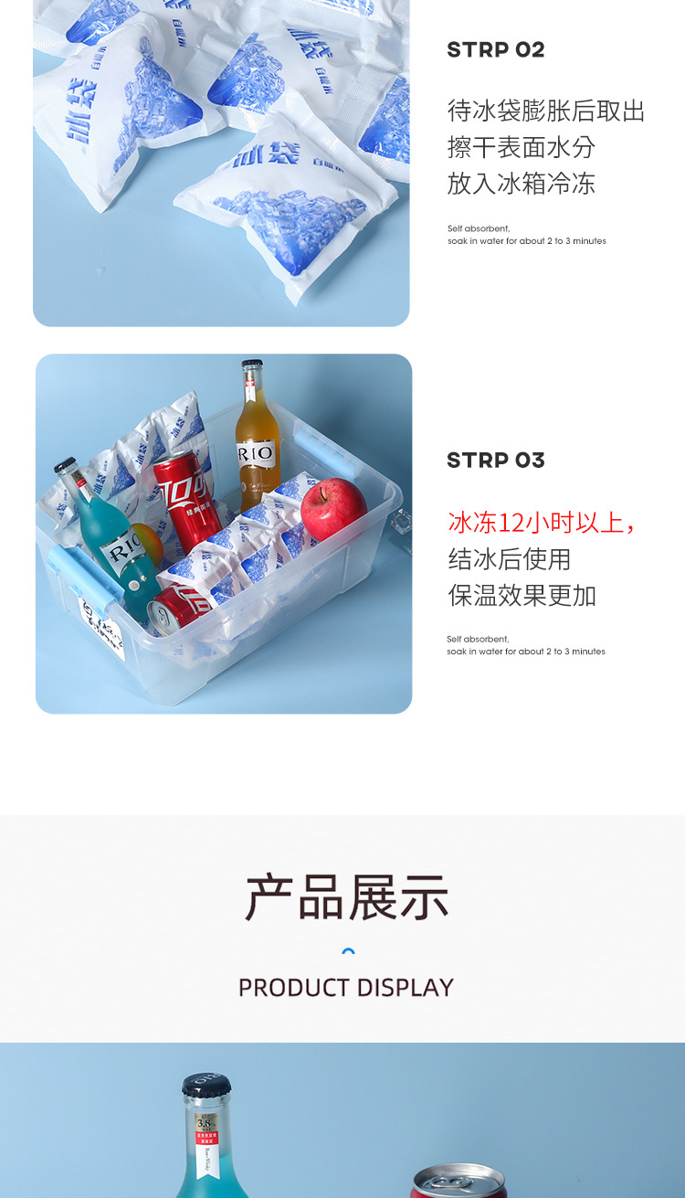 냉장 및 신선한 과일 및 야채 보존을 위한 일회용 무수 얼음주머니, 특급 운송, 자흡식 얼음주머니스토어 가기