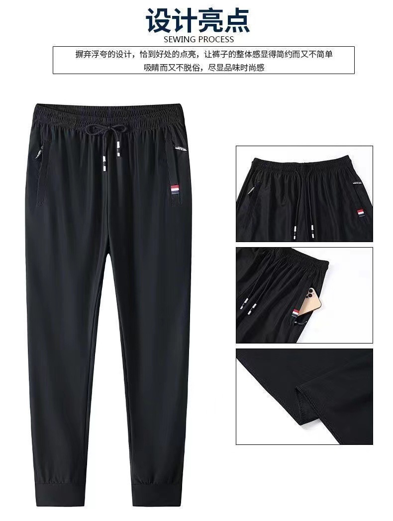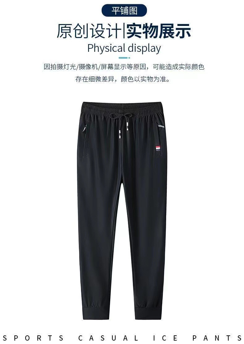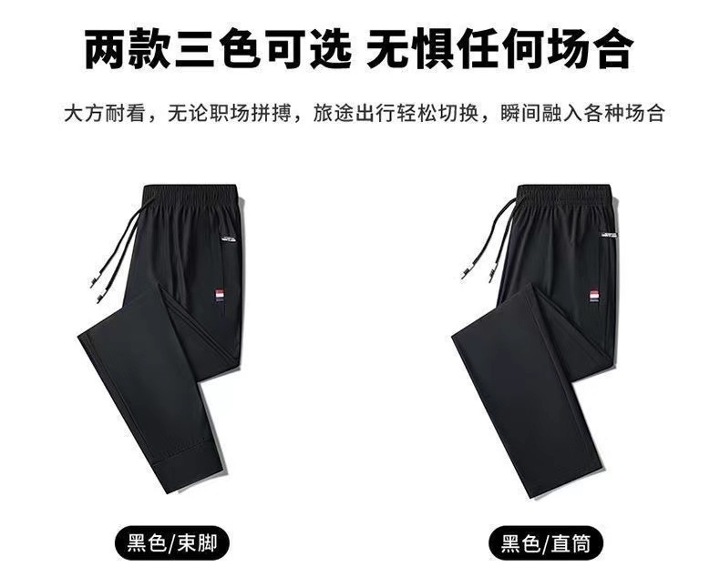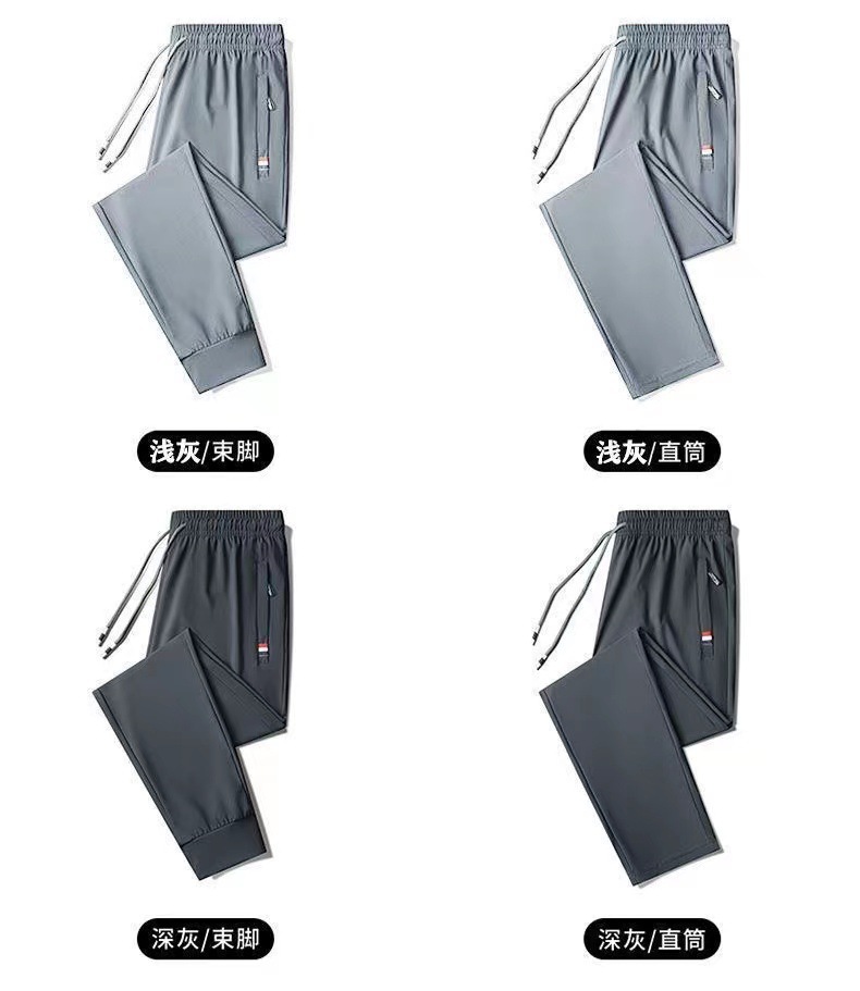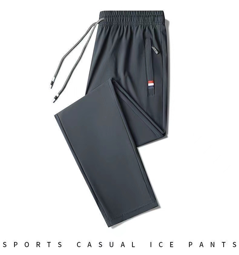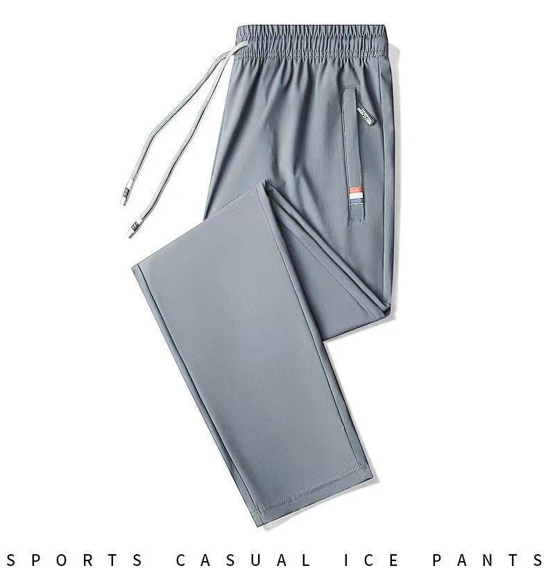 여름 남성용 지퍼 아이스 실크 속건성 바지, 통기성이 좋고 루즈한 야외 스트레이트 레그 타이 하이킹 스포츠 바지 남성용 1/2개