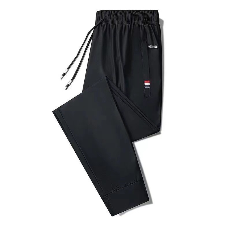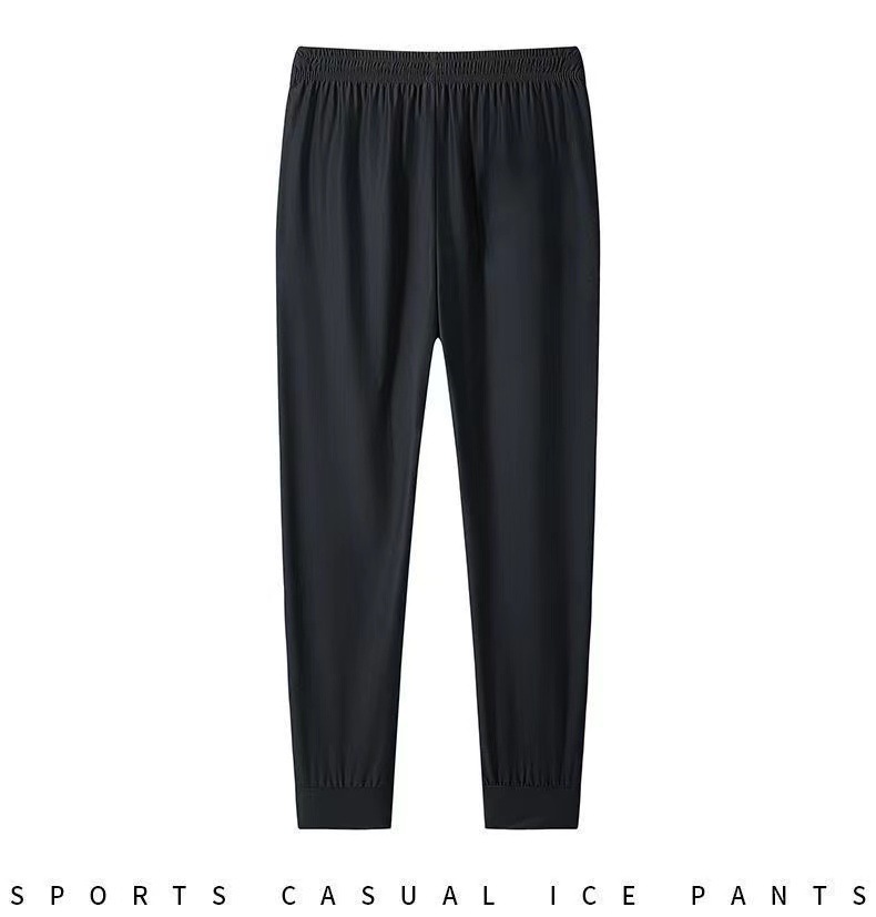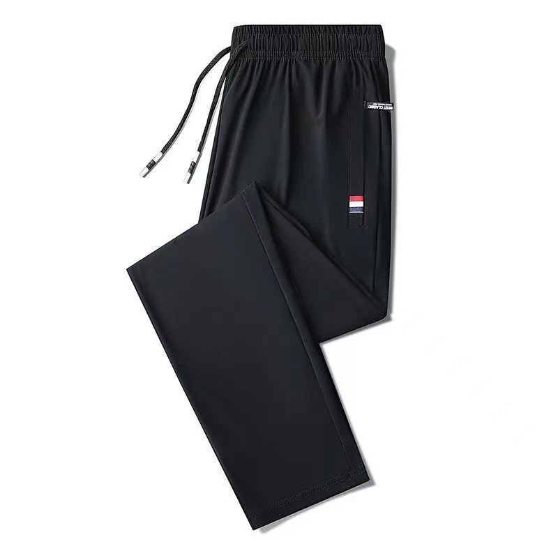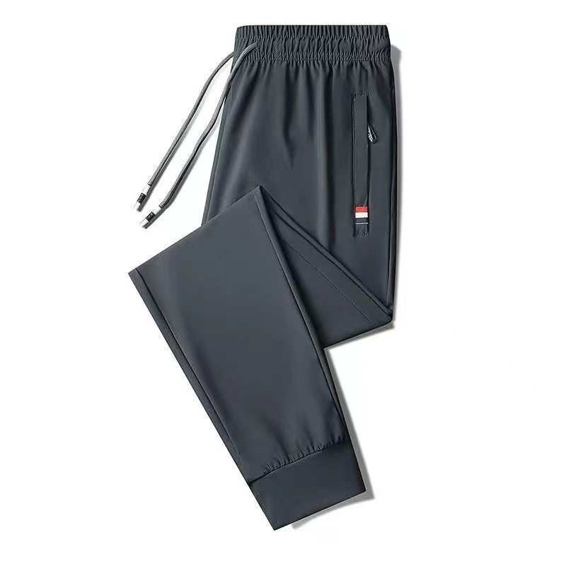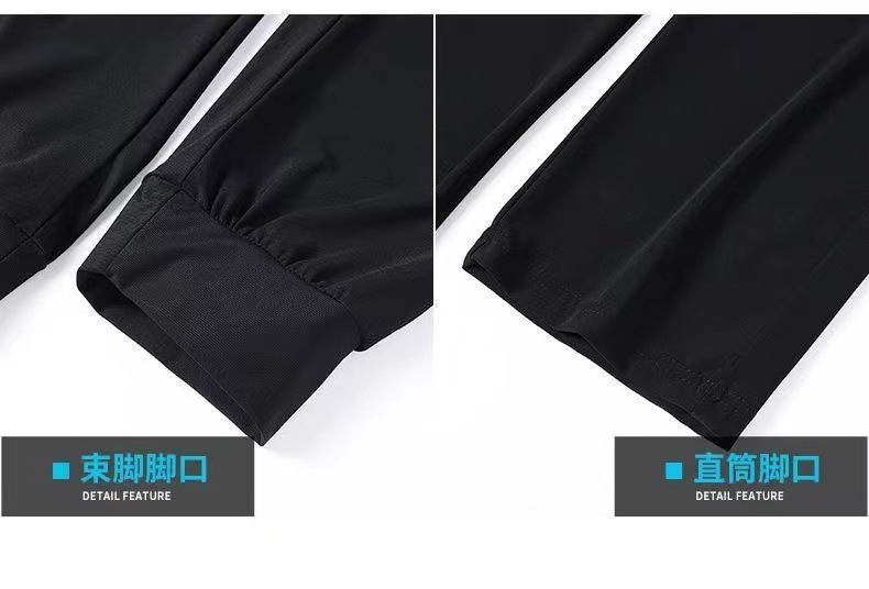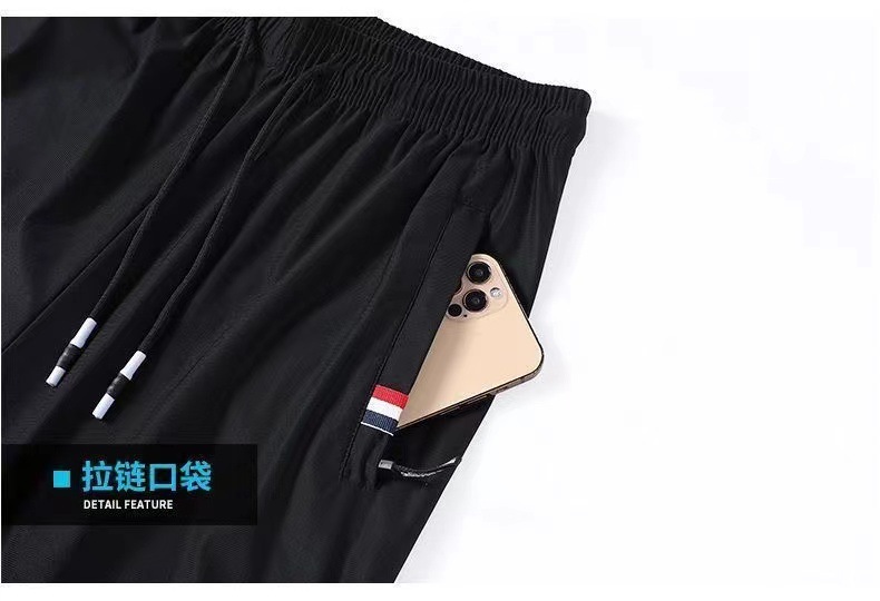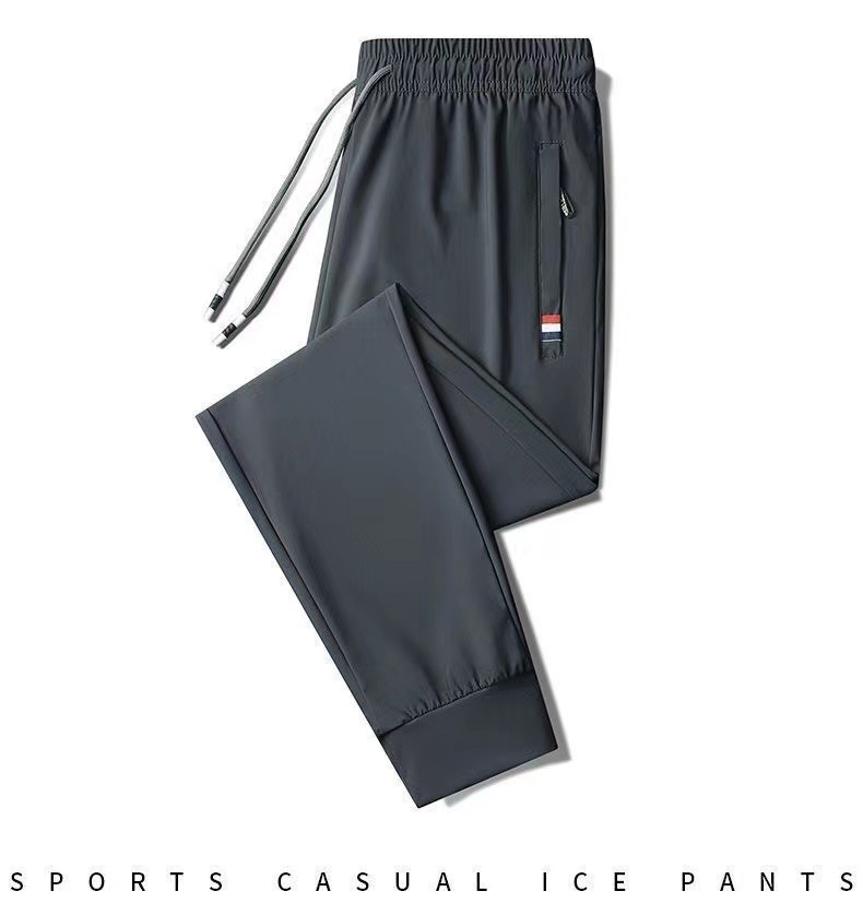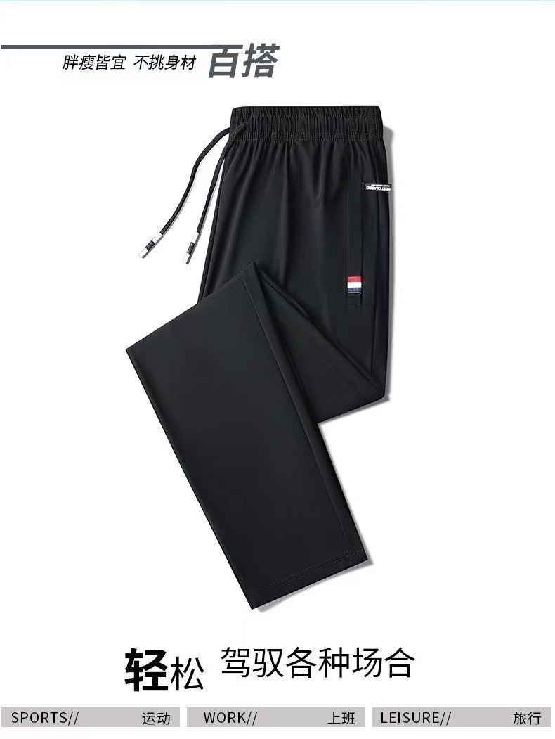 여름 남성용 지퍼 아이스 실크 속건성 바지, 통기성이 좋고 루즈한 야외 스트레이트 레그 타이 하이킹 스포츠 바지 남성용 1/2개