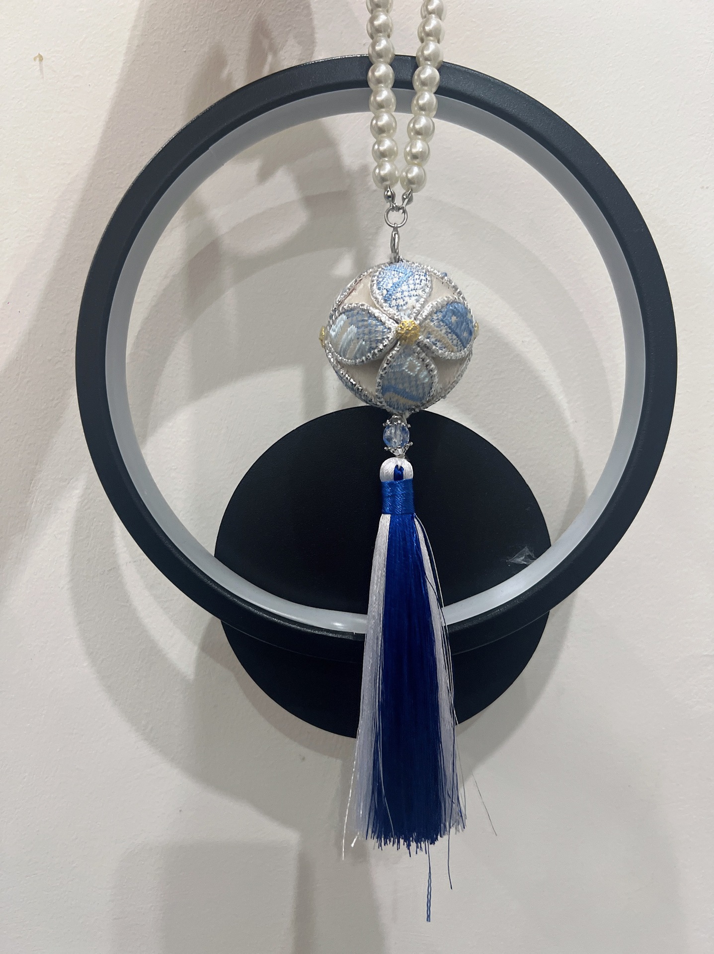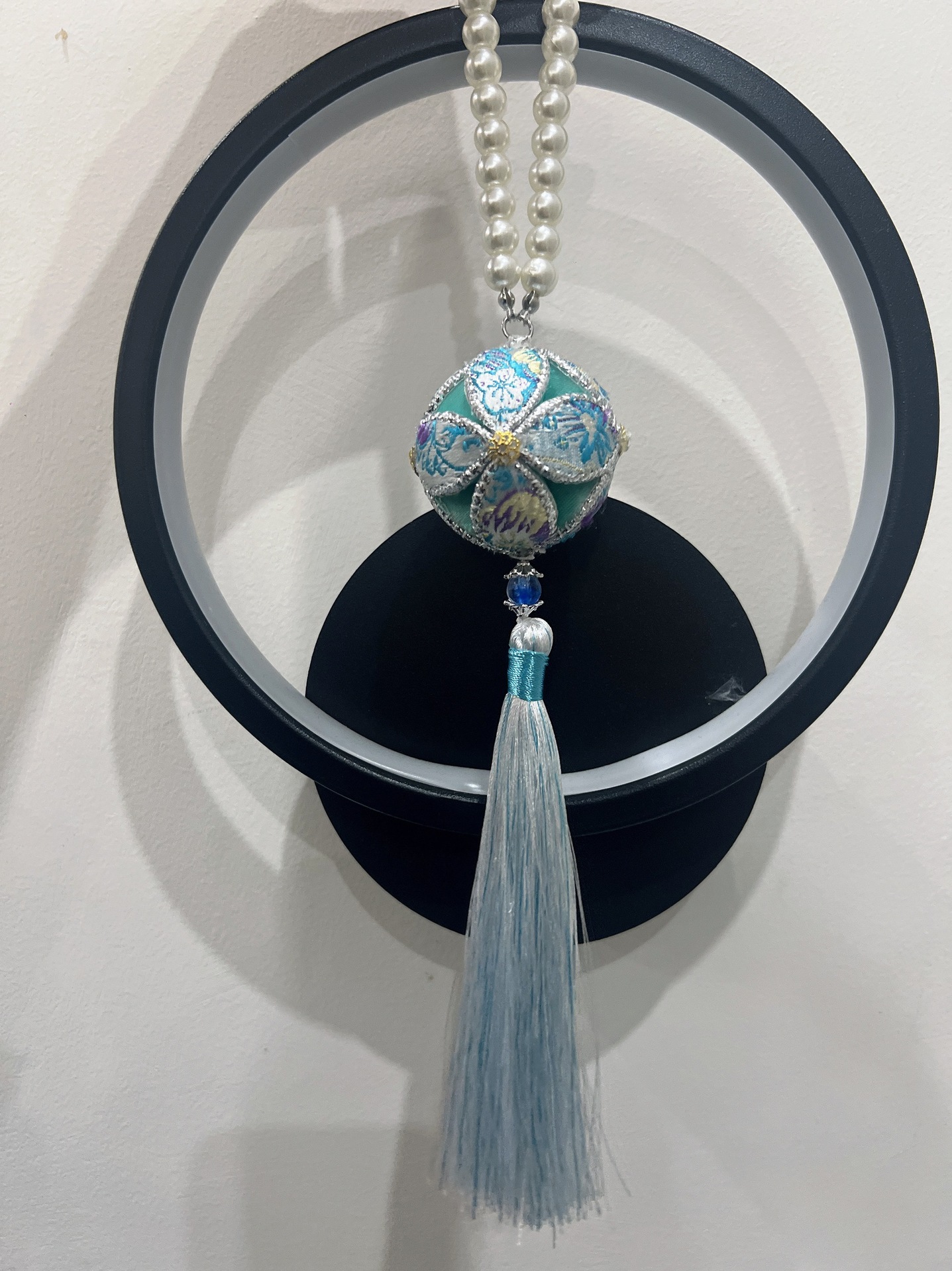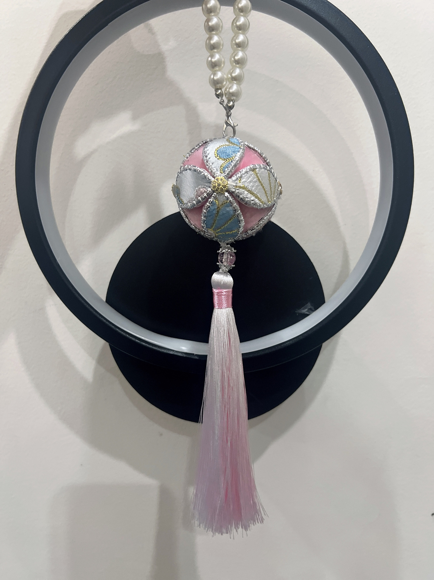 광시 Jingxi 수국 장미 자수 펜던트 공예 민족 특성 4cm 공예품 진주 교수형 체인