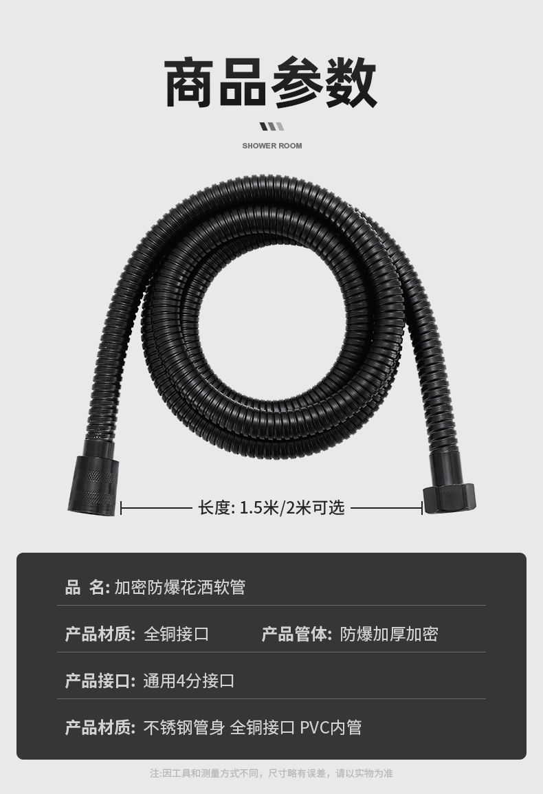샤워 호스 1.5/ 2m 스테인레스 스틸 방폭형 레인 샤워 헤드 블랙 호스 욕실 액세서리