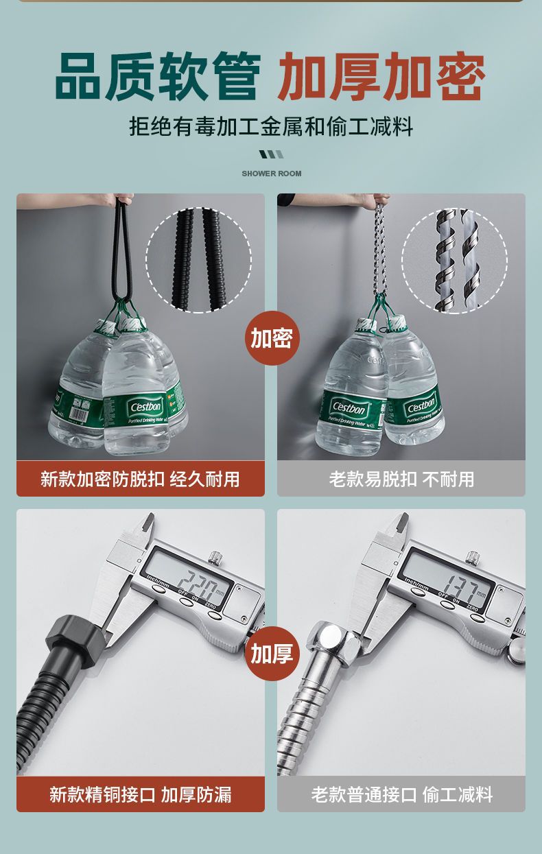 샤워 호스 1.5/ 2m 스테인레스 스틸 방폭형 레인 샤워 헤드 블랙 호스 욕실 액세서리스토어 가기