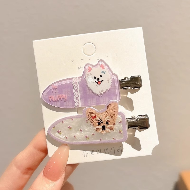 • 카툰 강아지 머리핀 - 보라색 [한 쌍, 카드 포함]