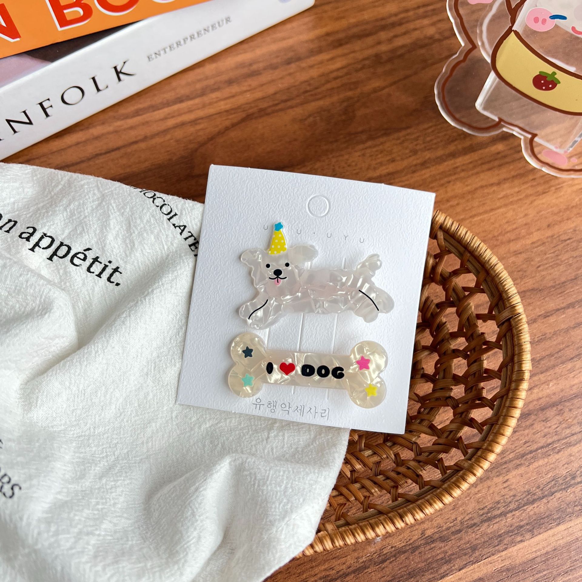 • 카툰 강아지 머리핀 - 랜덤 발송 [낱개, 종이 카드 없음]