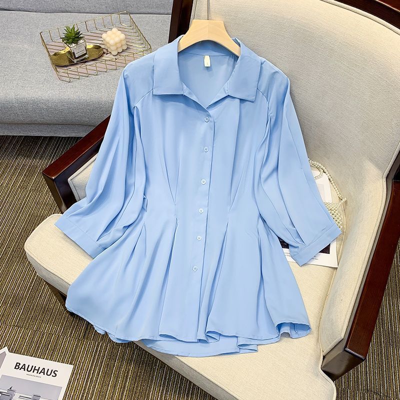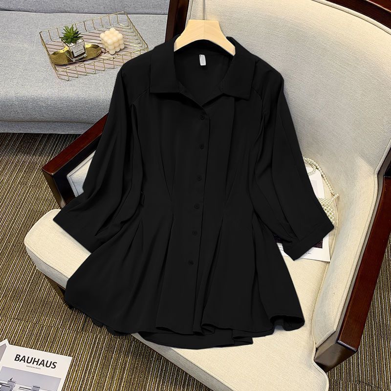 뚱뚱한 사람들을 위한 패셔너블한 허리 슬리밍 셔츠, 배를 커버하고 슬림하게 보이게 해주는 2025 가을 신상 솔리드 컬러 다용도 디자인 쉬폰 탑