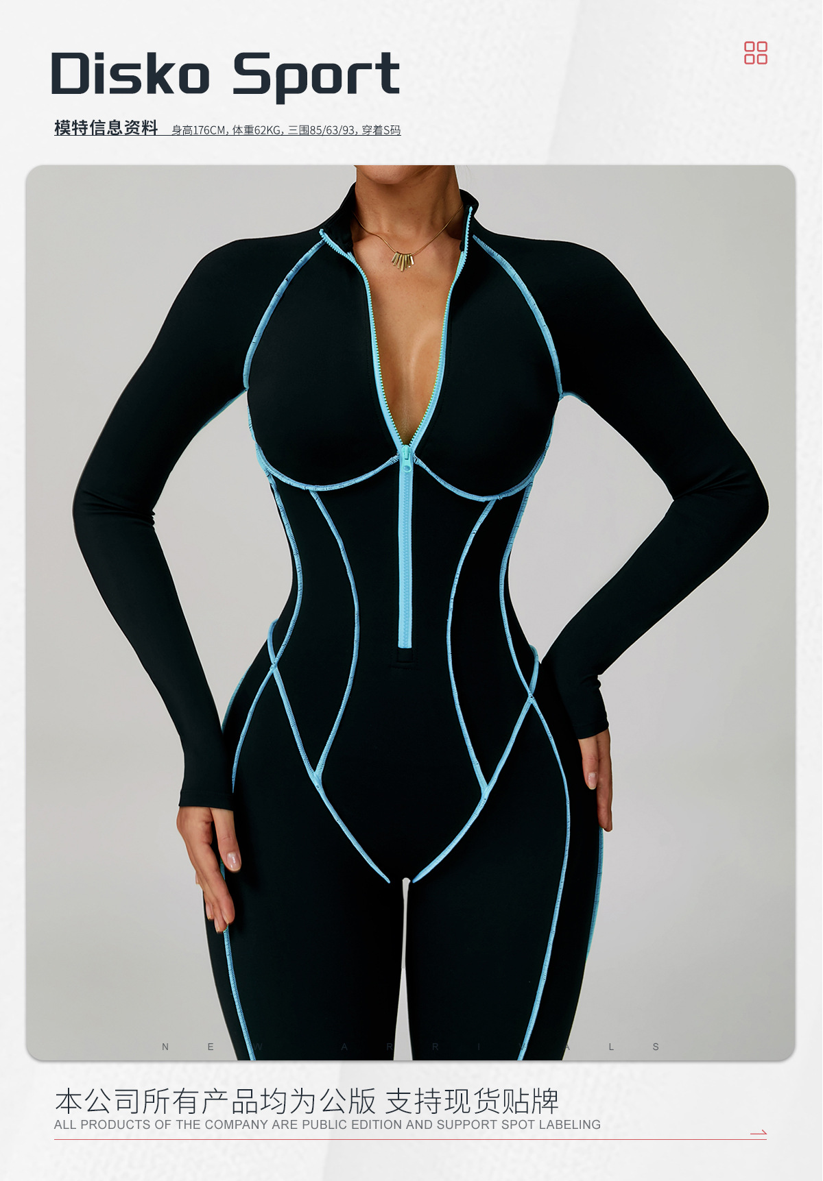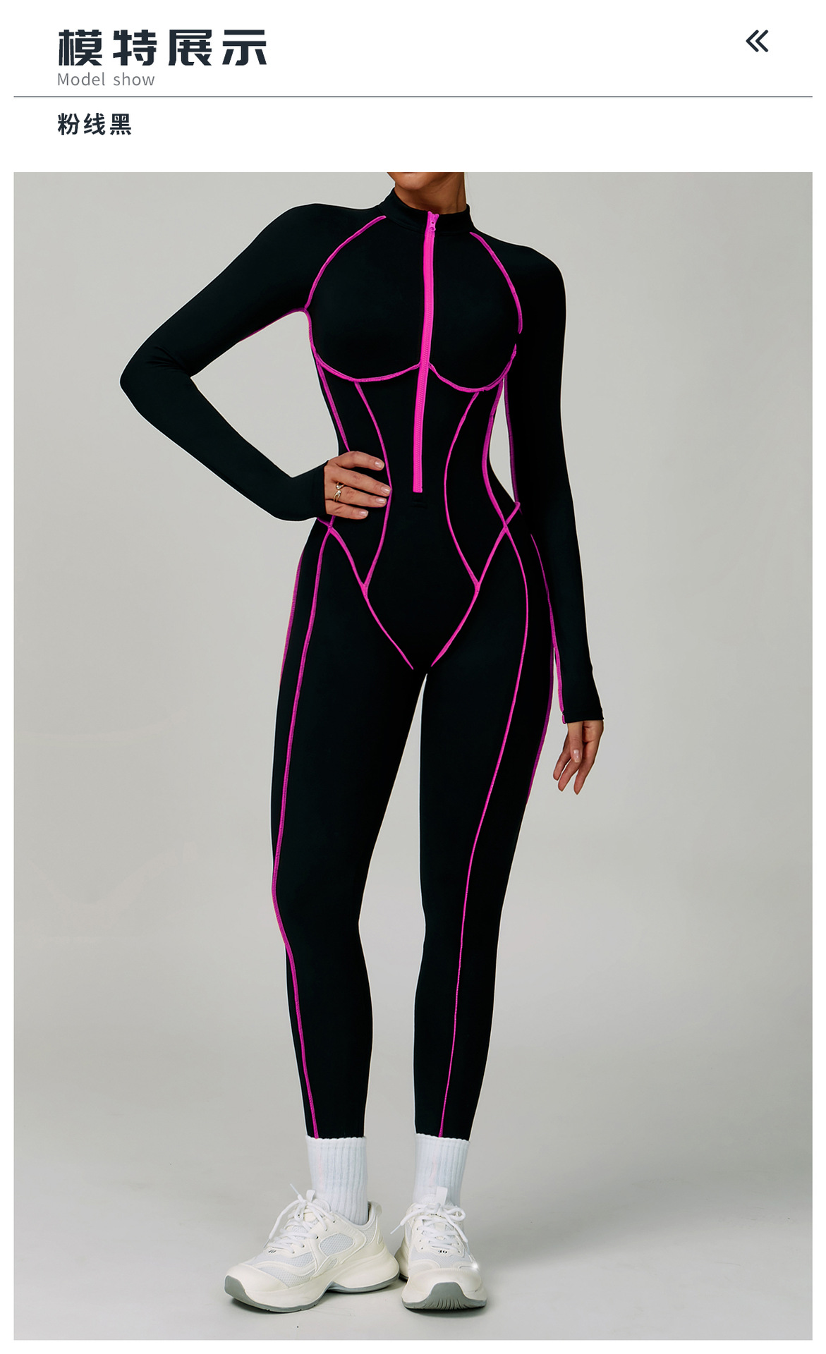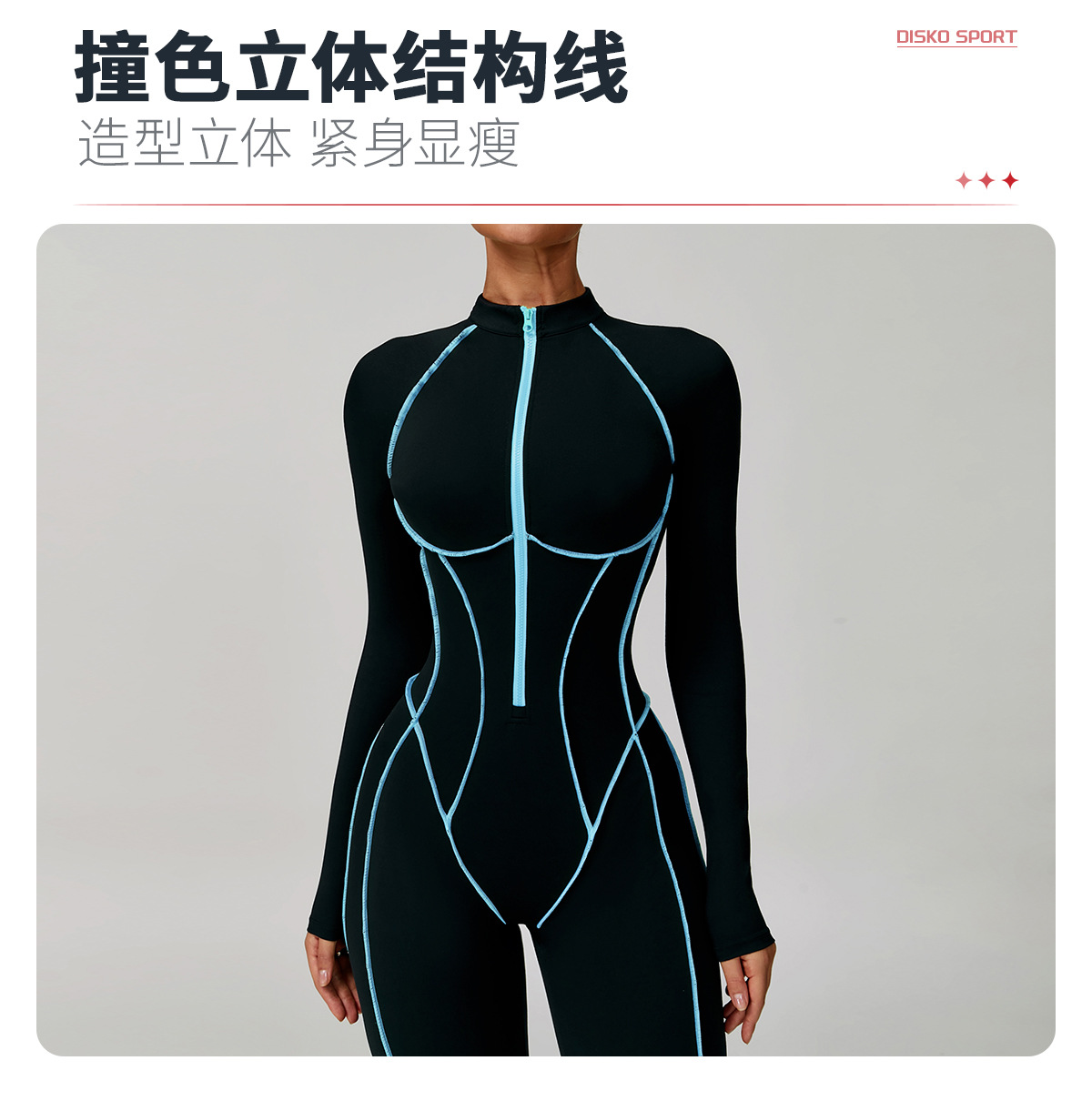 배색 컬러 배색 원피스 속건 요가복, 아름다운 등, 타이트한 피트니스복, 고강도 스포츠 런닝 점프수트 9317스토어 가기