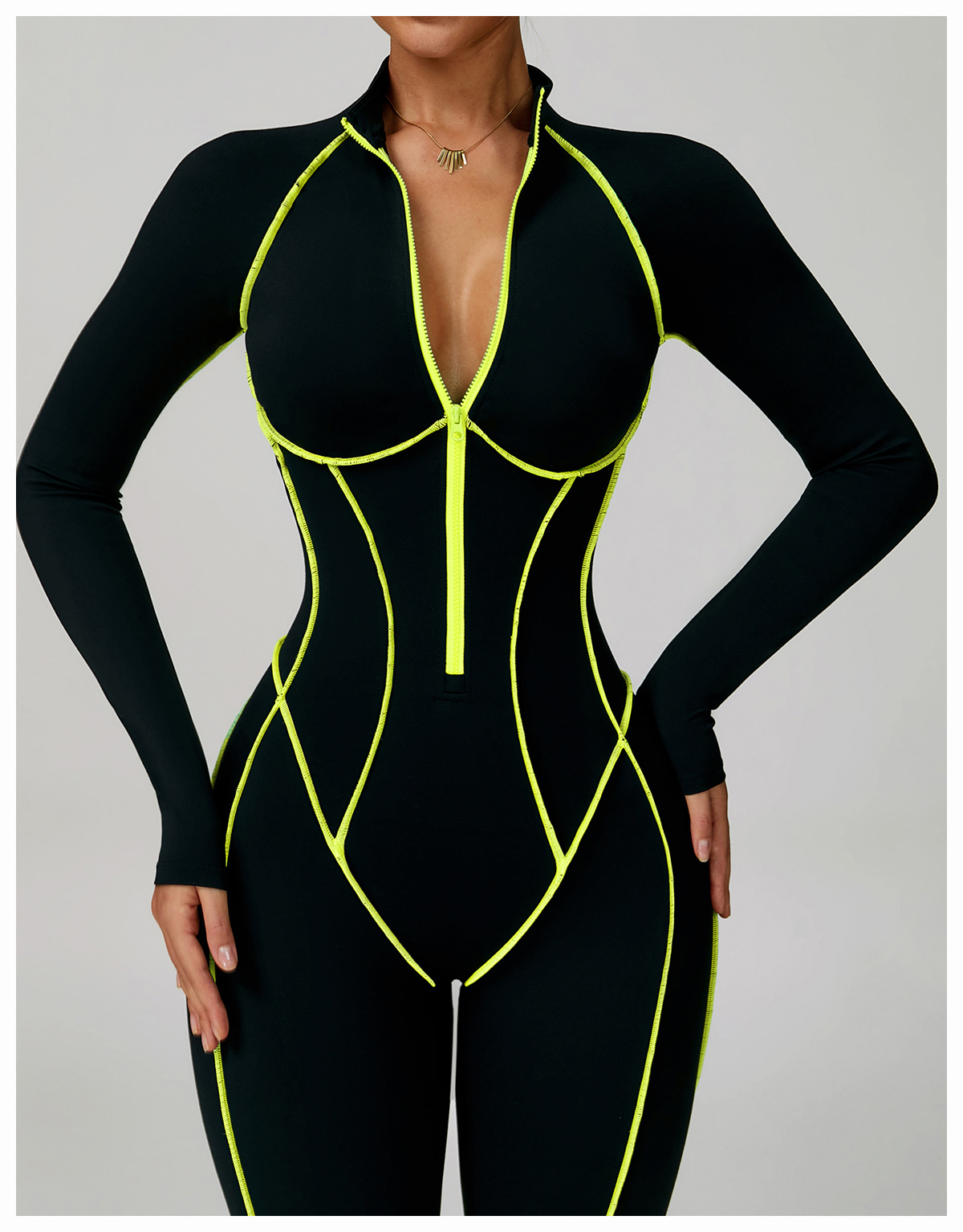 배색 컬러 배색 원피스 속건 요가복, 아름다운 등, 타이트한 피트니스복, 고강도 스포츠 런닝 점프수트 9317