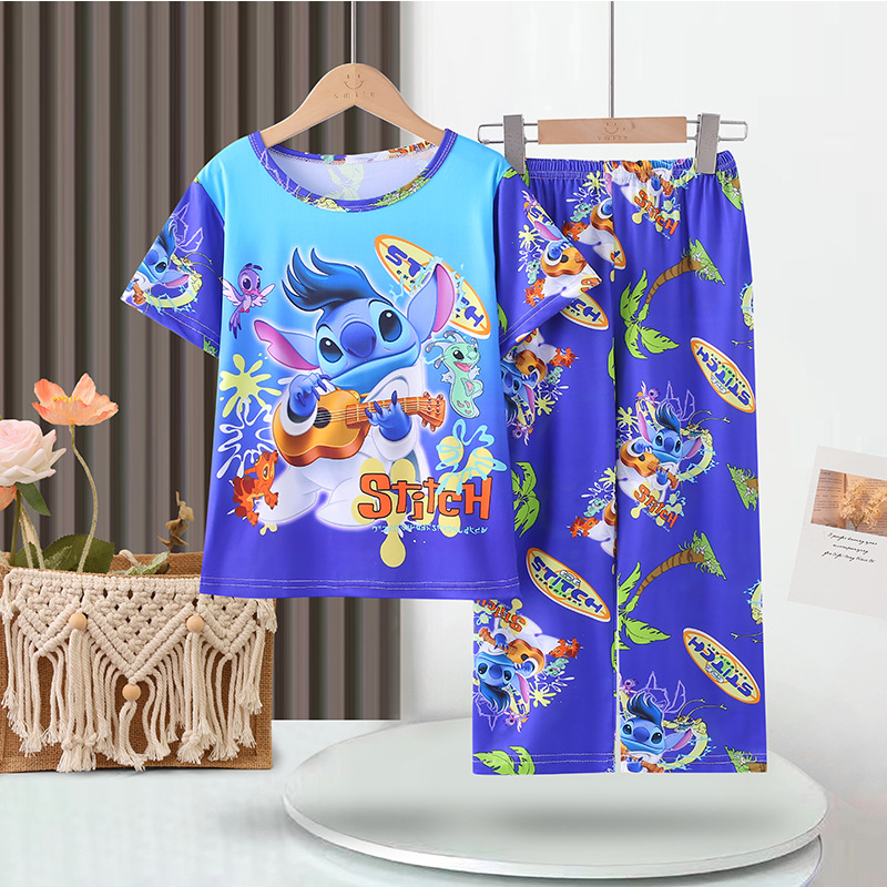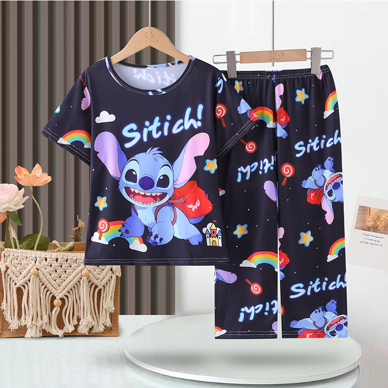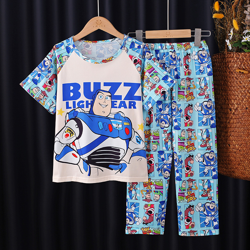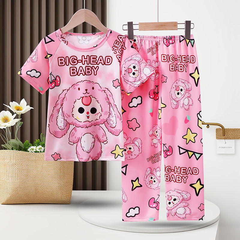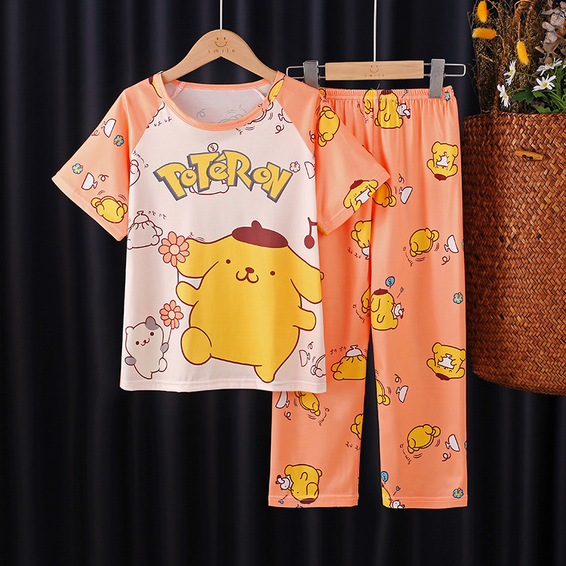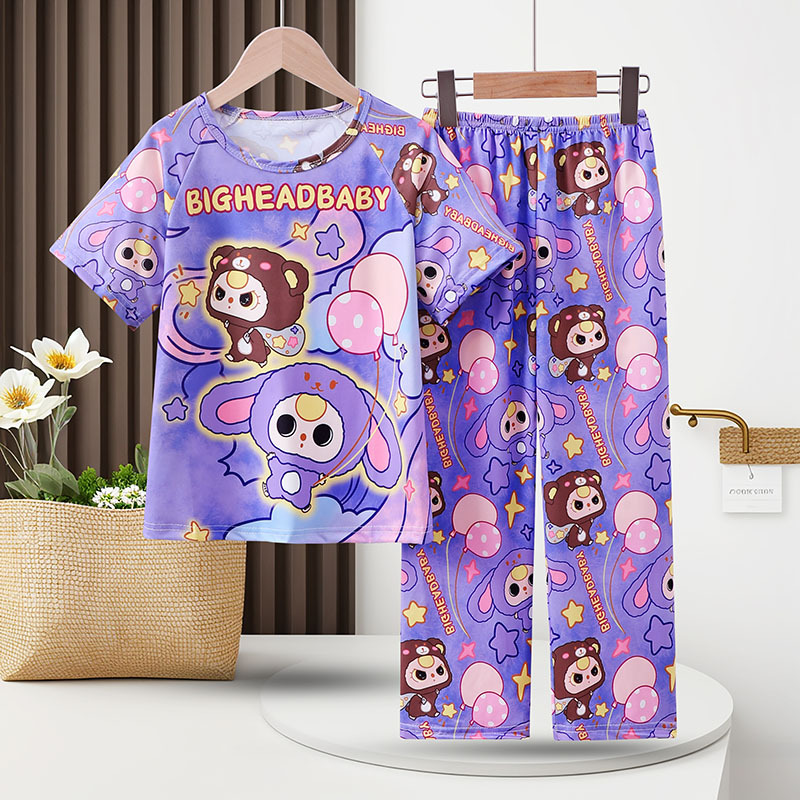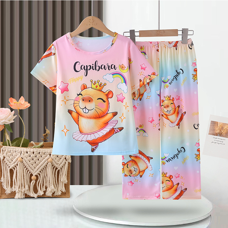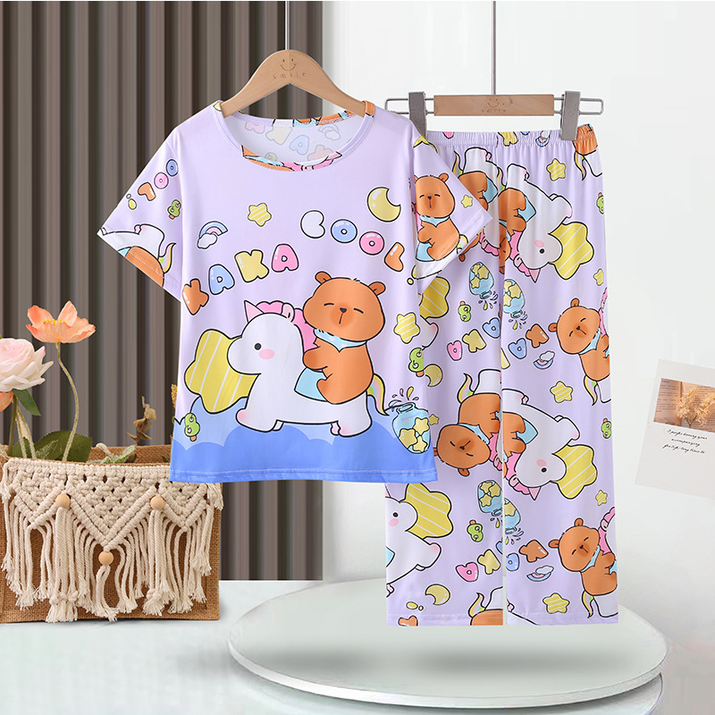 Kapibala Xia 어린이 잠옷 만화 소녀 반팔 바지 얇은 소년 캐주얼 만화 정장 가정 의류