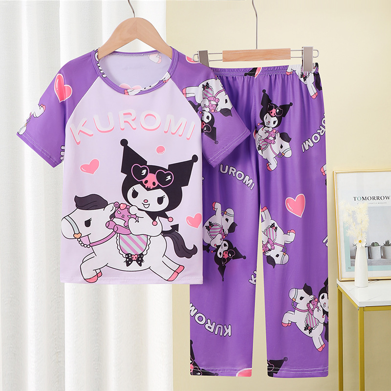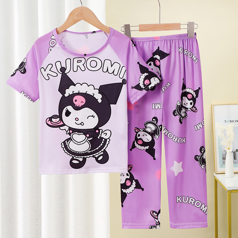 Kapibala Xia 어린이 잠옷 만화 소녀 반팔 바지 얇은 소년 캐주얼 만화 정장 가정 의류스토어 가기