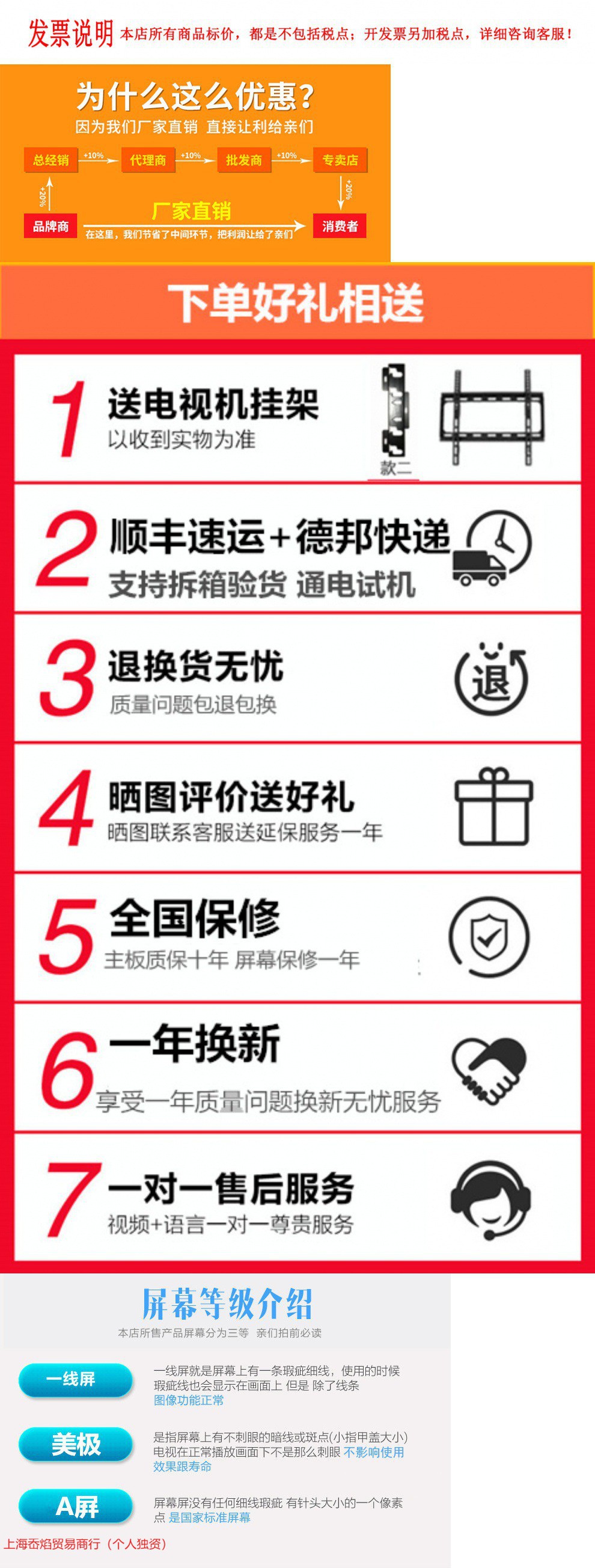 • 50inch A 스크린 HDTV 버전, 10년 보증 및 1년 교체