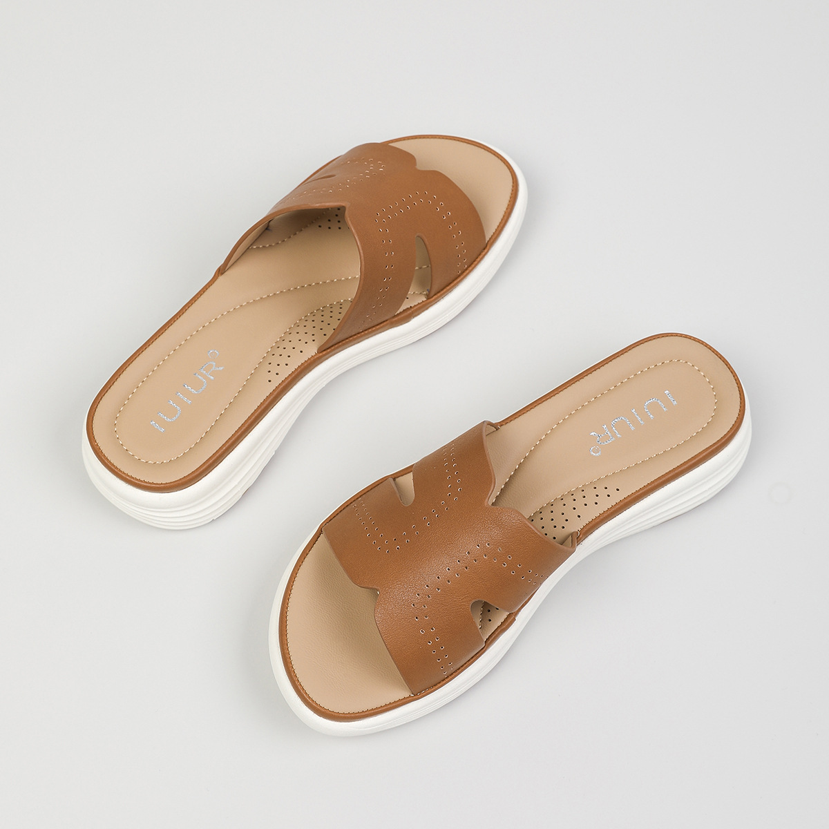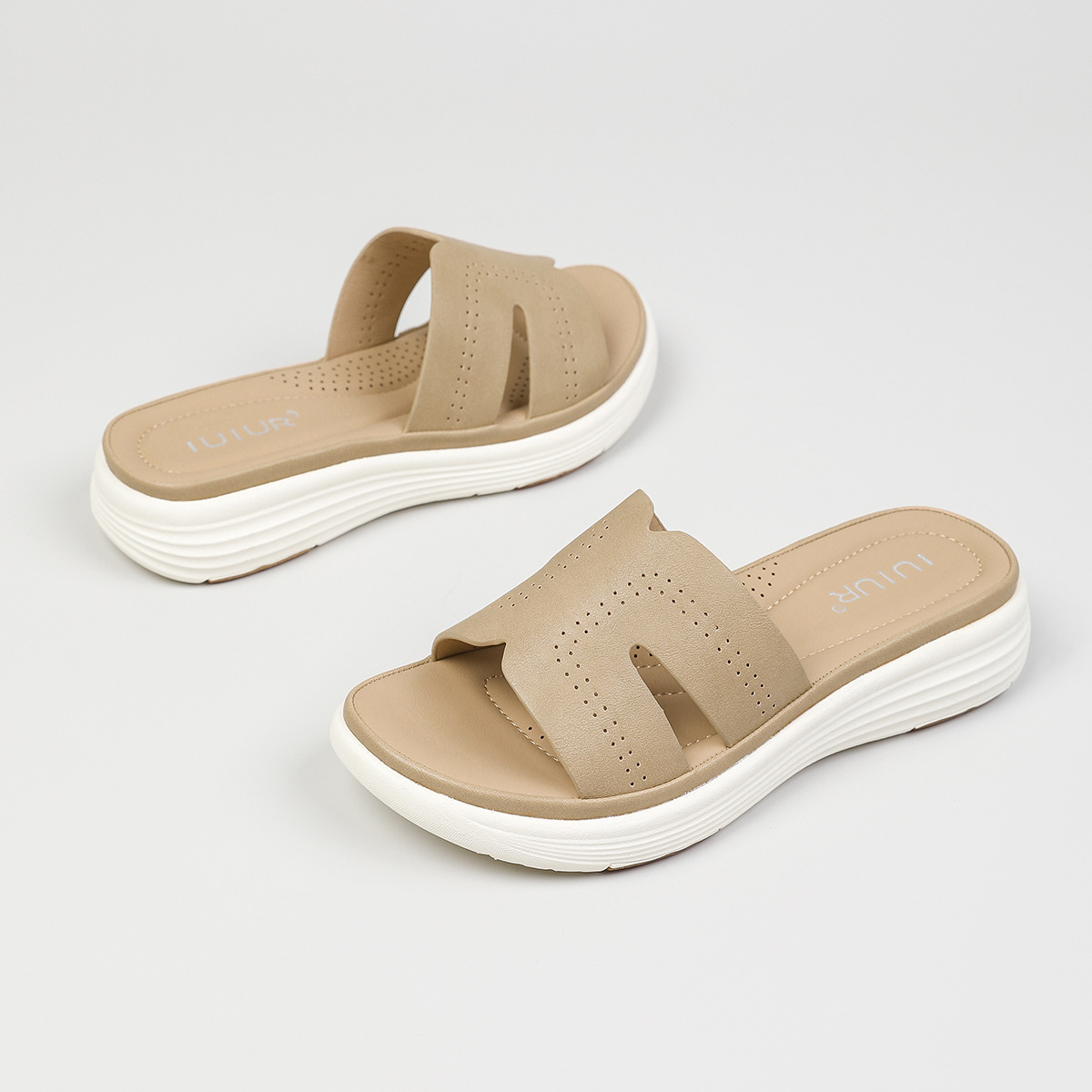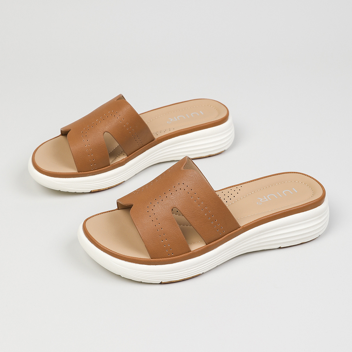 대외 무역 편안함 ~ 여성을위한 중공 통기성 두꺼운 밑창 샌들 여름 새 물고기 입 슬리퍼 중간 굽 3.5cm 여성 신발스토어 가기