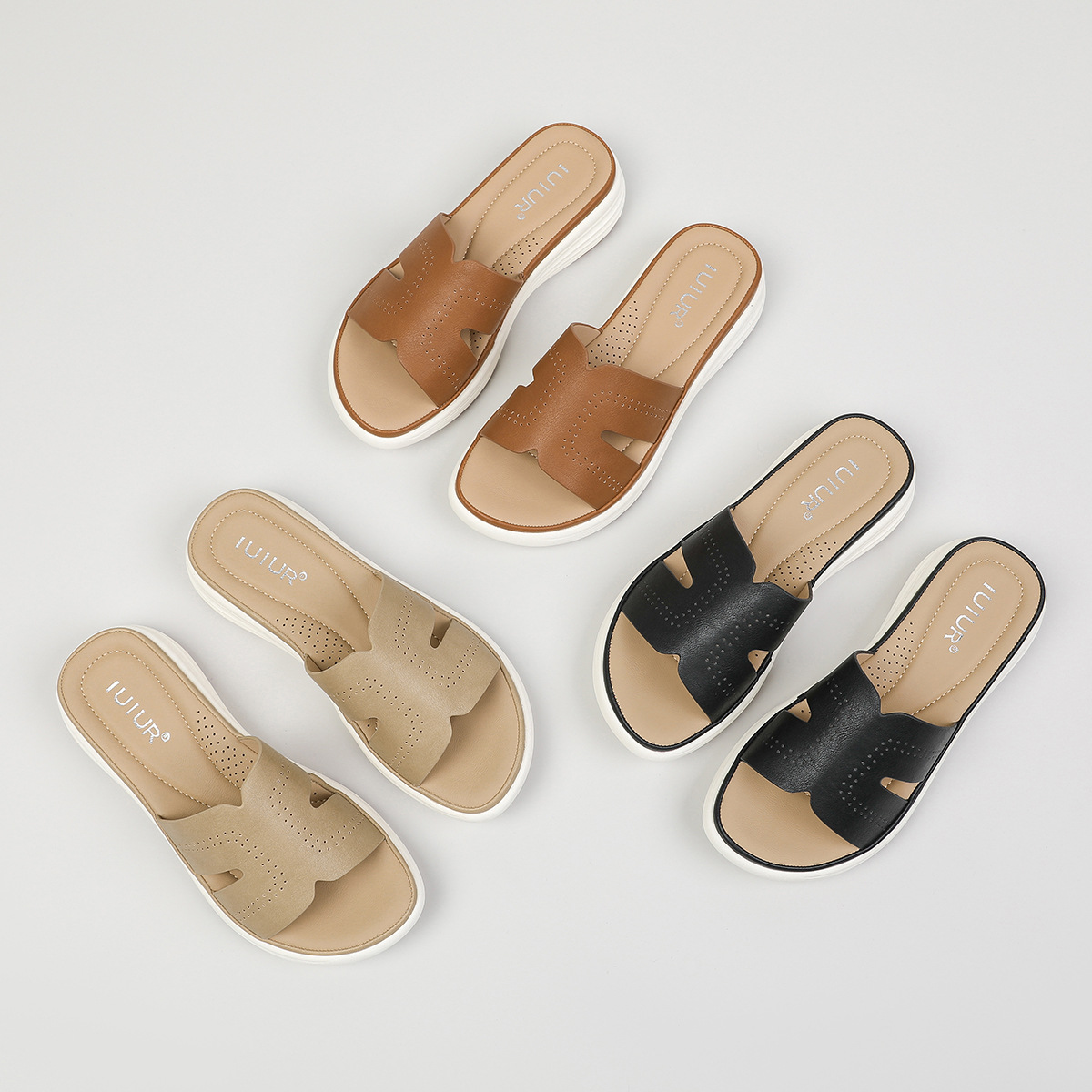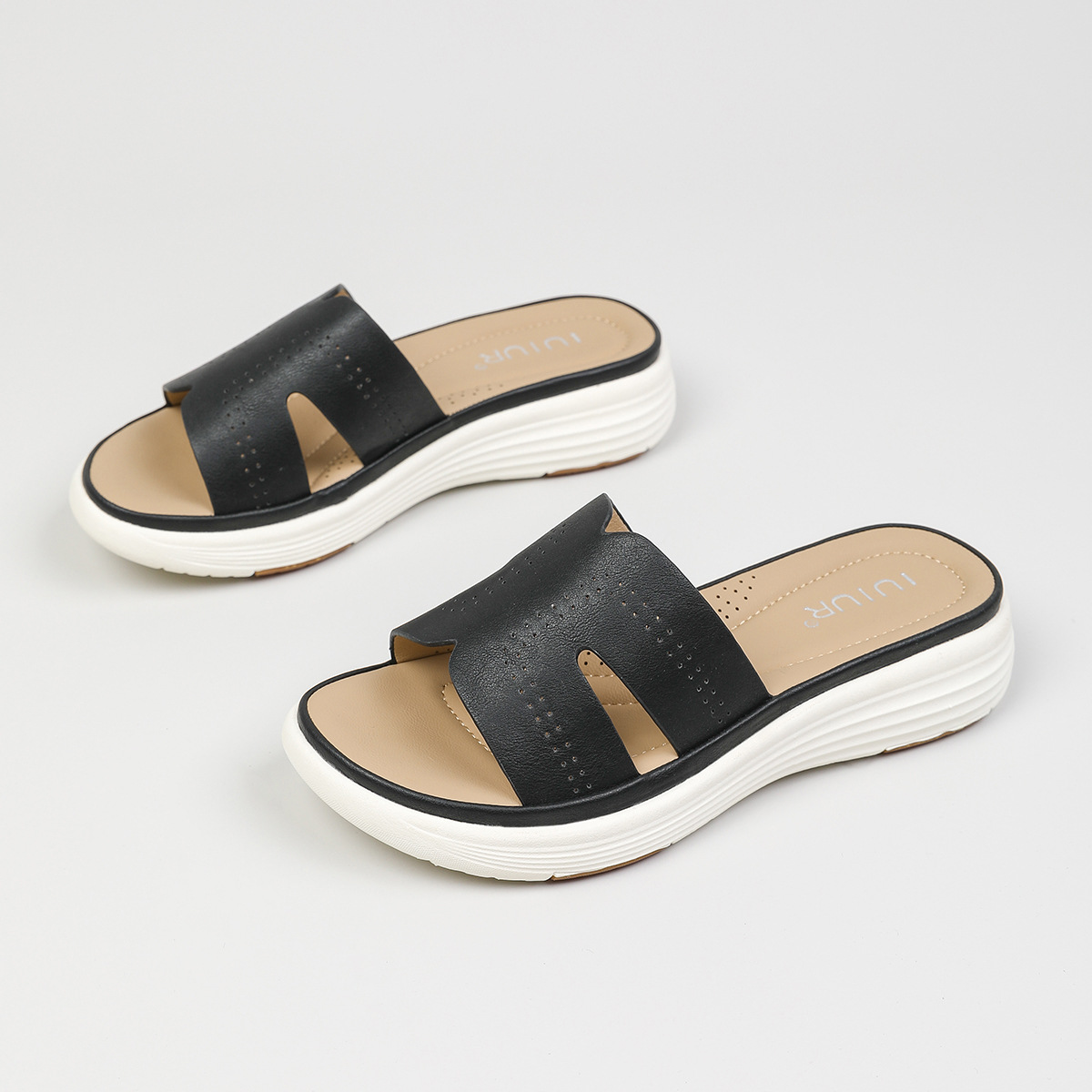 대외 무역 편안함 ~ 여성을위한 중공 통기성 두꺼운 밑창 샌들 여름 새 물고기 입 슬리퍼 중간 굽 3.5cm 여성 신발
