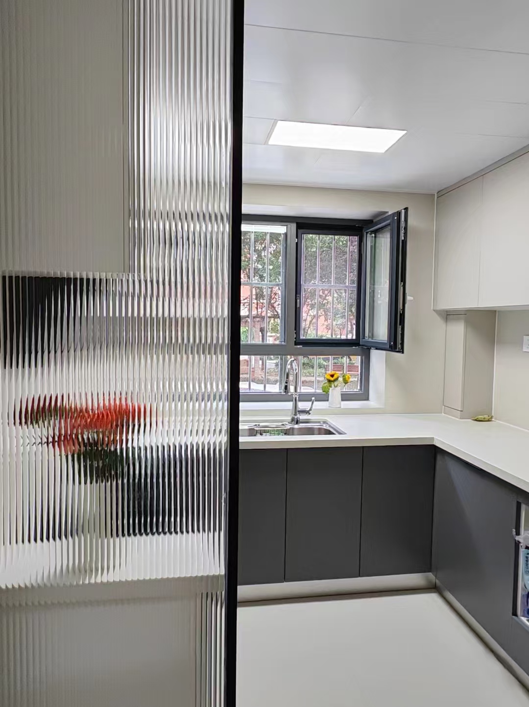 • 초백색 물 골판지 유리 + 스테인레스 스틸 프레임/사각형