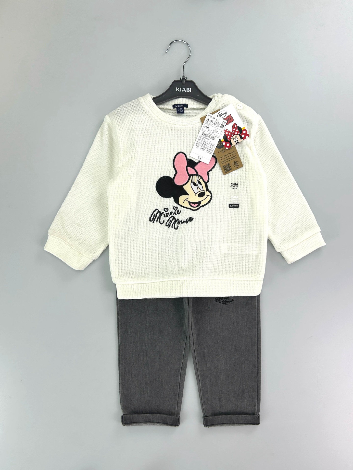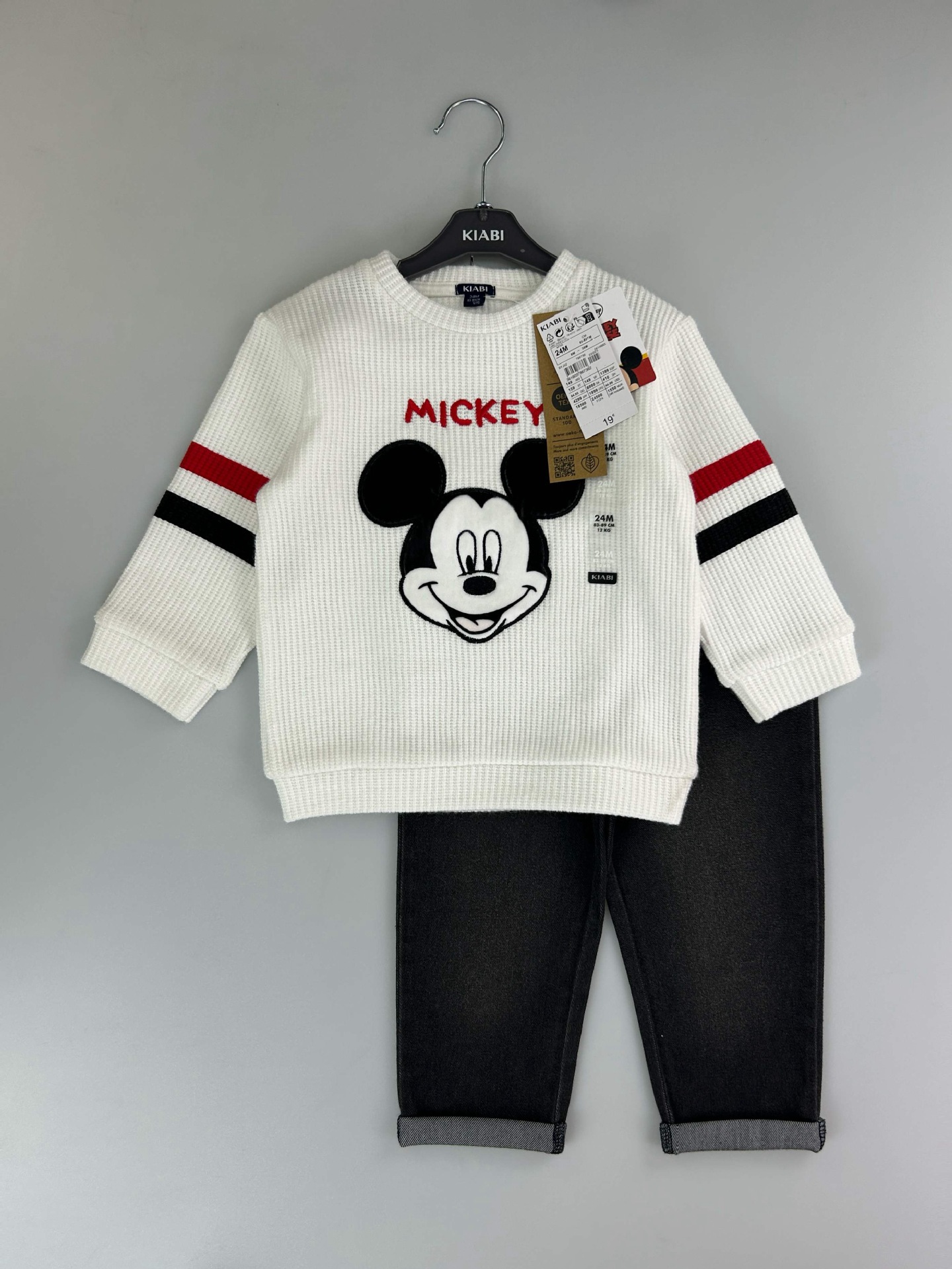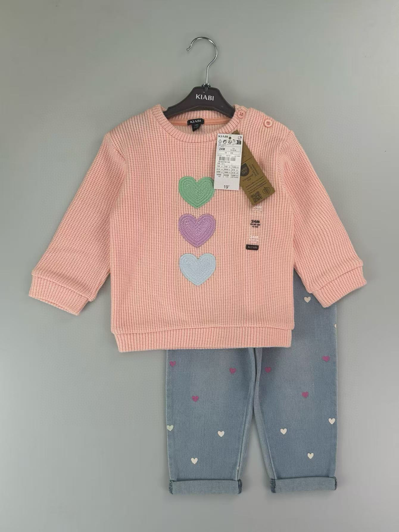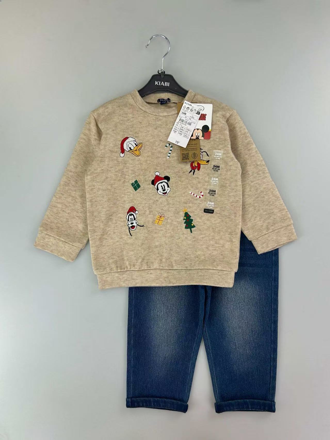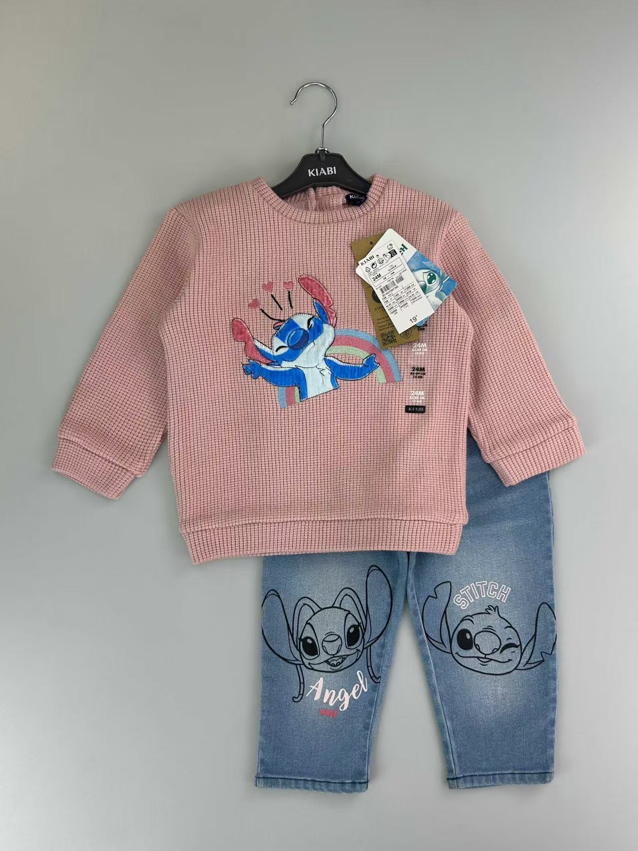 유럽과 미국의 국경 간 대외 무역 새로운 와플 양복 소년 소녀용 라운드 넥 긴팔 사선 칼라 스웨트 셔츠와 바지스토어 가기