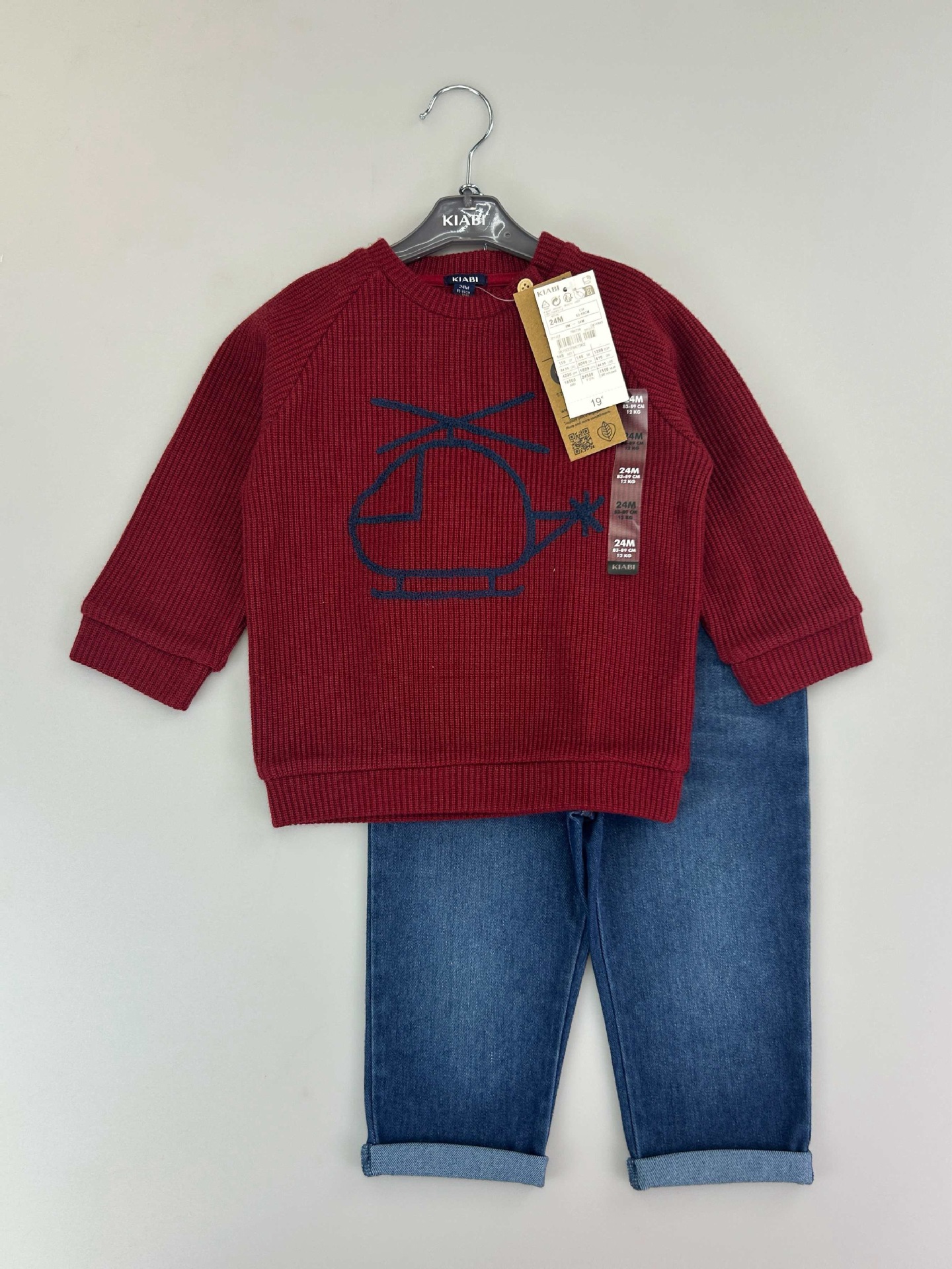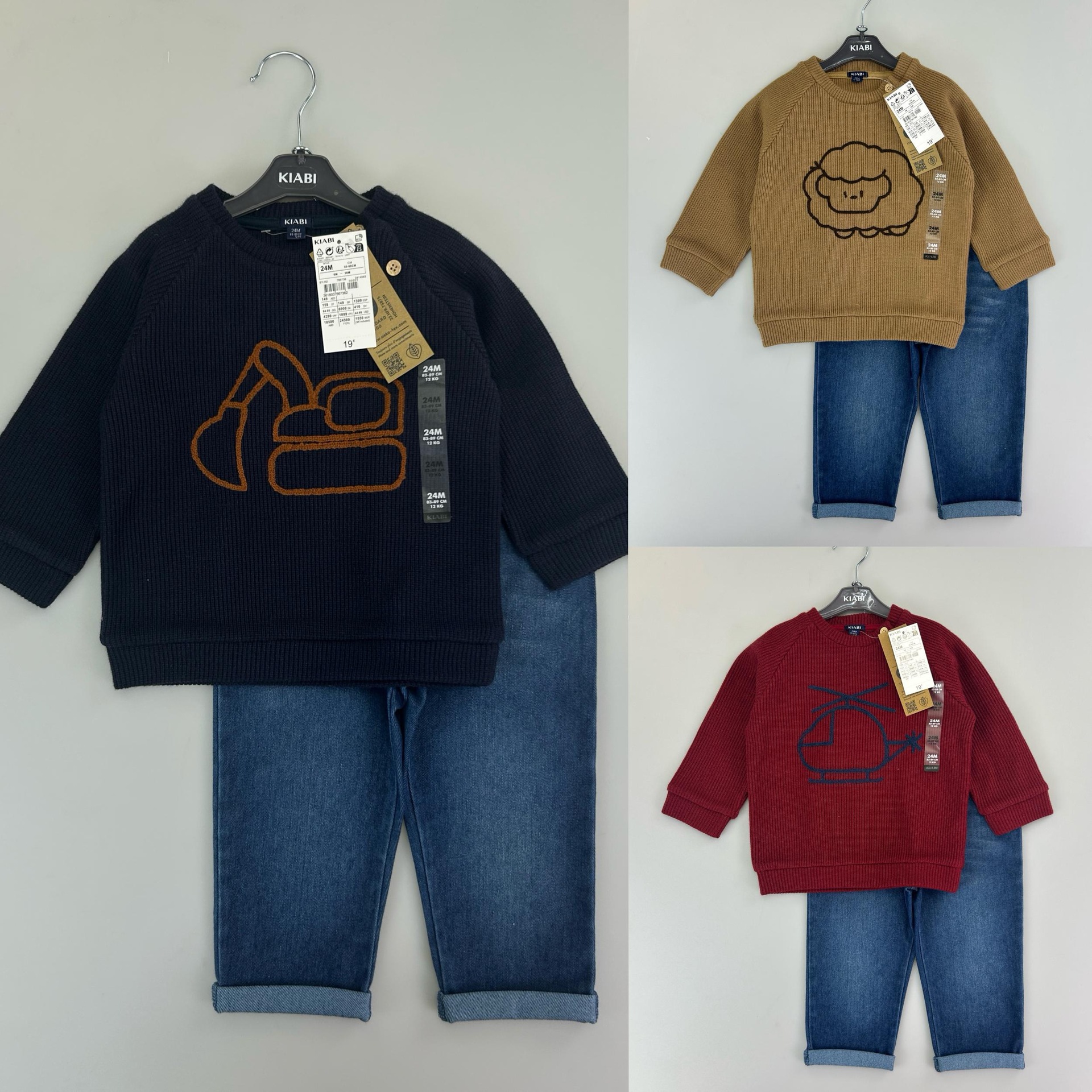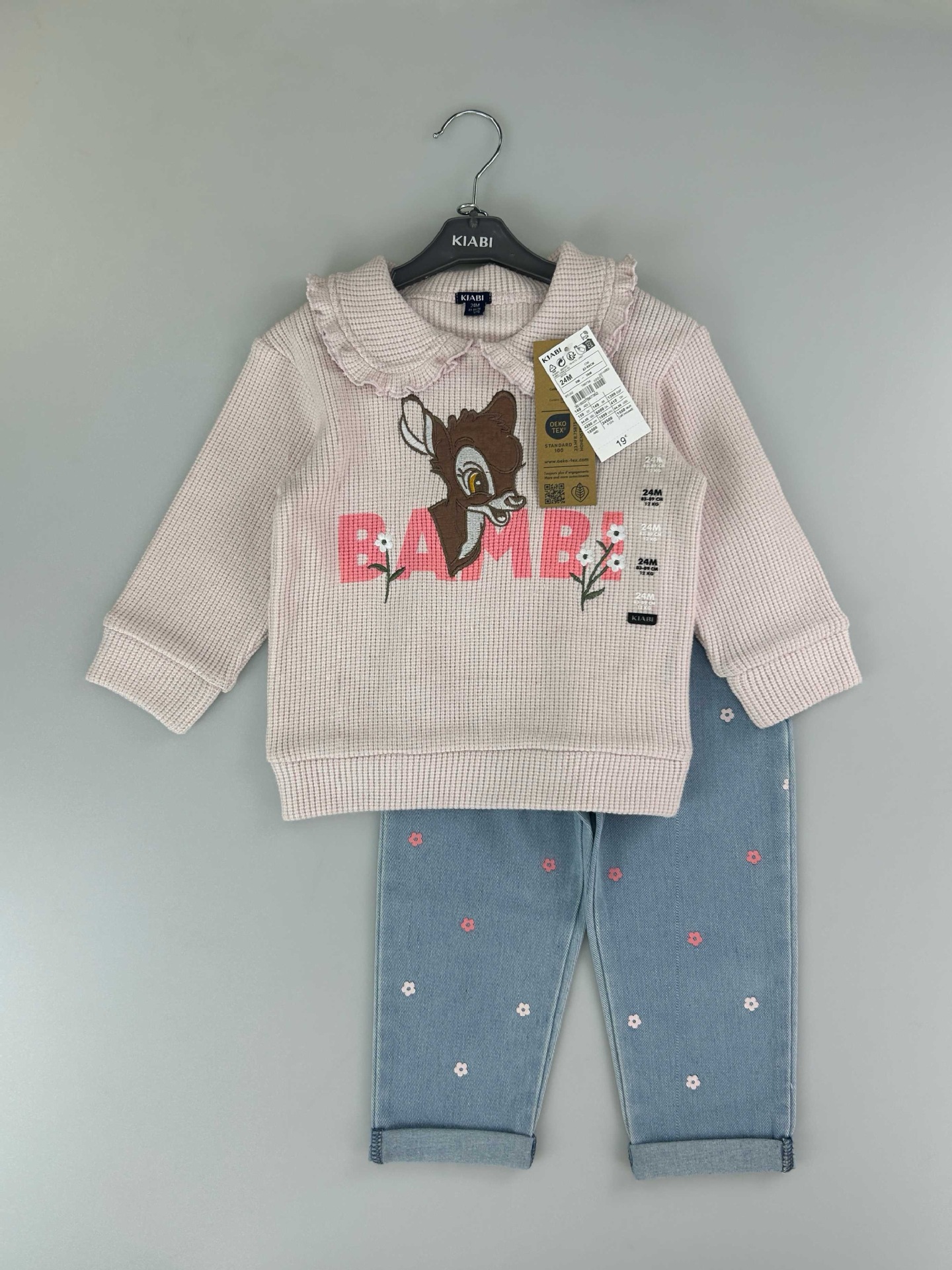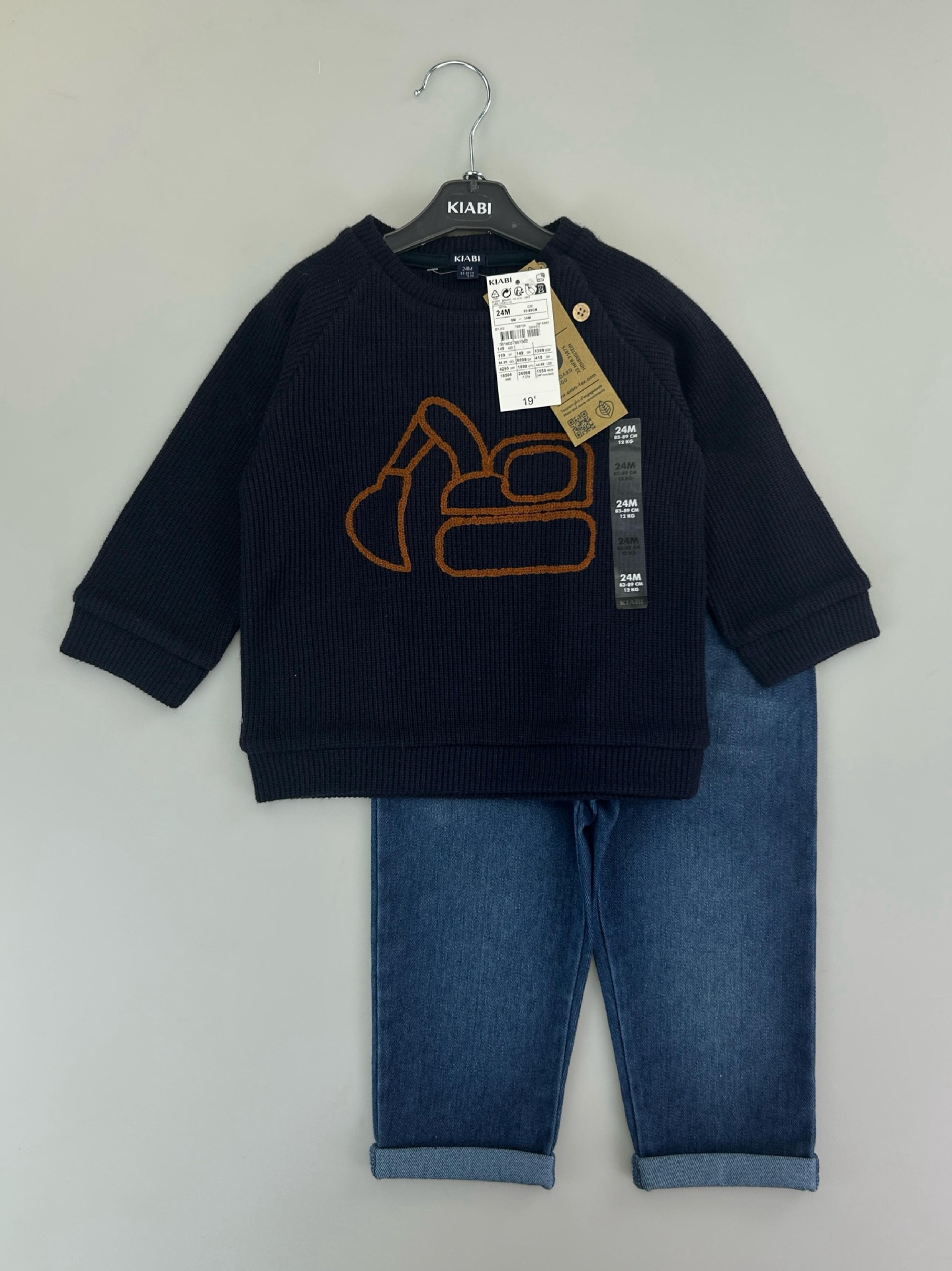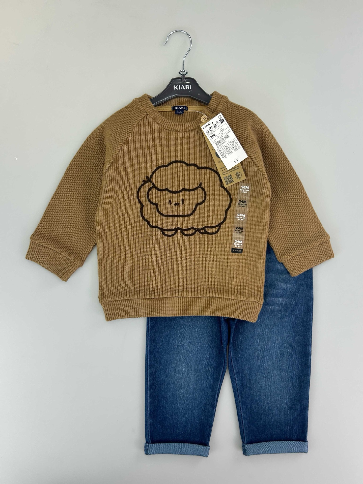 유럽과 미국의 국경 간 대외 무역 새로운 와플 양복 소년 소녀용 라운드 넥 긴팔 사선 칼라 스웨트 셔츠와 바지스토어 가기