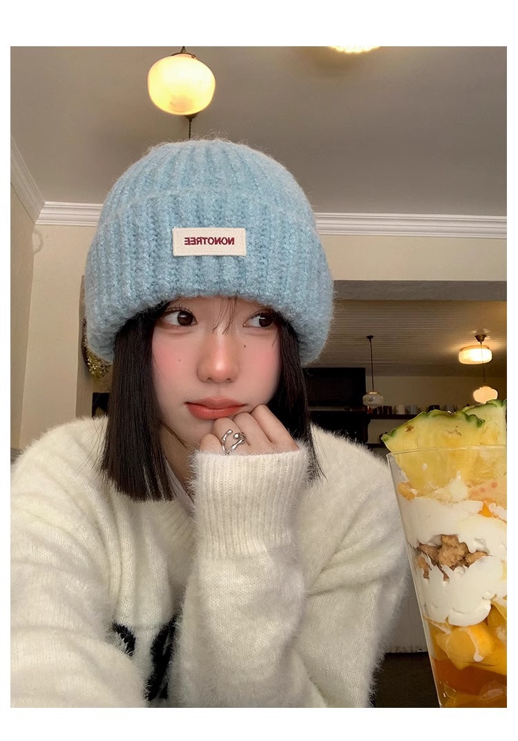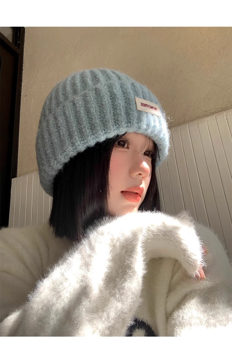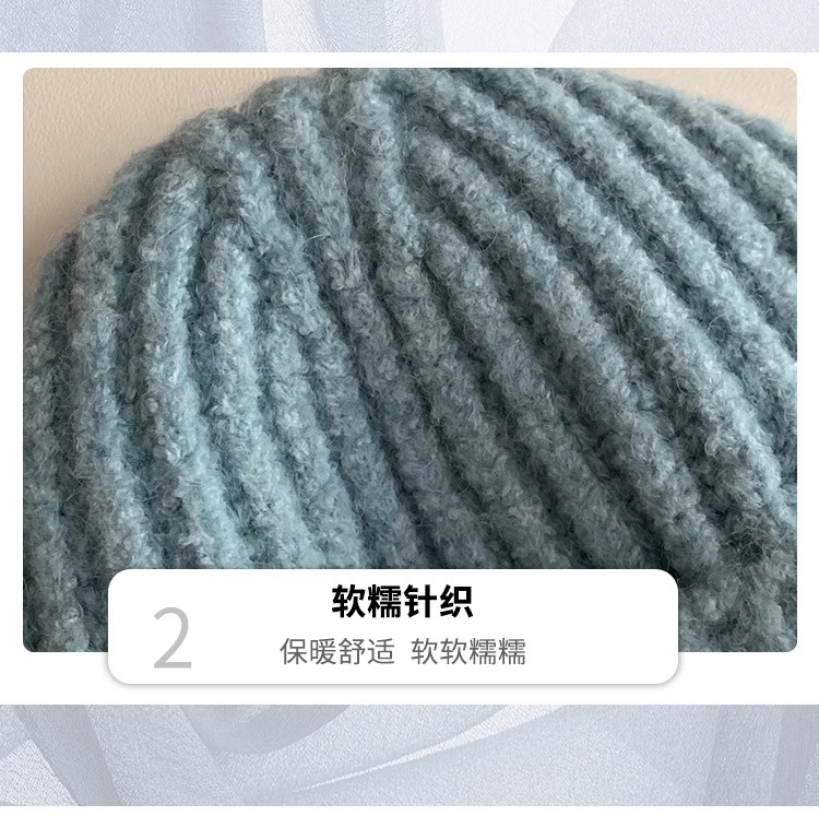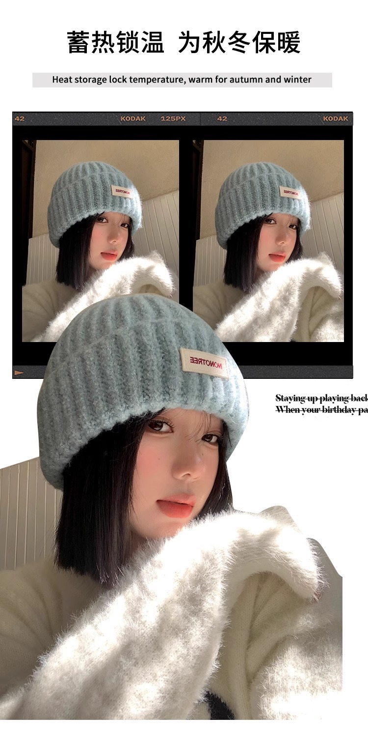 한국으로 수출되는 여성용 블루 니트 모직 모자, 가을 겨울 큰 머리 둘레, 얼굴이 보이는 다용도 모자, 작은 귀 보호 모자스토어 가기