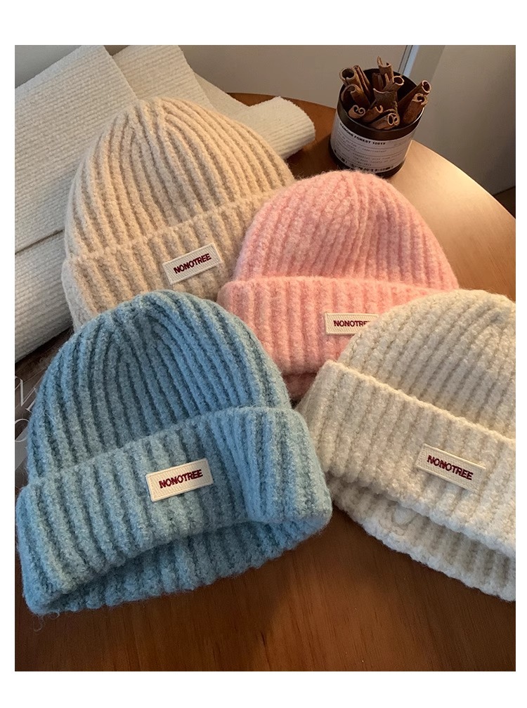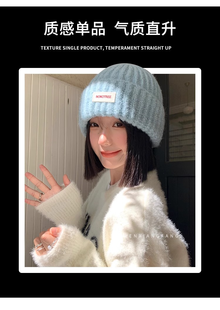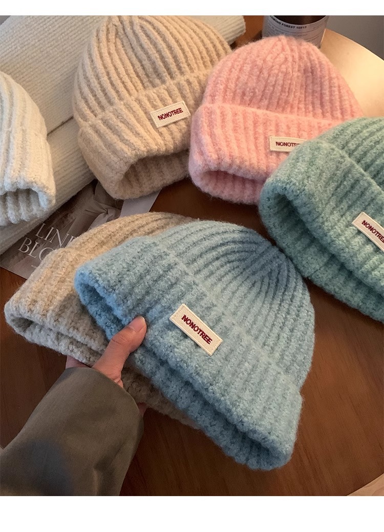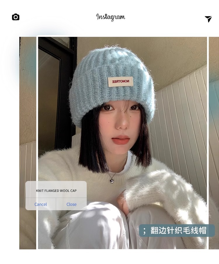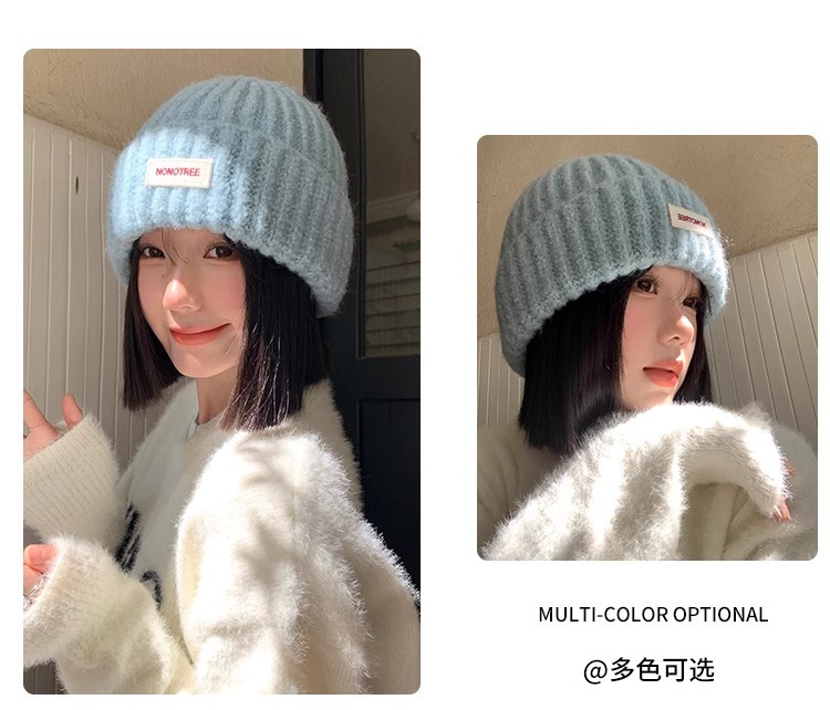 한국으로 수출되는 여성용 블루 니트 모직 모자, 가을 겨울 큰 머리 둘레, 얼굴이 보이는 다용도 모자, 작은 귀 보호 모자스토어 가기