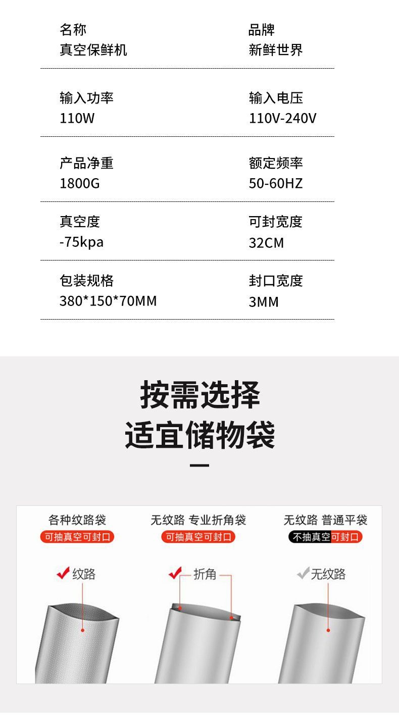 신선한 세계 진공 포장기 가정용 상업용 진공 밀봉 보존 기계 소형 자동 플라스틱 밀봉 기계