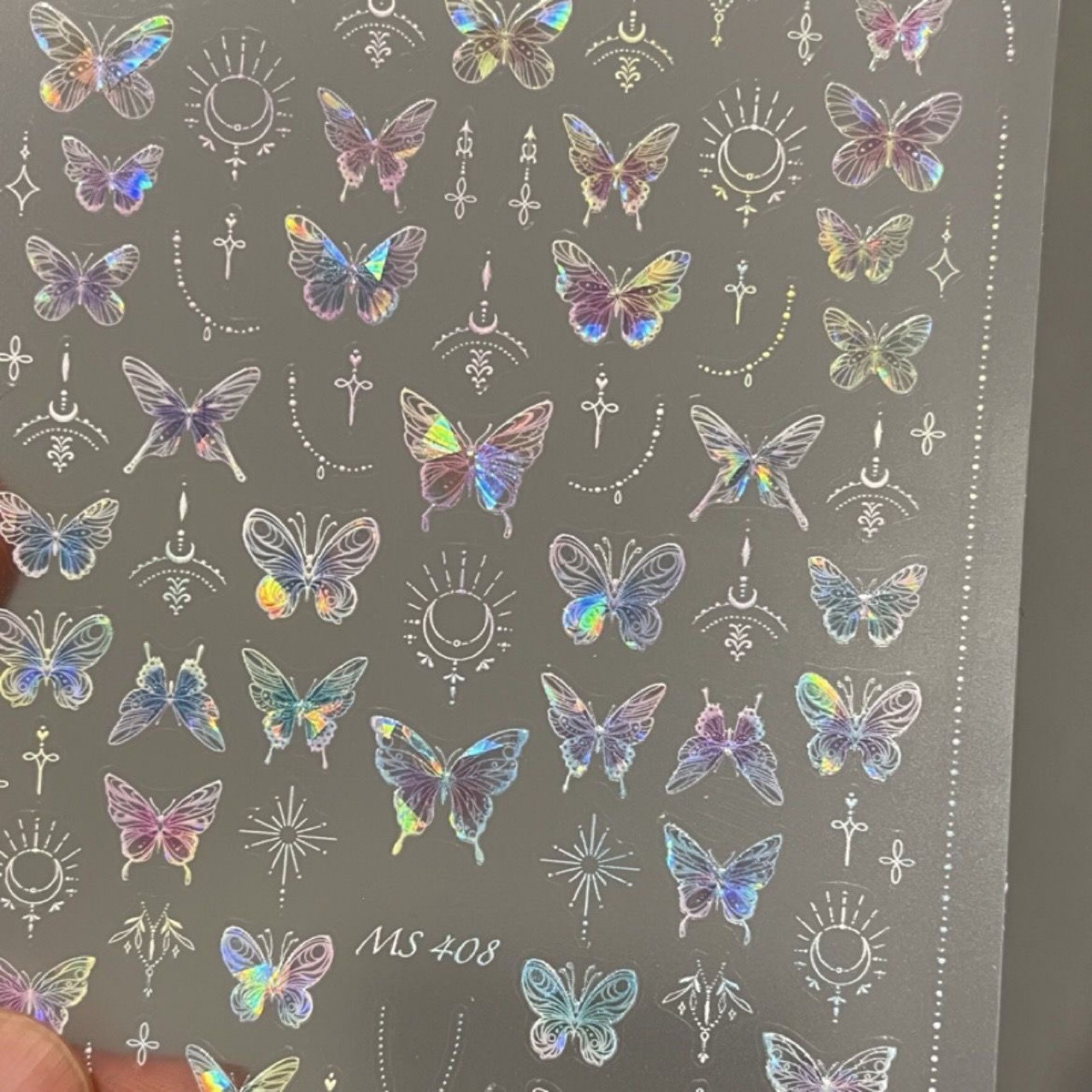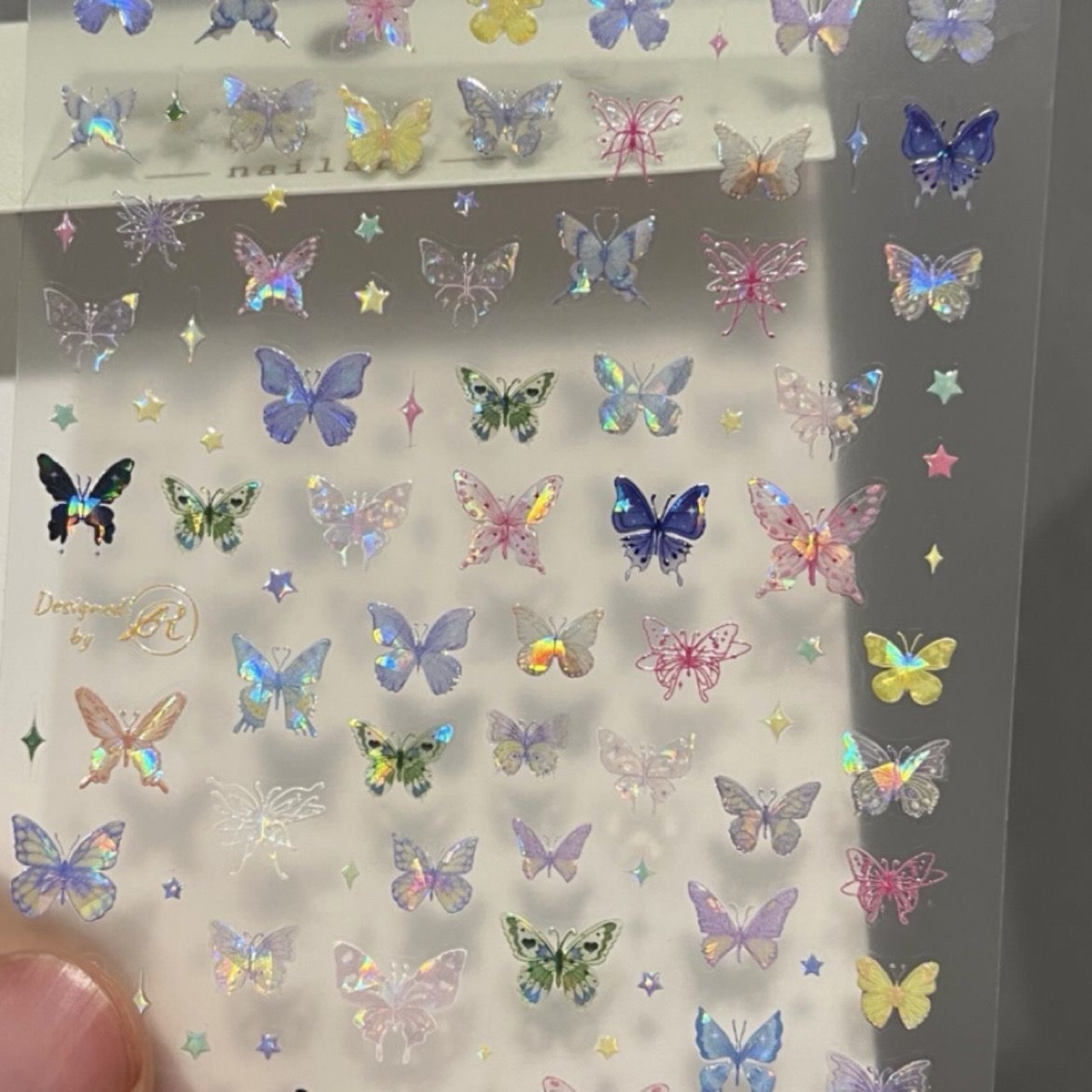 Ins 나비 오로라 네일 아트 스티커 꿈꾸는 다채로운 레이저 작은 요정 나비 크리스탈 다이아몬드 스티커 학생 장식 스티커