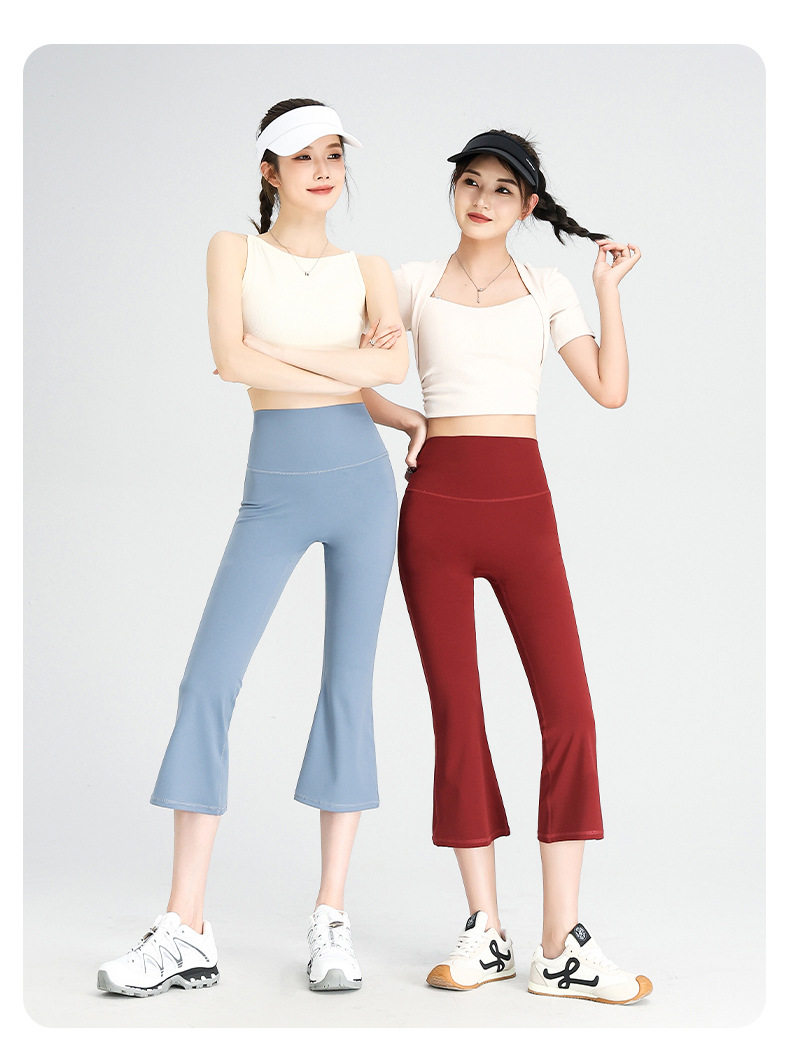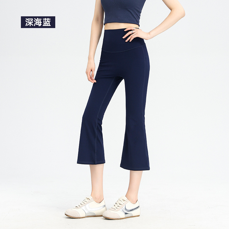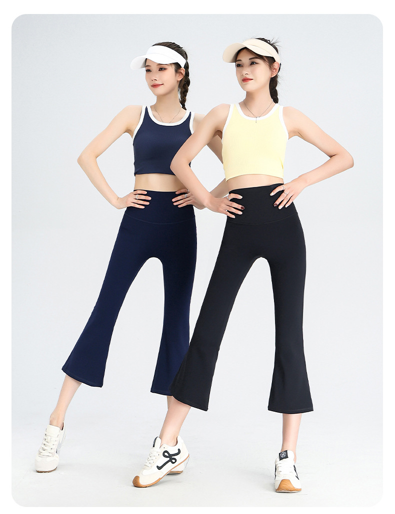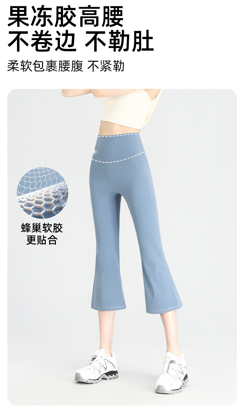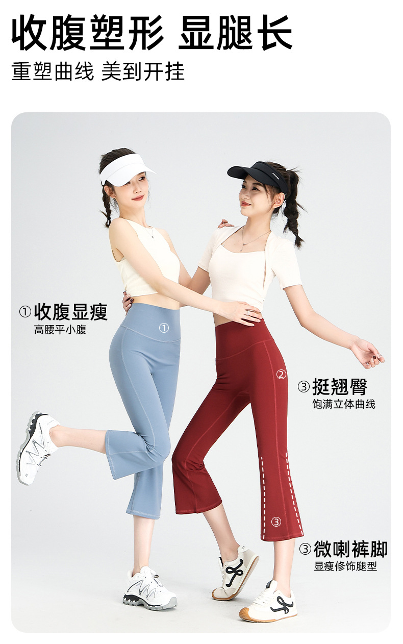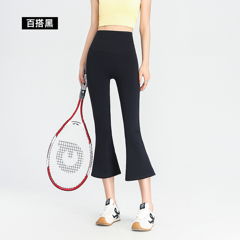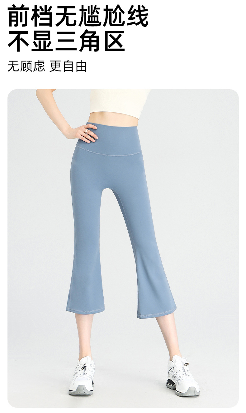 여성용 레깅스, 얇은 여름 하이웨이스트 7부 담배팬츠, 작은 분들을 위한 요가 나팔팬츠, 슬리밍 스포츠 부츠컷 팬츠스토어 가기