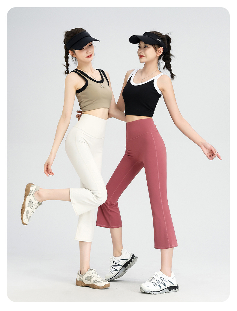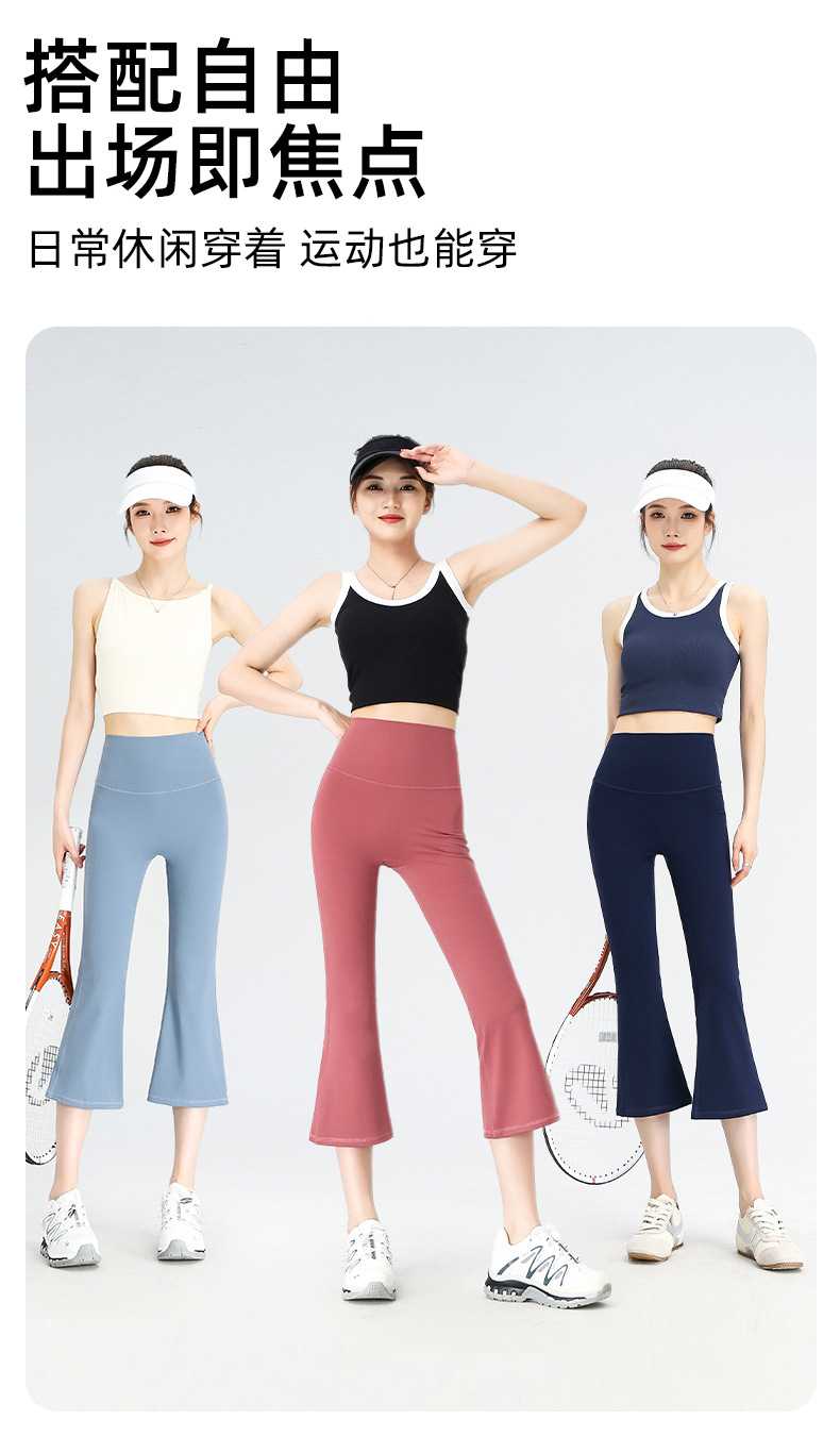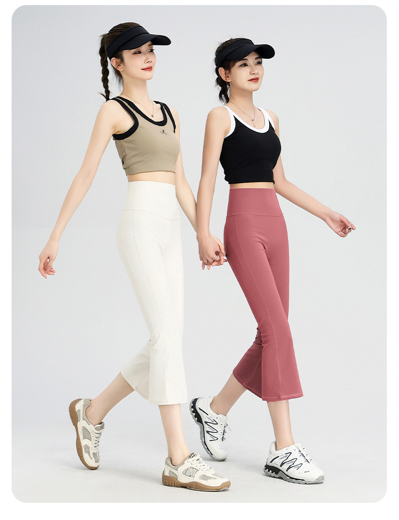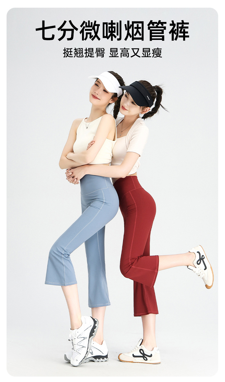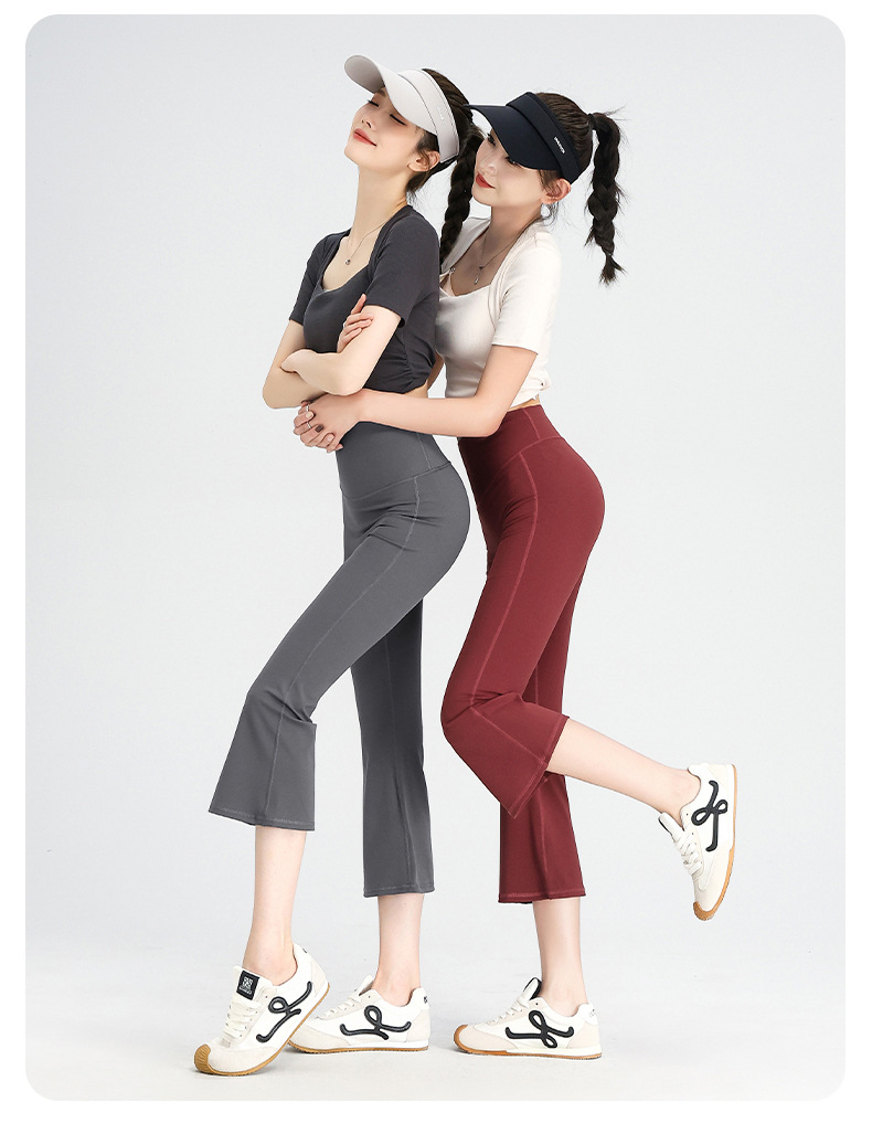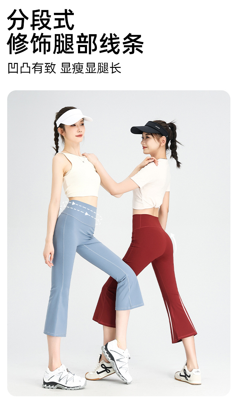여성용 레깅스, 얇은 여름 하이웨이스트 7부 담배팬츠, 작은 분들을 위한 요가 나팔팬츠, 슬리밍 스포츠 부츠컷 팬츠스토어 가기