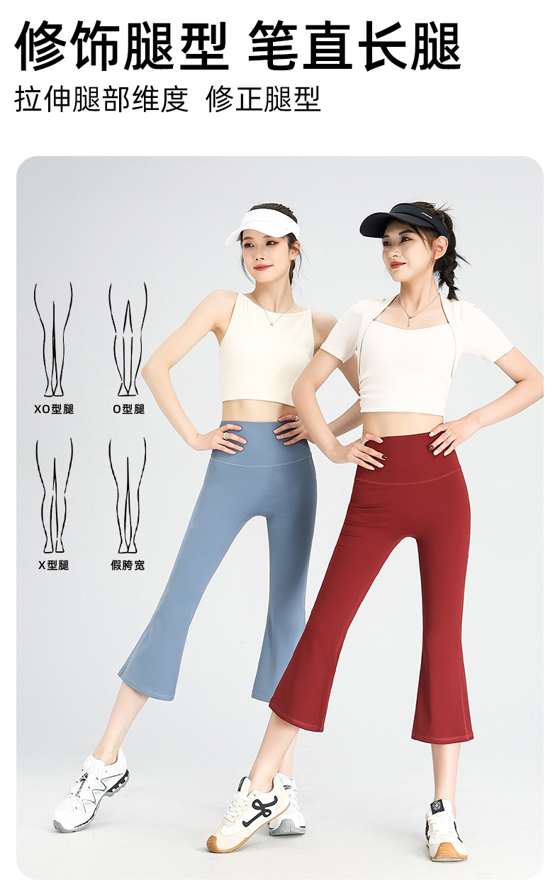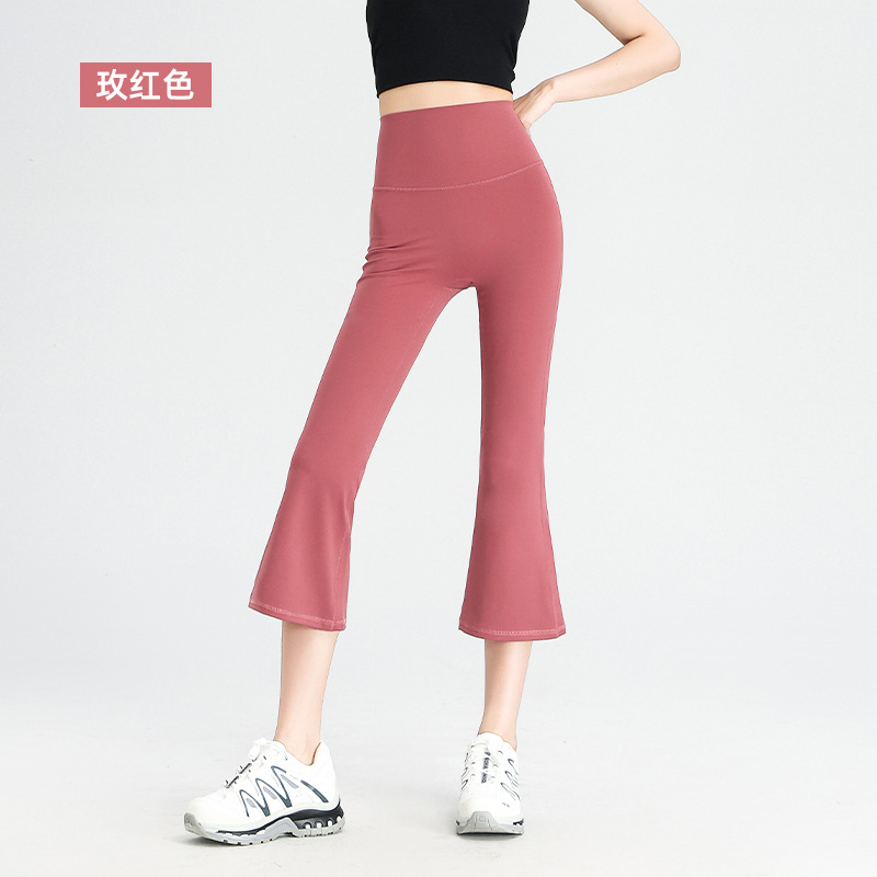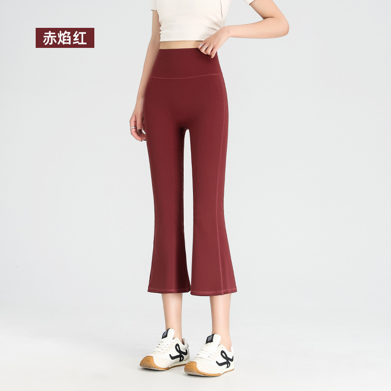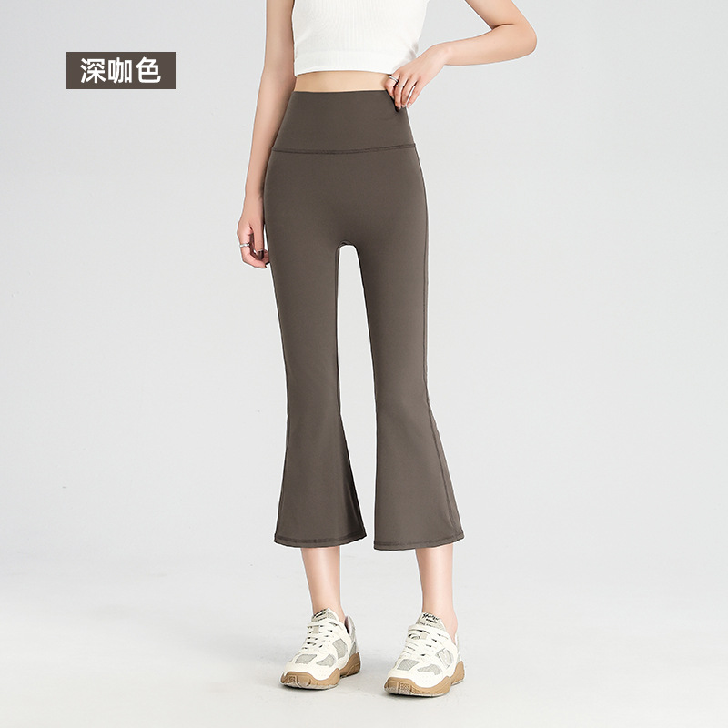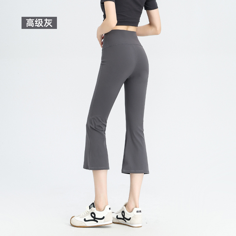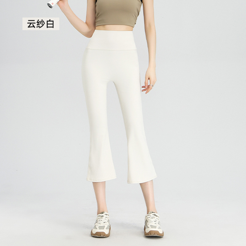 여성용 레깅스, 얇은 여름 하이웨이스트 7부 담배팬츠, 작은 분들을 위한 요가 나팔팬츠, 슬리밍 스포츠 부츠컷 팬츠