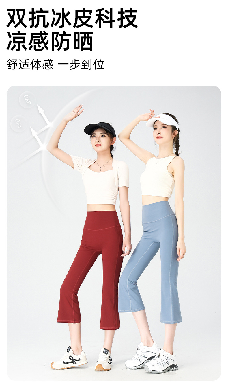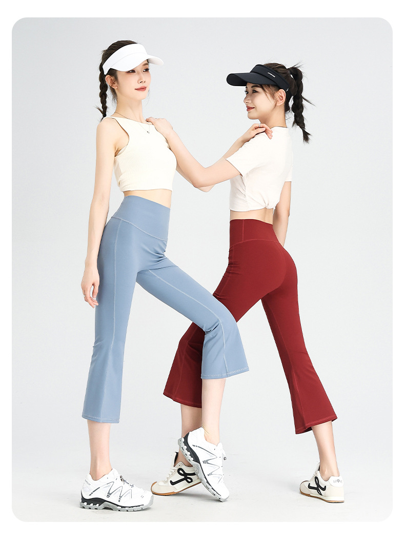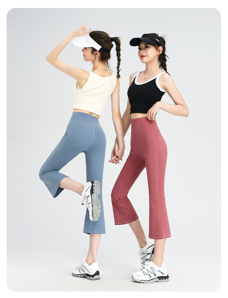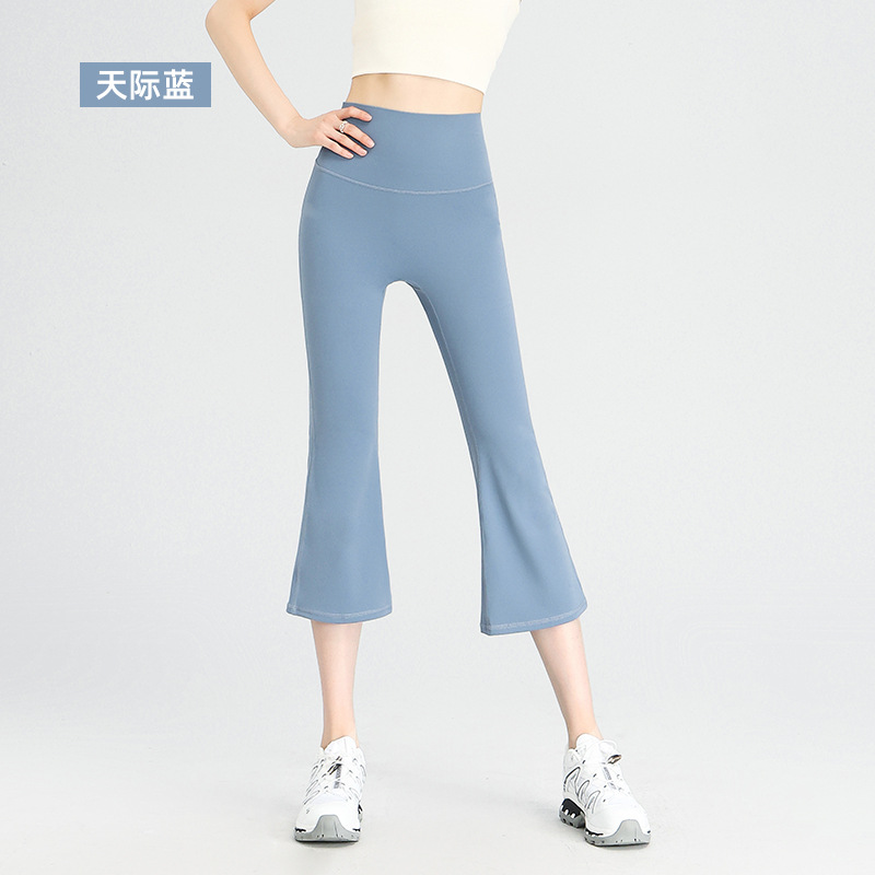 여성용 레깅스, 얇은 여름 하이웨이스트 7부 담배팬츠, 작은 분들을 위한 요가 나팔팬츠, 슬리밍 스포츠 부츠컷 팬츠