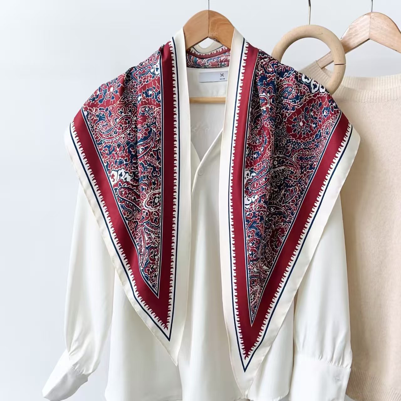 식물과 꽃무늬 삼각 스카프, 새로운 중국 스타일의 패셔너블한 여행복, 얇은 스카프 트렌드