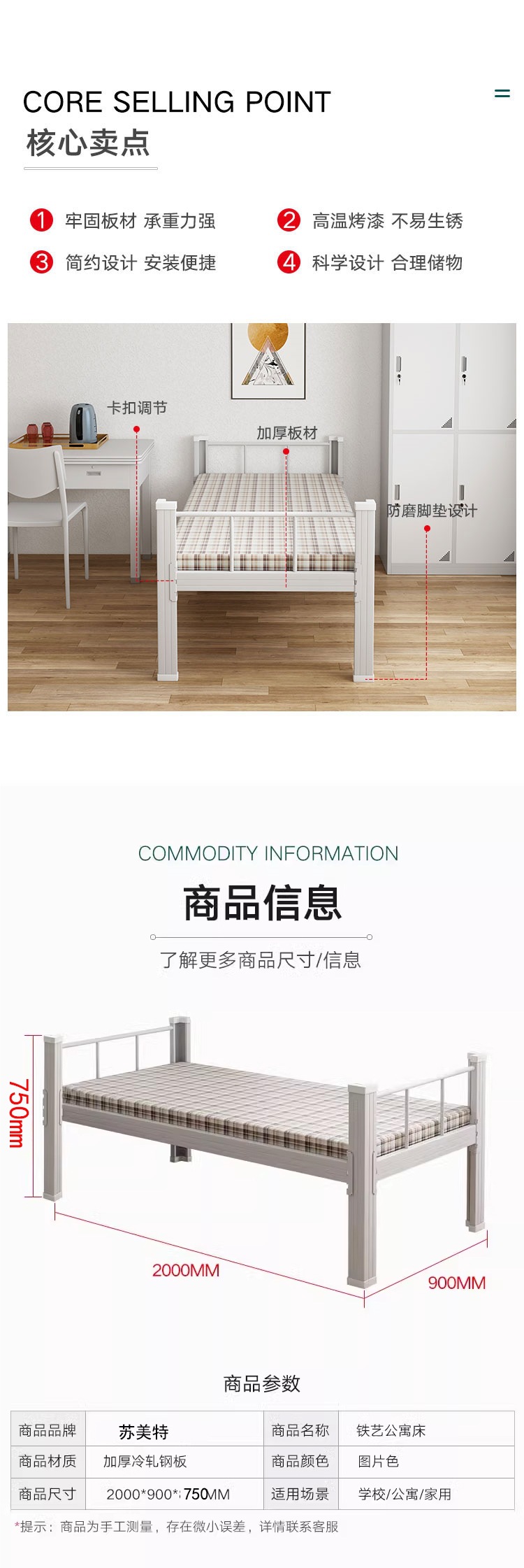 단층 철제 침대 싱글 침대 학생 직원 기숙사 철제 프레임 침대 더블 침대 1.35m 철제 이층 침대