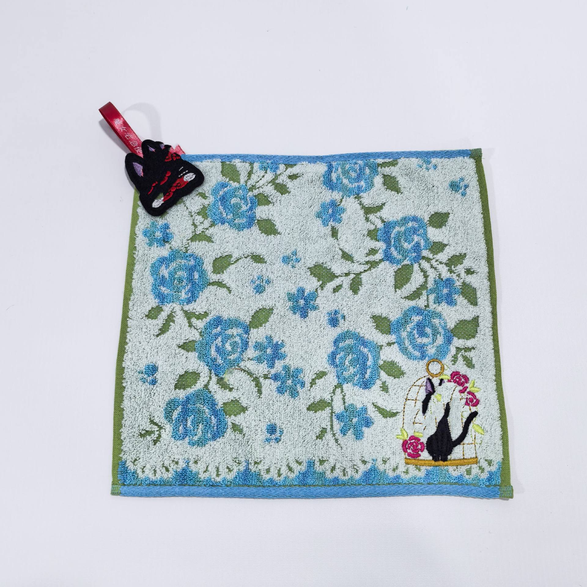 外贸 出口日本无念提花割绒刺绣小方巾