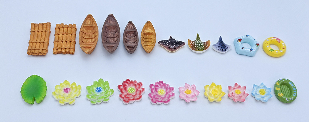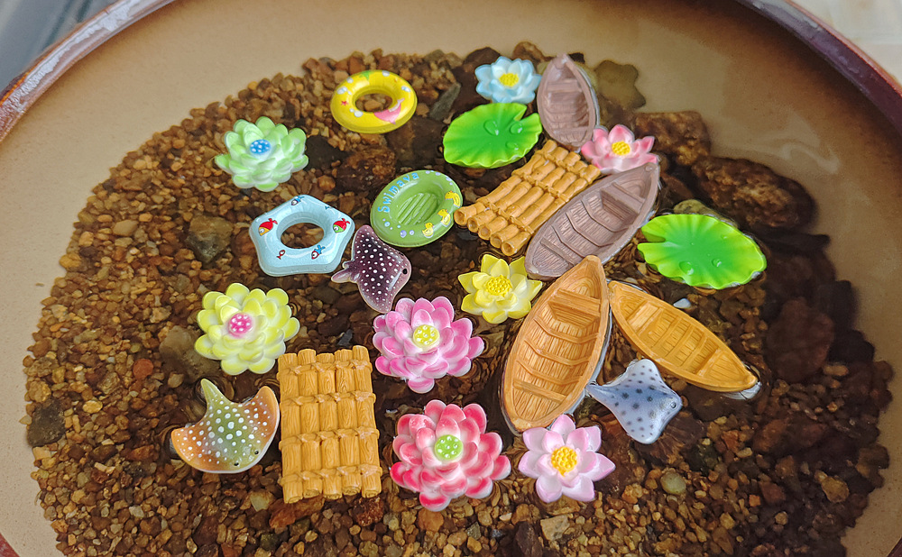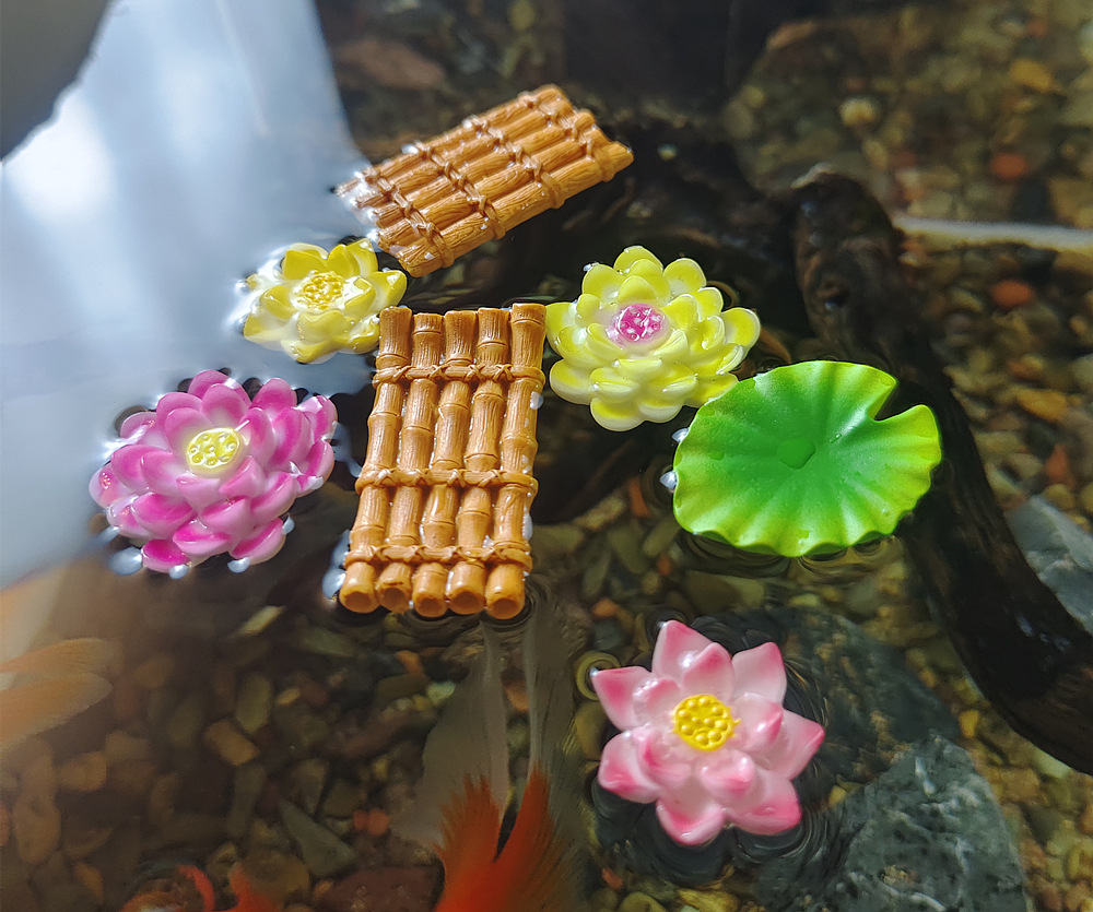 크리 에이 티브 플로팅 대나무 뗏목 연꽃 잎 작은 동물 장식품 마이크로 풍경 물고기 탱크 수족관 DIY 장식 액세서리