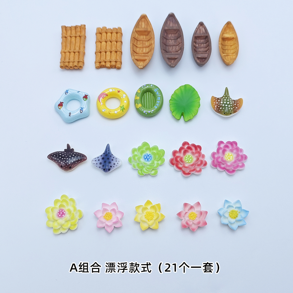 크리 에이 티브 플로팅 대나무 뗏목 연꽃 잎 작은 동물 장식품 마이크로 풍경 물고기 탱크 수족관 DIY 장식 액세서리스토어 가기