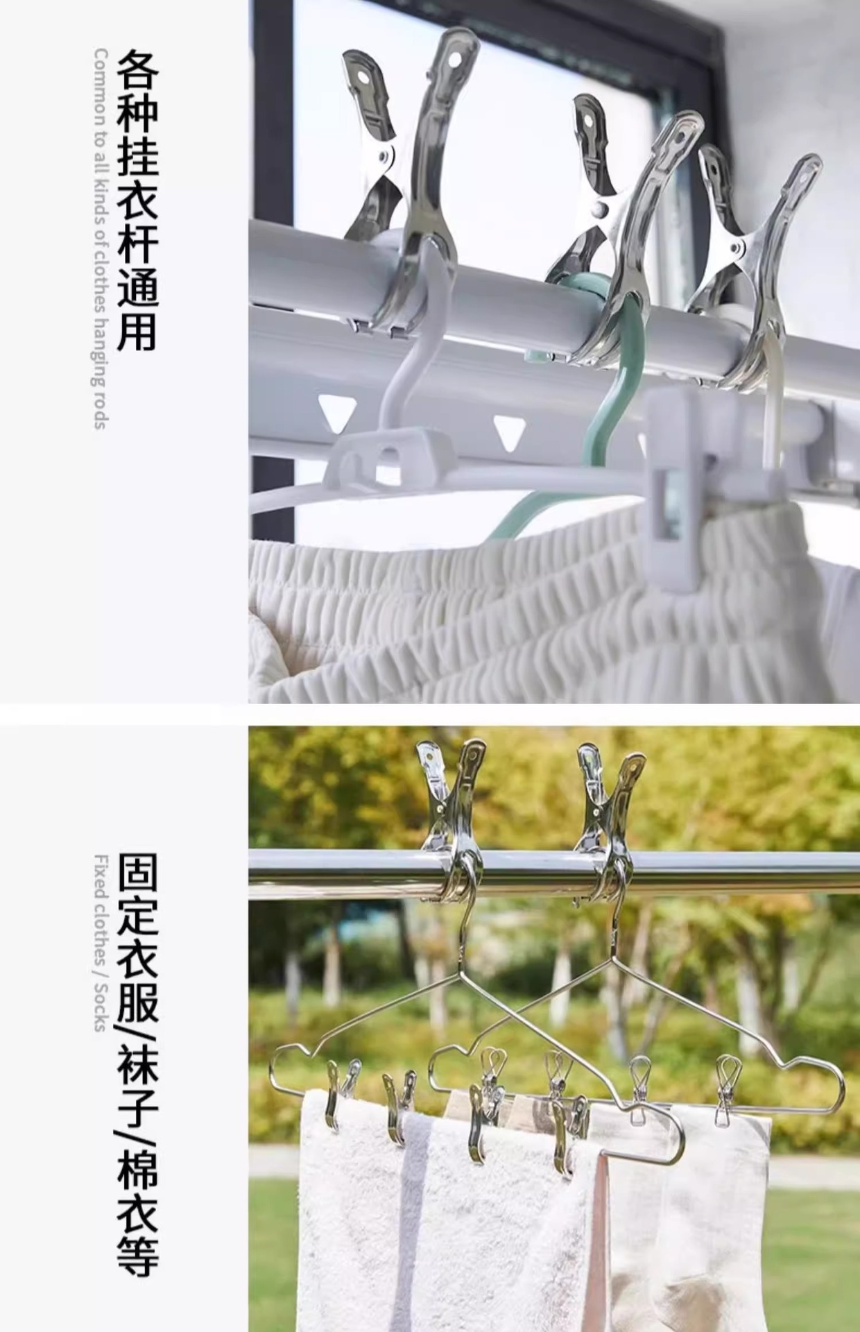 강력한 방풍 빨래집게, 스테인리스 오픈집게 고정장치, 이불건조용 다기능 방풍집게