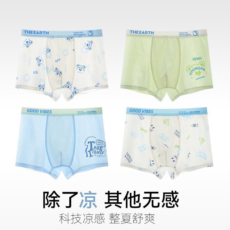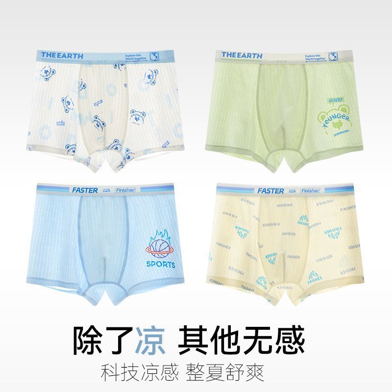 남아용 아이스 실크 사각팬티, 중대형 아동용 사각팬티, 중학생 사각팬티, 얇은 남아용 반바지스토어 가기