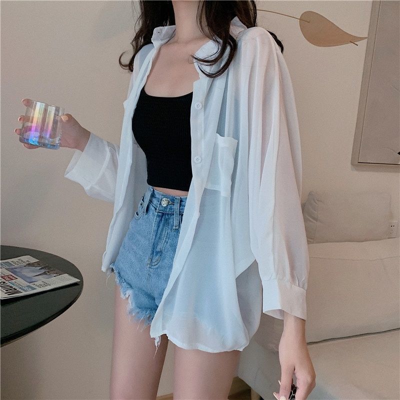 여름 신작 쉬폰 자외선 차단 의류 여성 카디건 재킷 학생 셔츠 한국식 루즈하고 다재다능한 셔츠 에어컨 셔츠 인터넷 연예인스토어 가기