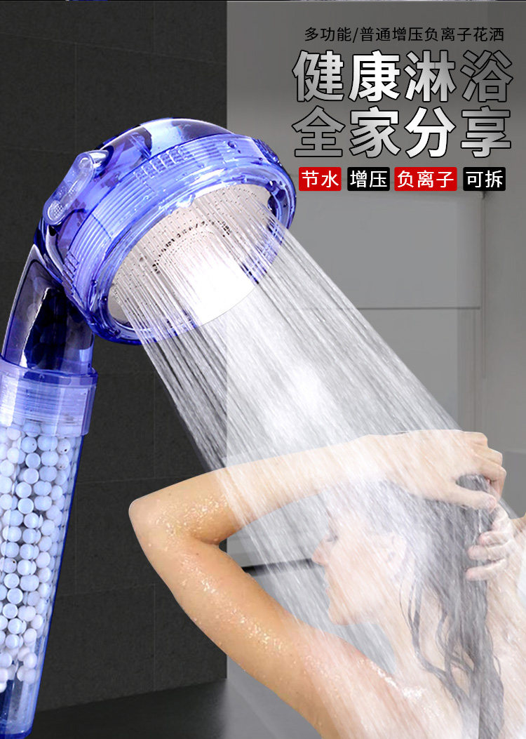 3단 음이온 필터 샤워헤드, 욕실 초고압 샤워헤드, 야외 여행용 샤워호스 세트