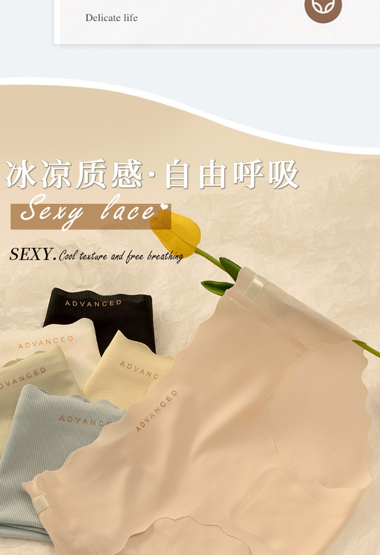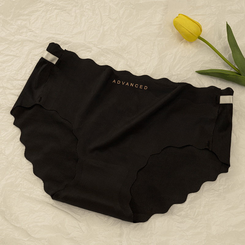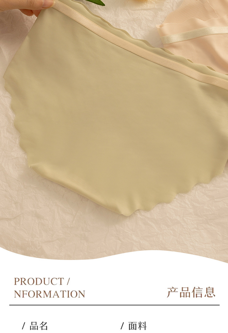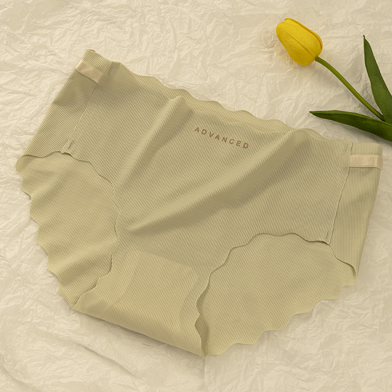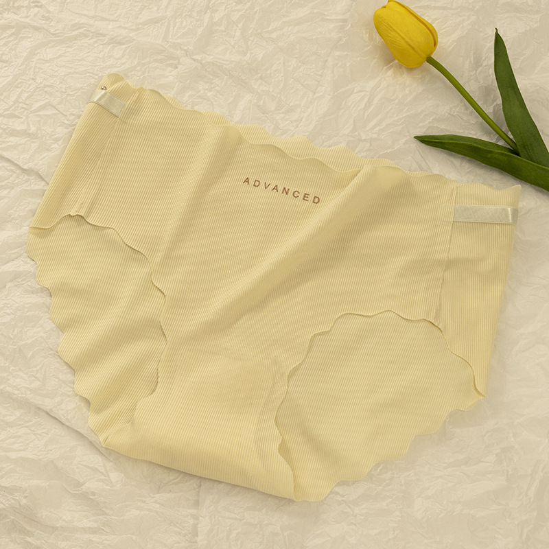 아이스 실크 귀 모양의 여성용 중간 허리 속옷, 심리스 통기성 소녀 엉덩이 리프팅 프린트 학생용 얇은 솔리드 컬러 팬티