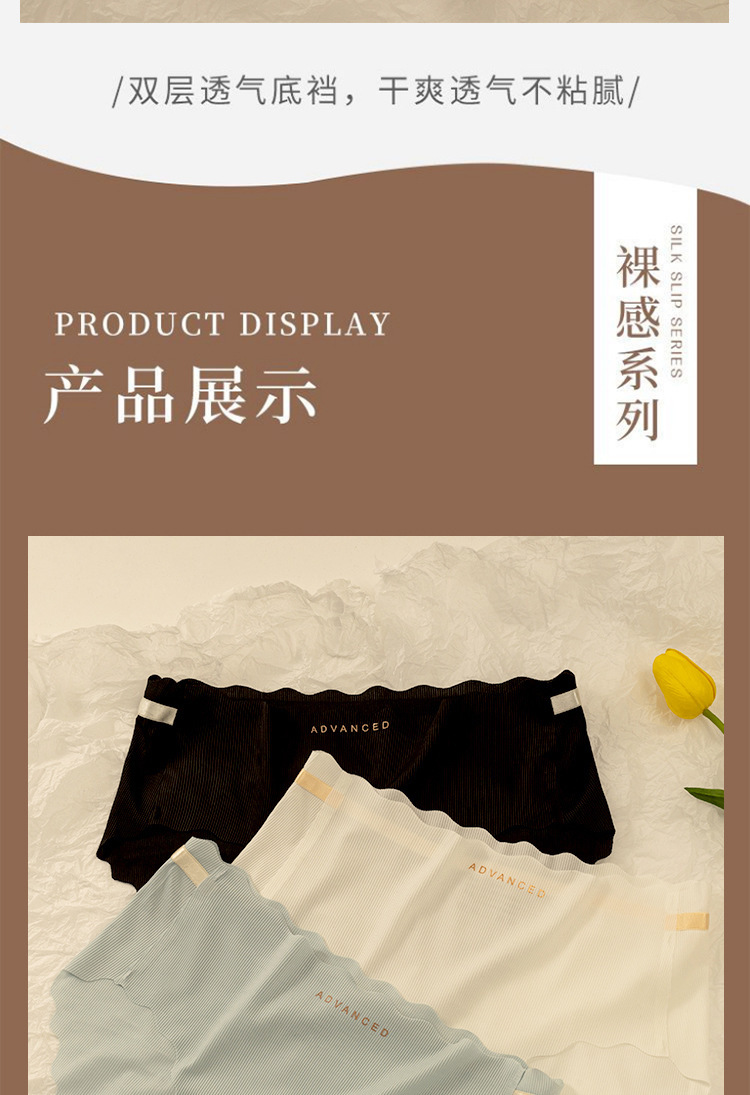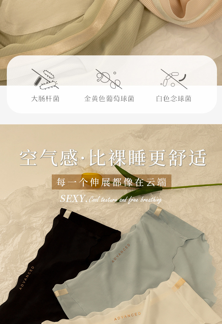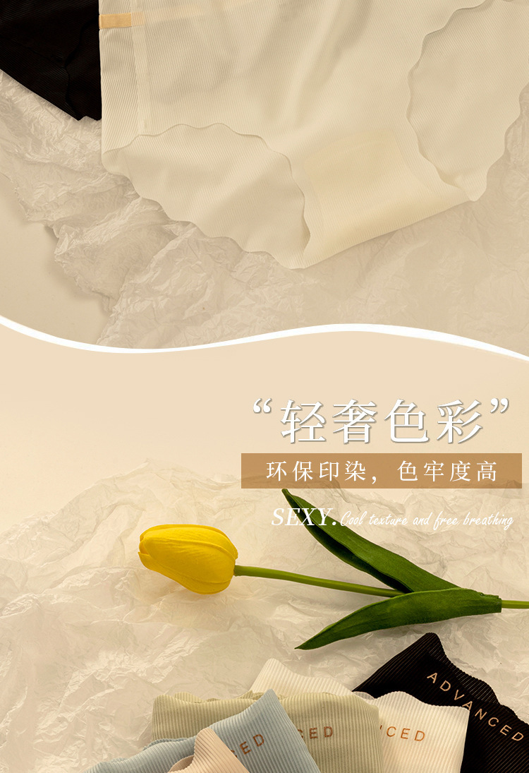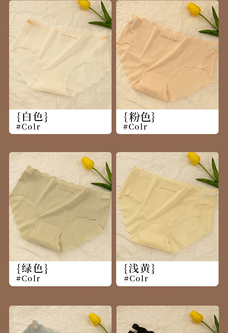 아이스 실크 귀 모양의 여성용 중간 허리 속옷, 심리스 통기성 소녀 엉덩이 리프팅 프린트 학생용 얇은 솔리드 컬러 팬티